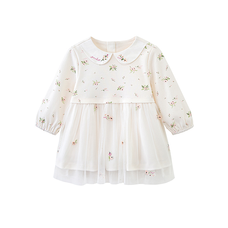 英氏裙子春季女童连衣裙23新款洋气公主碎花长袖纱裙YRLAJ1P173A