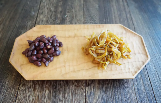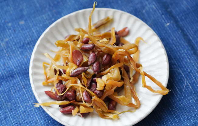 成品烘干完成后,挑选颗粒饱满,色泽分布均匀的红皮花生,混合到一起,就成了完整版的多味笋丝花生~