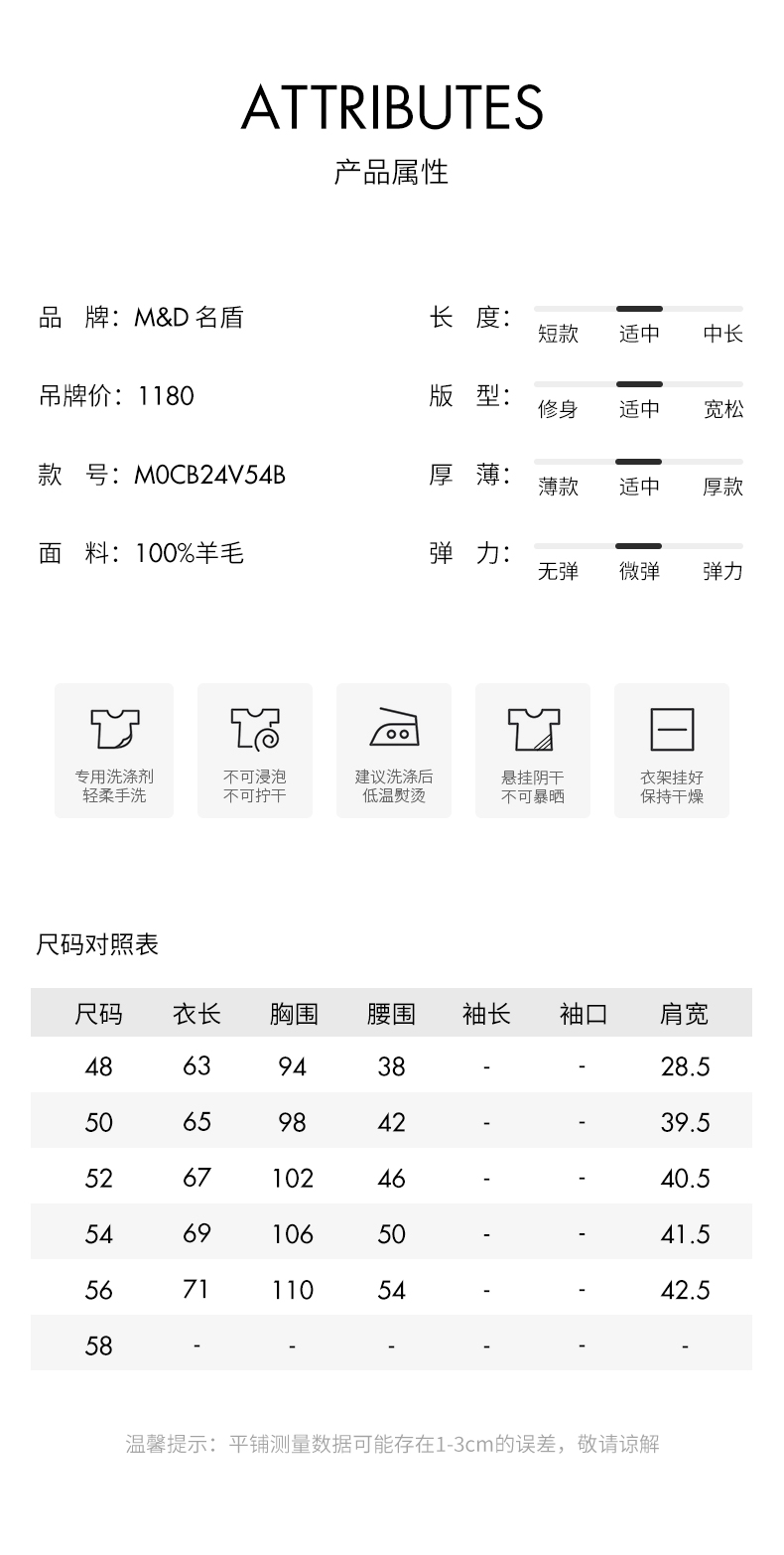 | 品牌: M&D/名盾 | 面料: 纯羊毛(95%以上) |