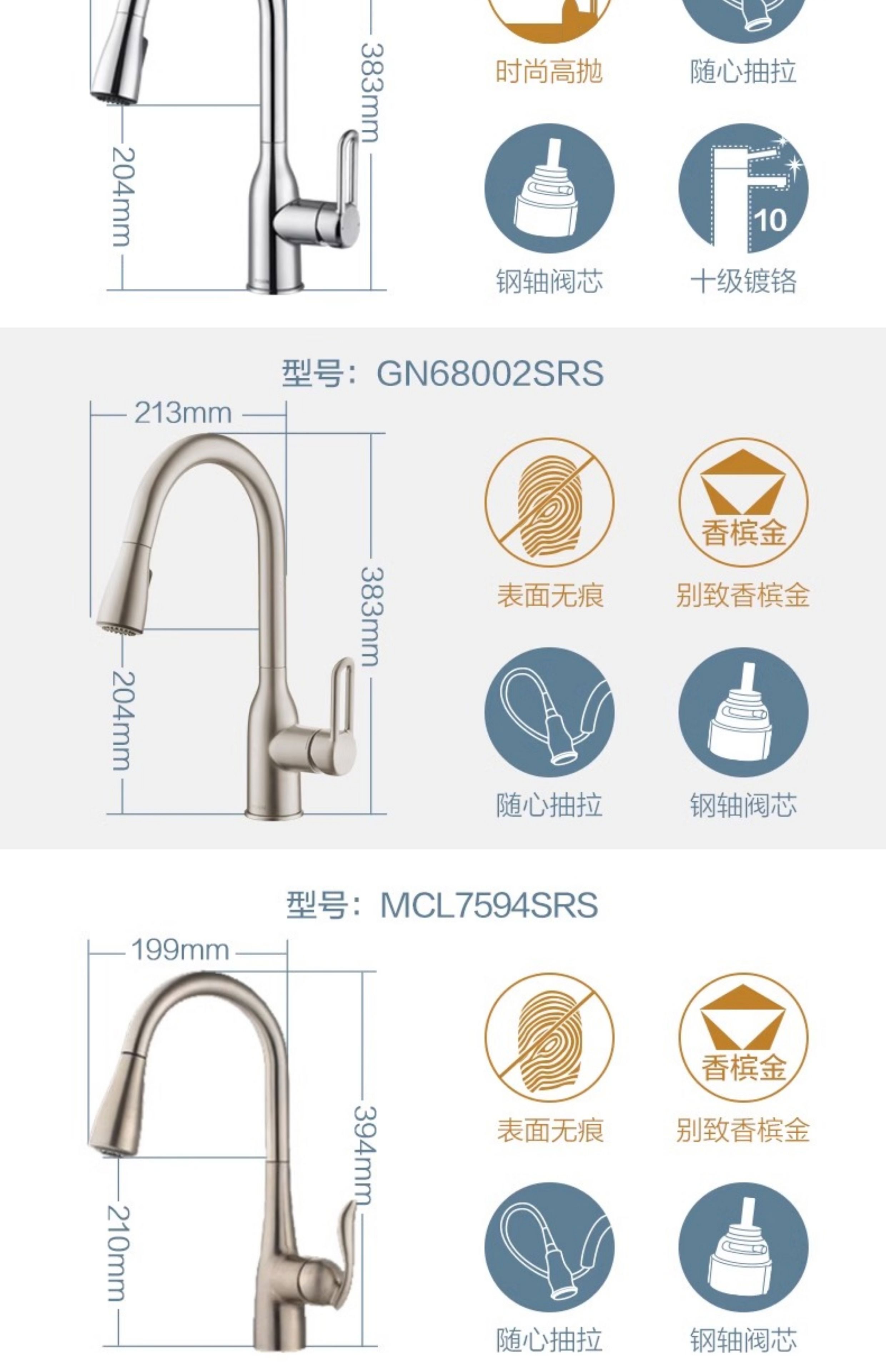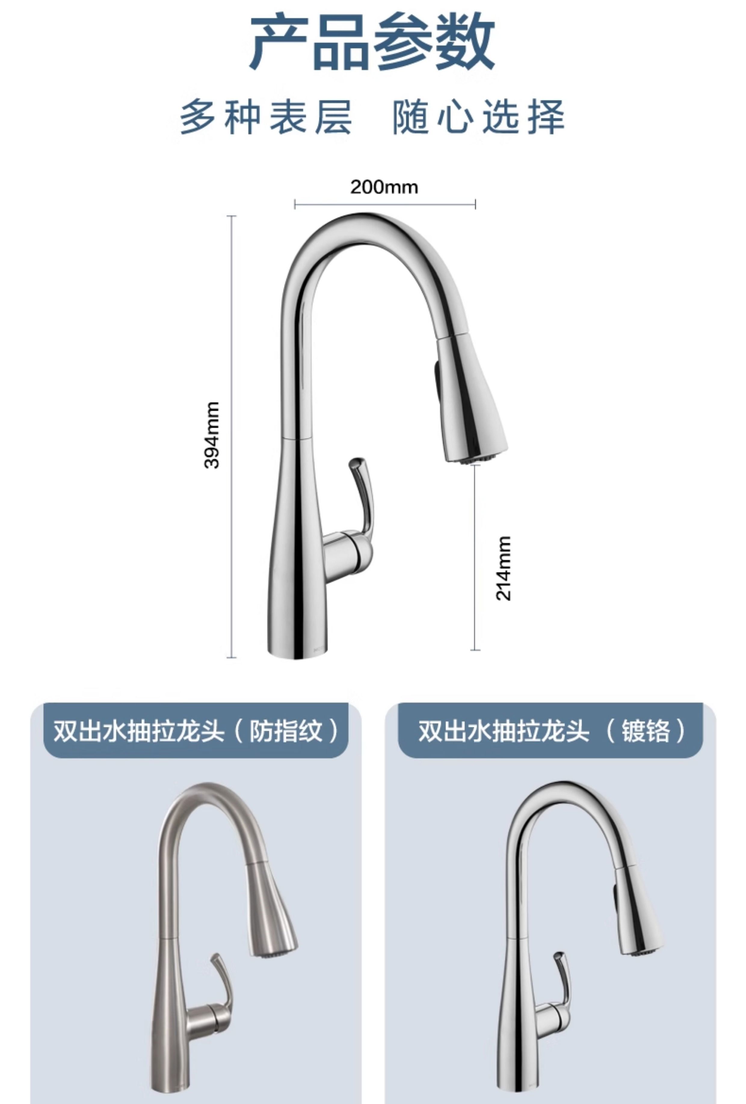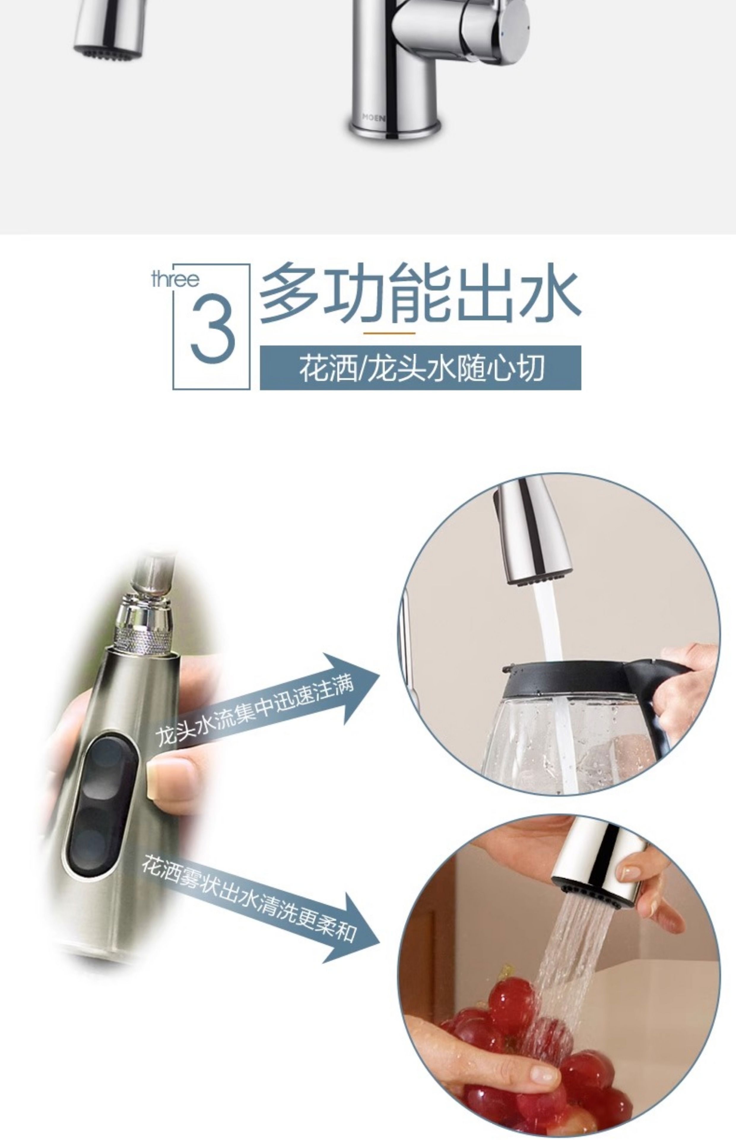 MOEN摩恩MCL7594SRS68000S87014GG7402抽拉式冷热厨房水槽龙头 亮面GNMCL87014两出水抽拉