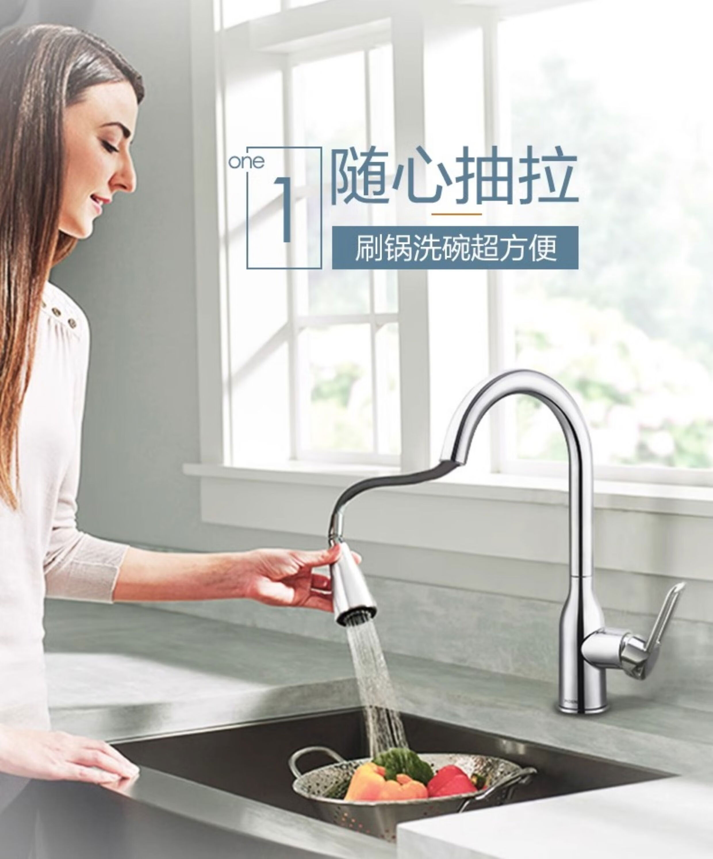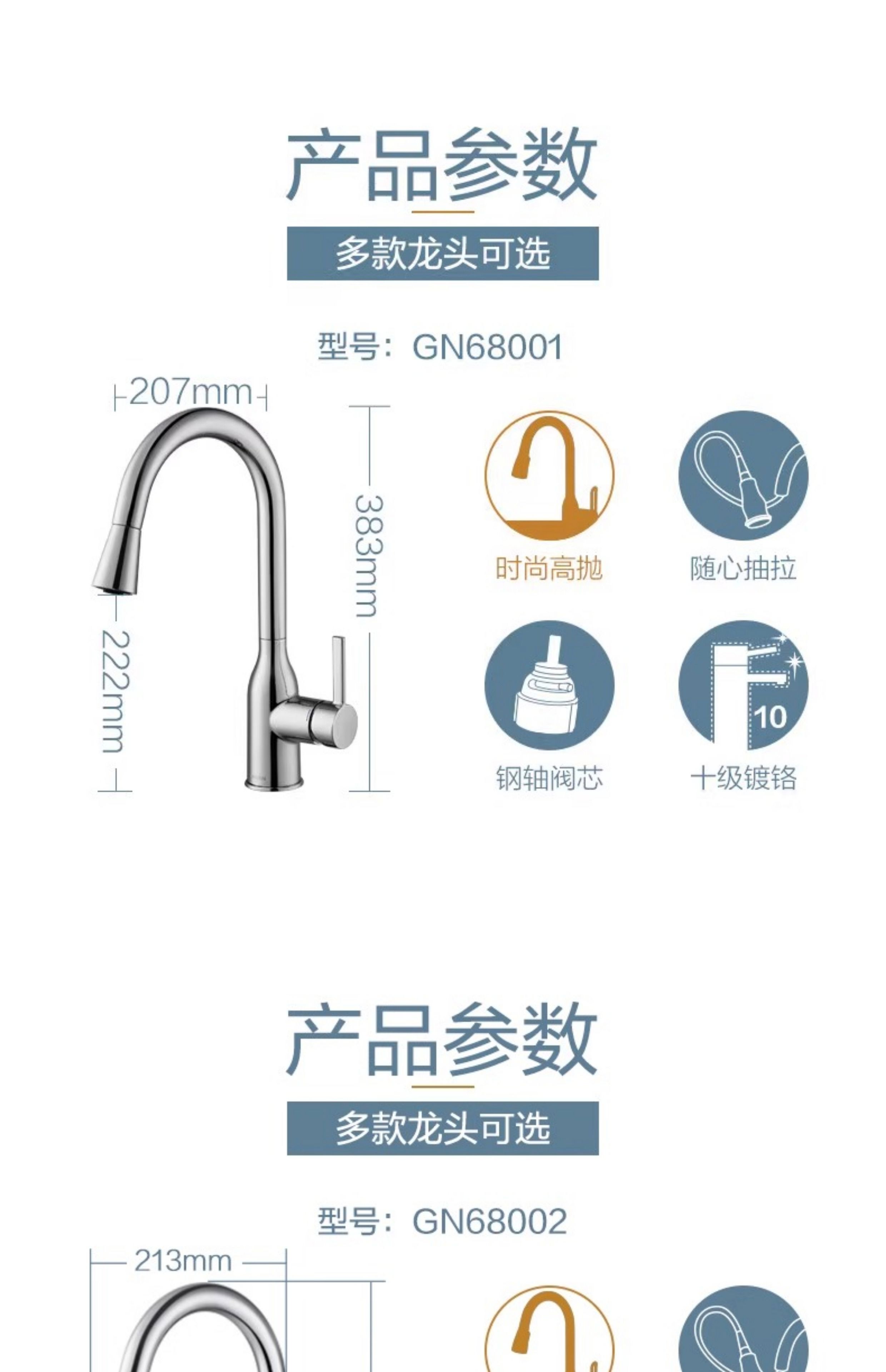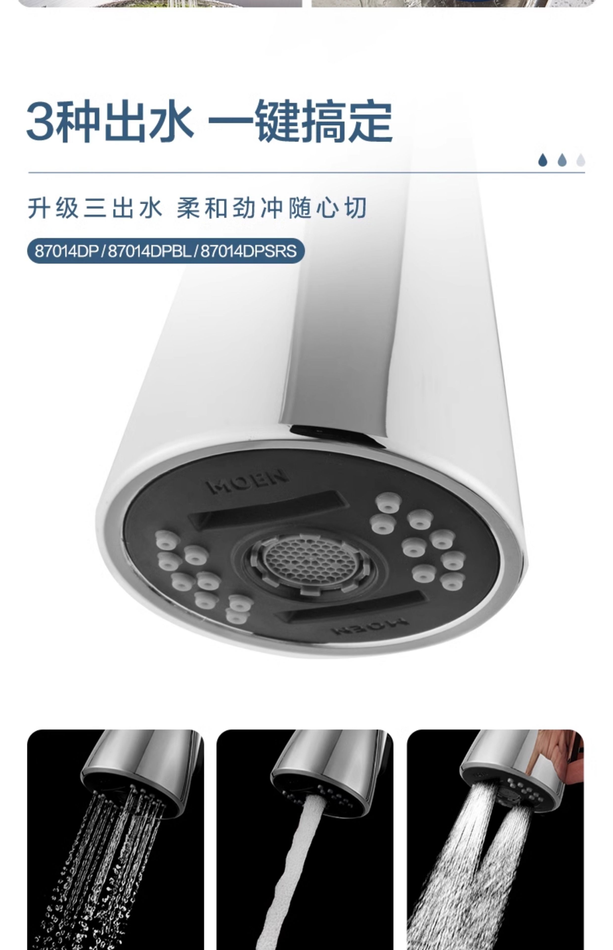 MOEN摩恩MCL7594SRS68000S87014GG7402抽拉式冷热厨房水槽龙头 亮面GNMCL87014两出水抽拉