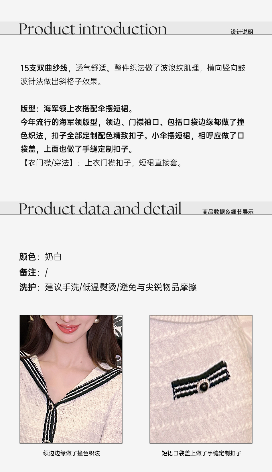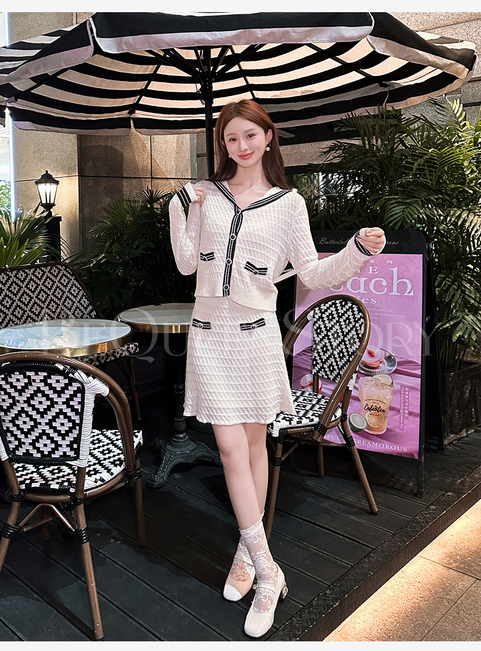 【大货捡漏,不退不换】 【航海香香】时尚复古百搭修身撞色海军领上衣&伞摆短裙套装
