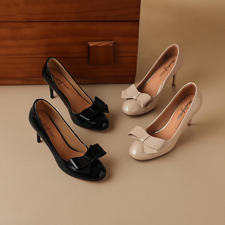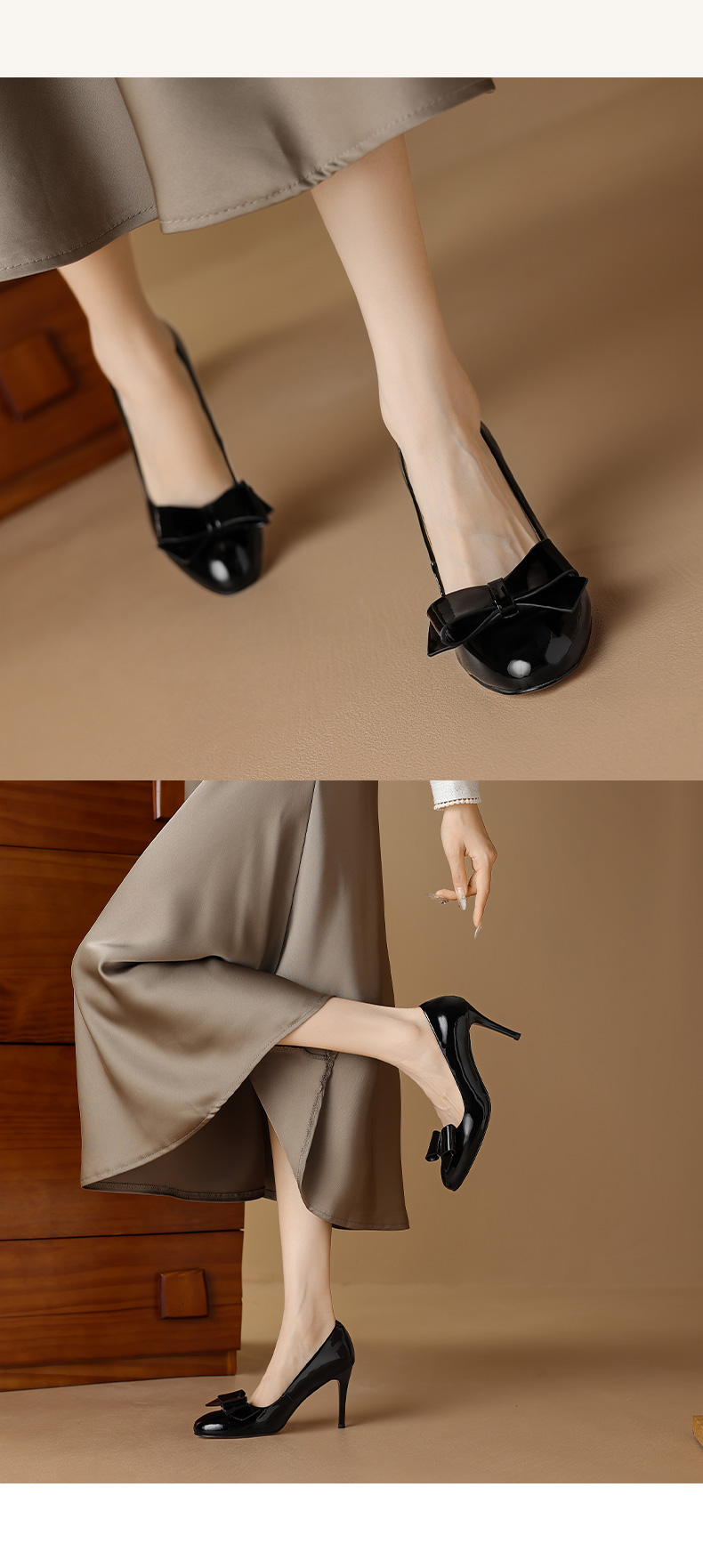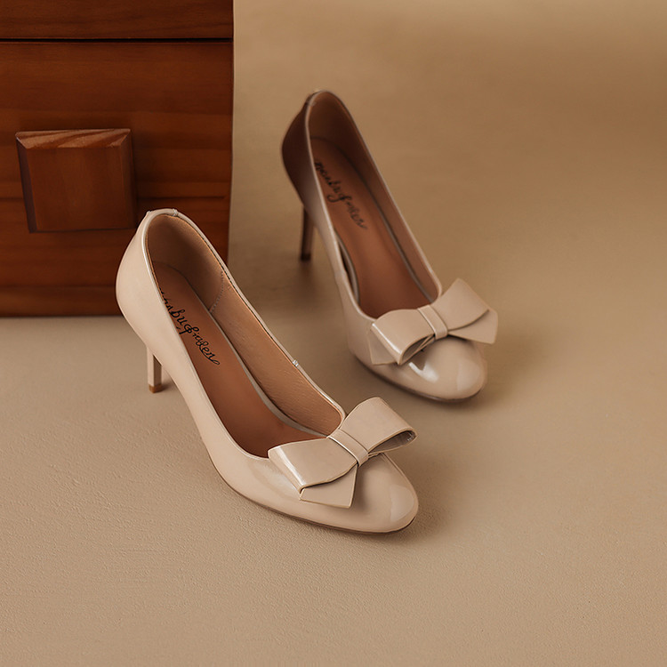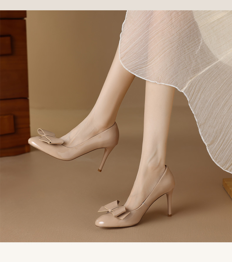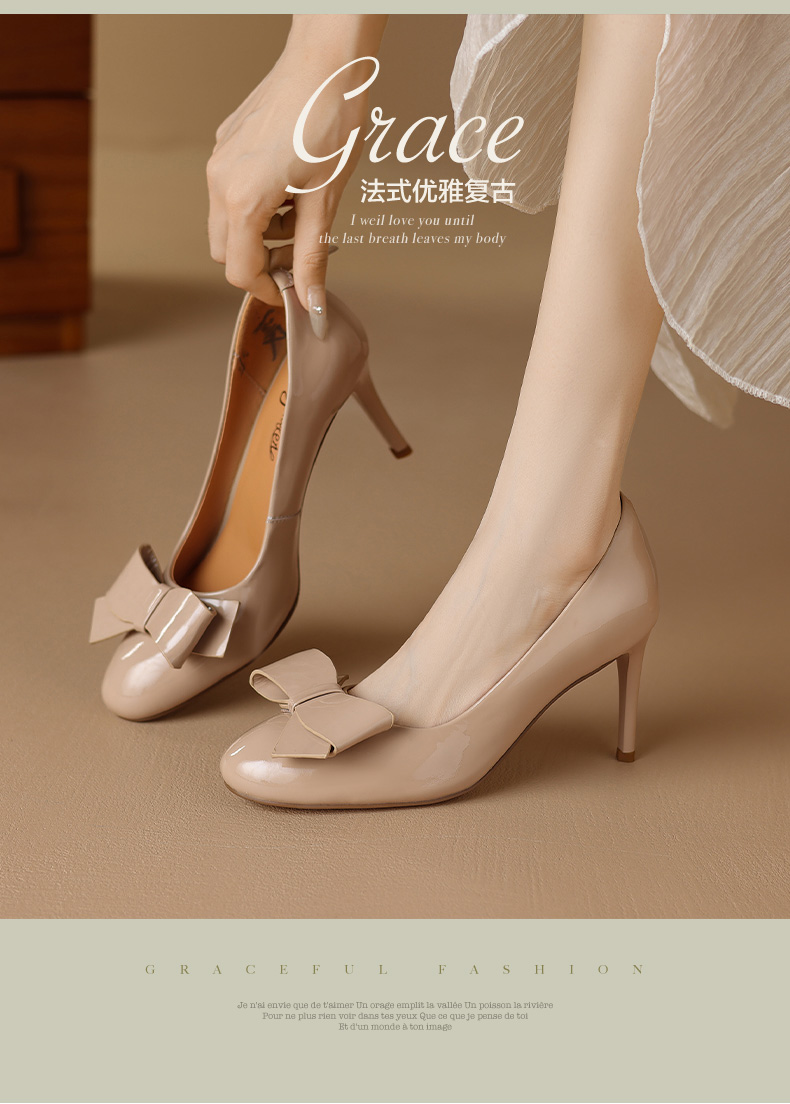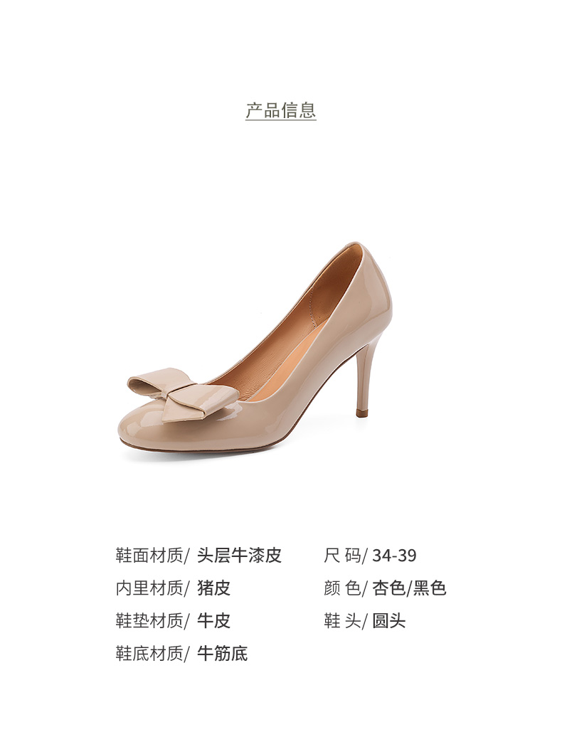 【预售5天】春夏季新款真皮女鞋气质蝴蝶结高跟鞋细跟尖头浅口职业单鞋FDJ&YC-528