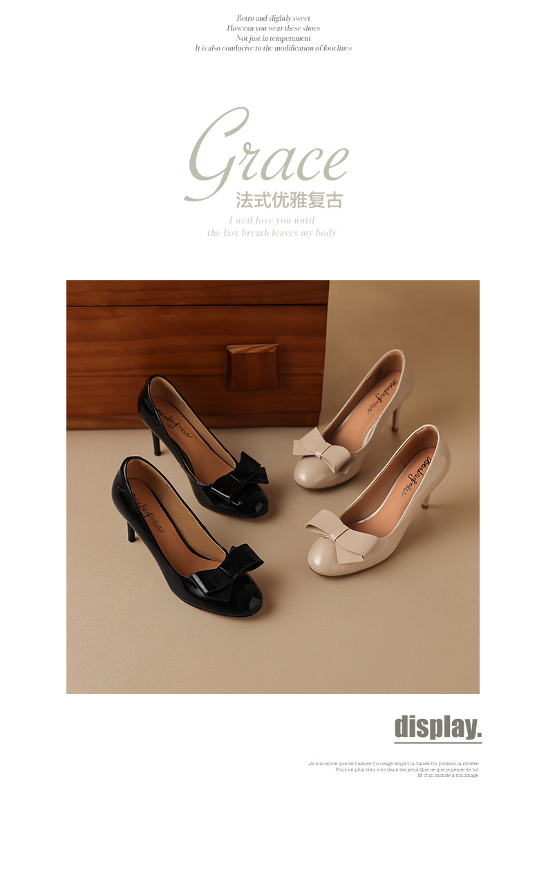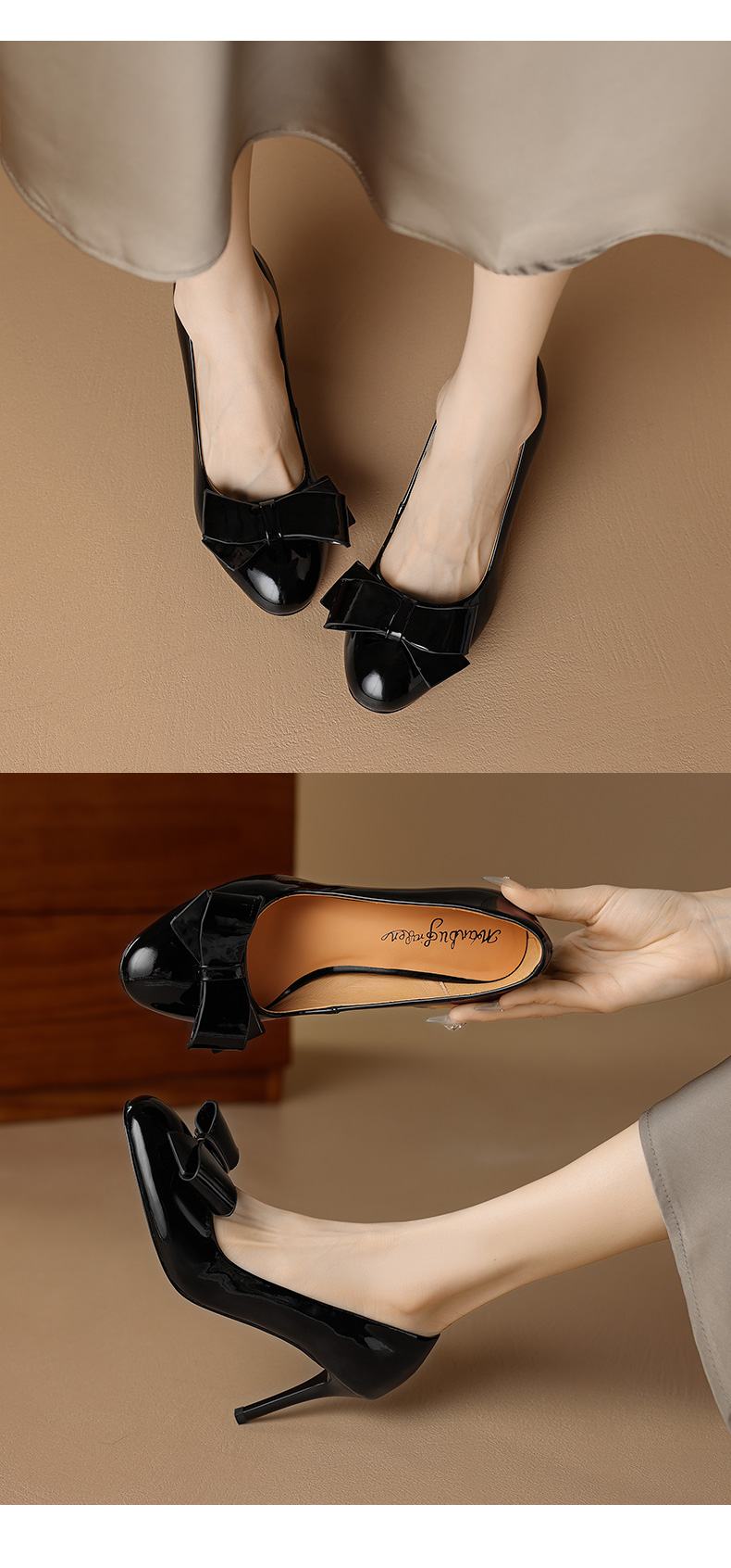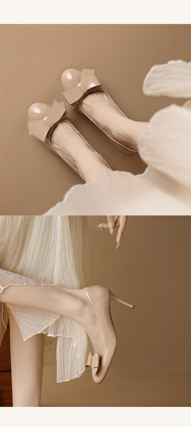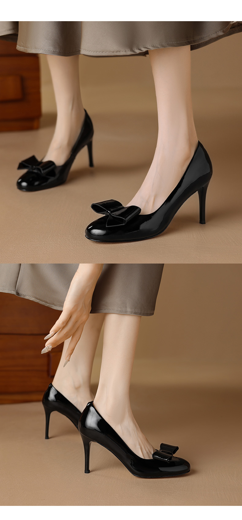 【预售5天】春夏季新款真皮女鞋气质蝴蝶结高跟鞋细跟尖头浅口职业单鞋FDJ&YC-528