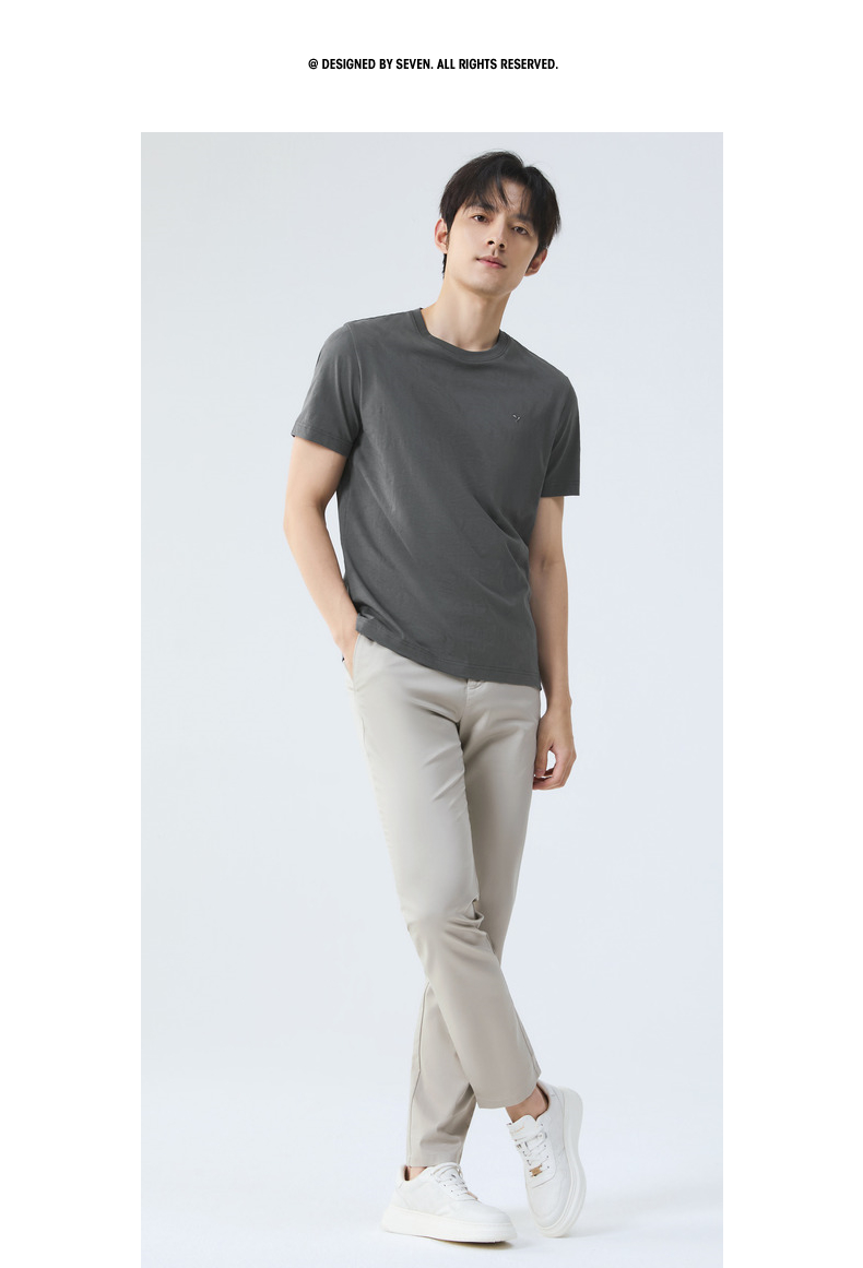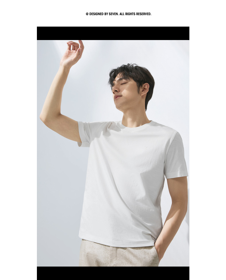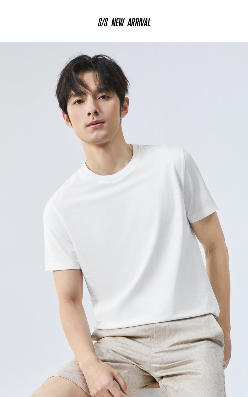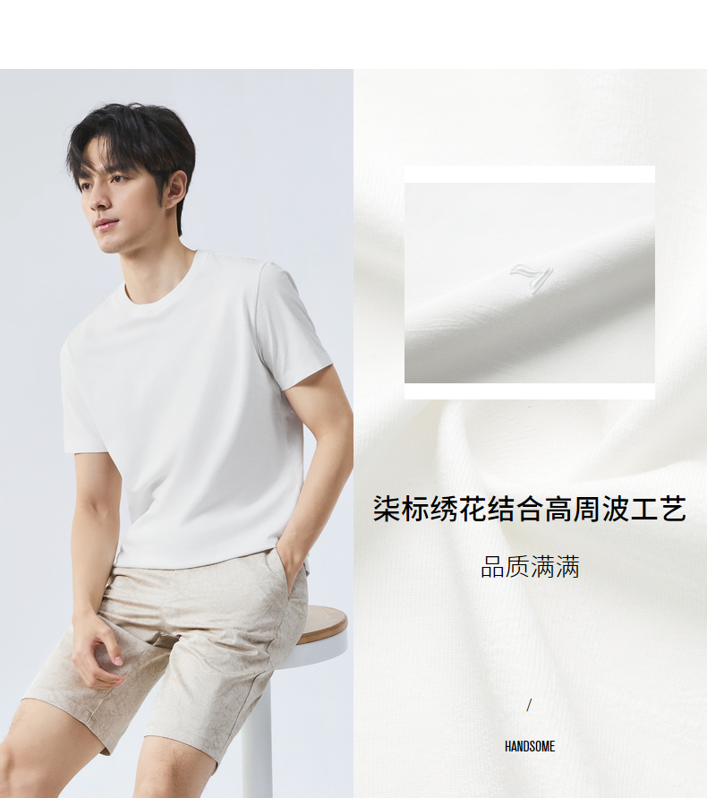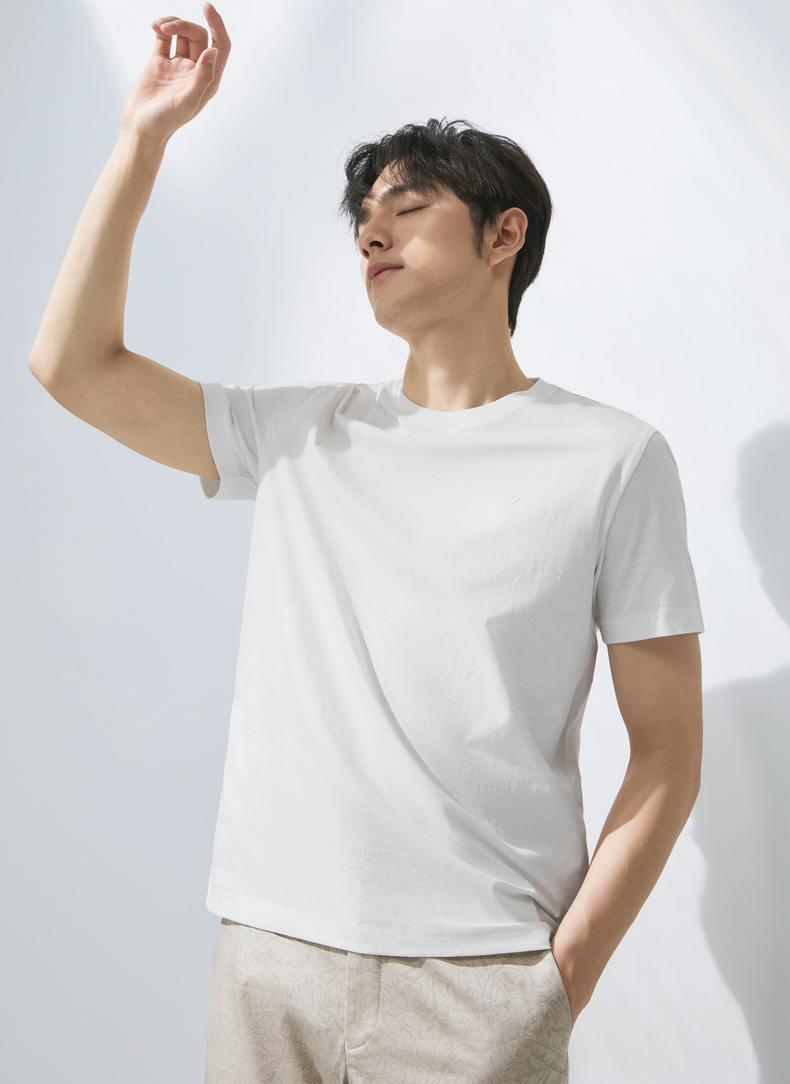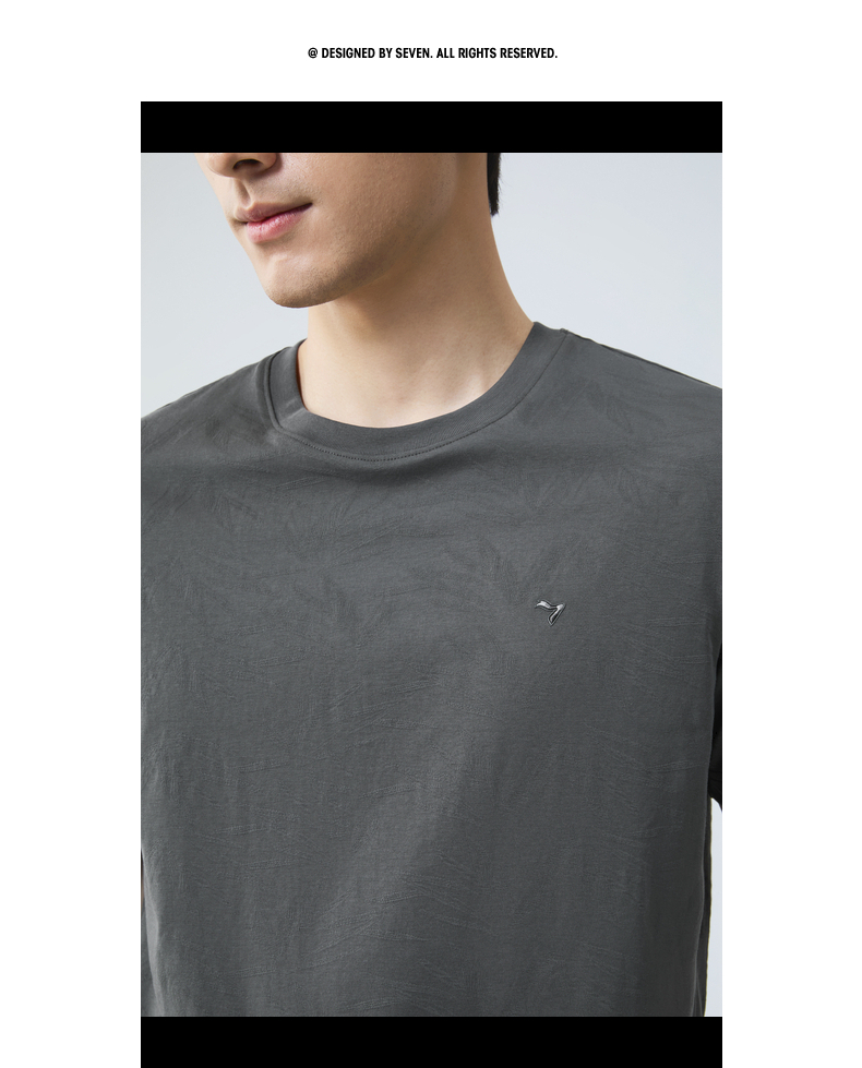【度假系列】柒牌短袖T恤男夏季新款满身提花时尚休闲圆领体恤衫128T70800