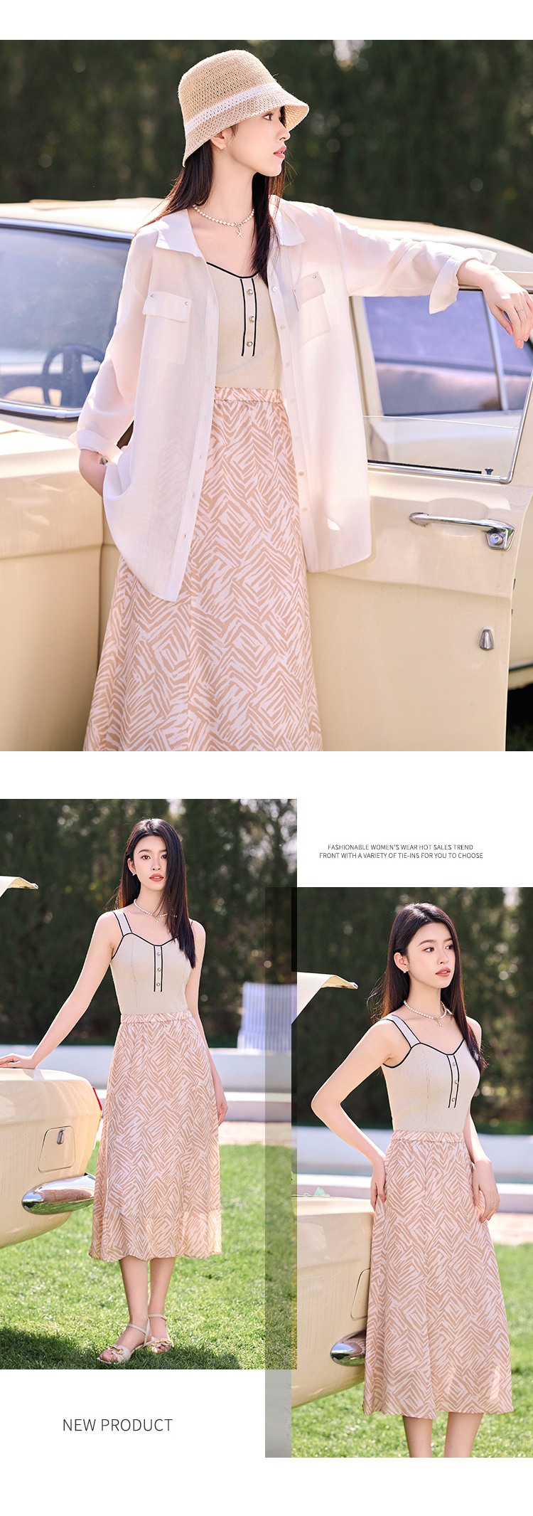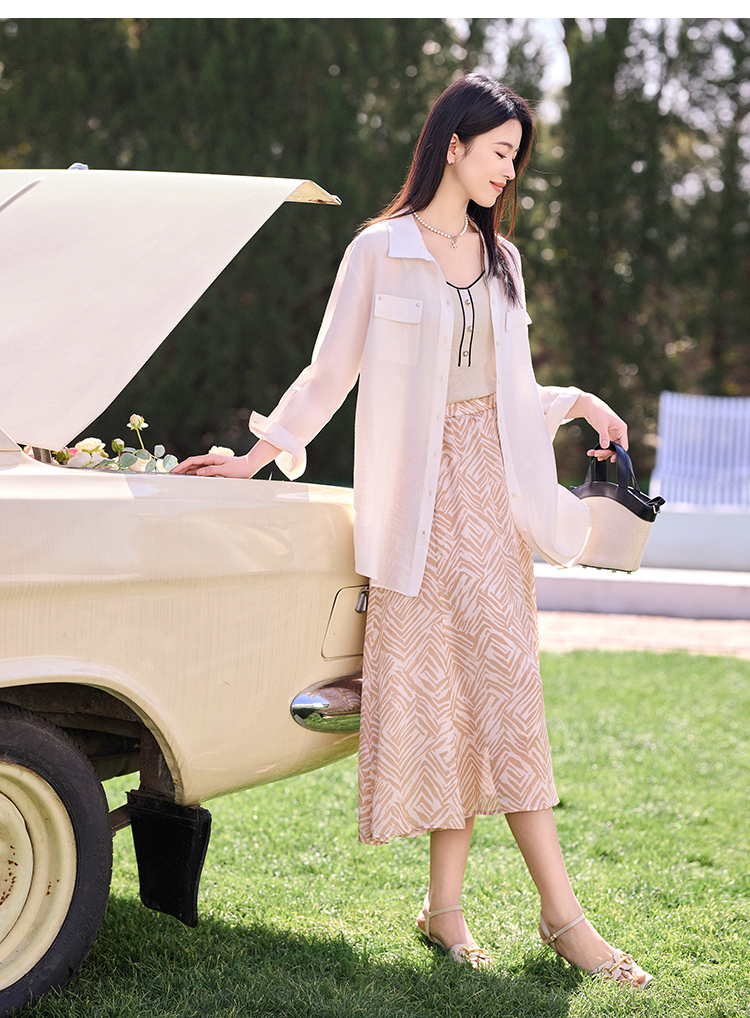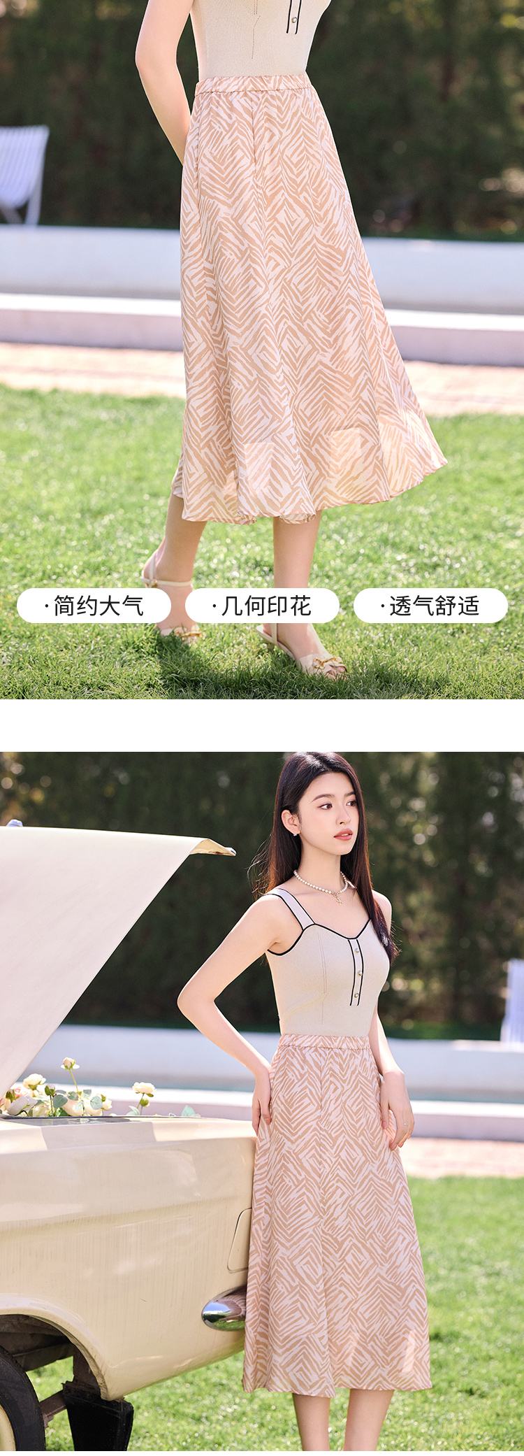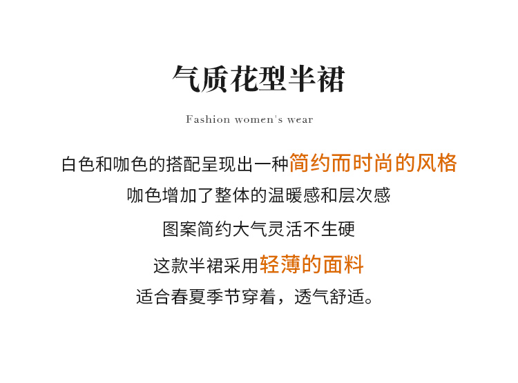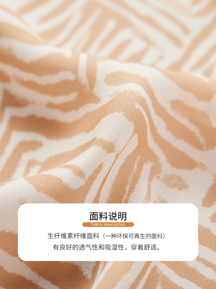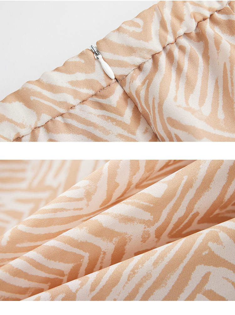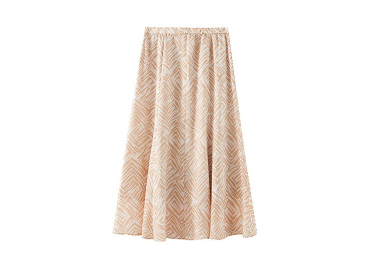 【商场同款】CJSJ509 “ 田园印花半裙 ” 深浅杏米配色的几何线条 现代动感 小A裙型 后腰松紧设计穿着舒适