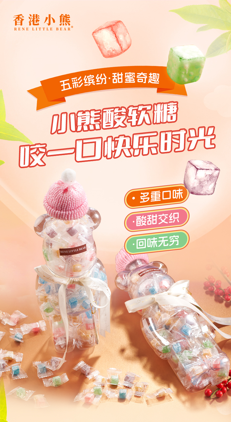 Rene Little Bear 香港小熊熊罐水果味酸软糖 120g