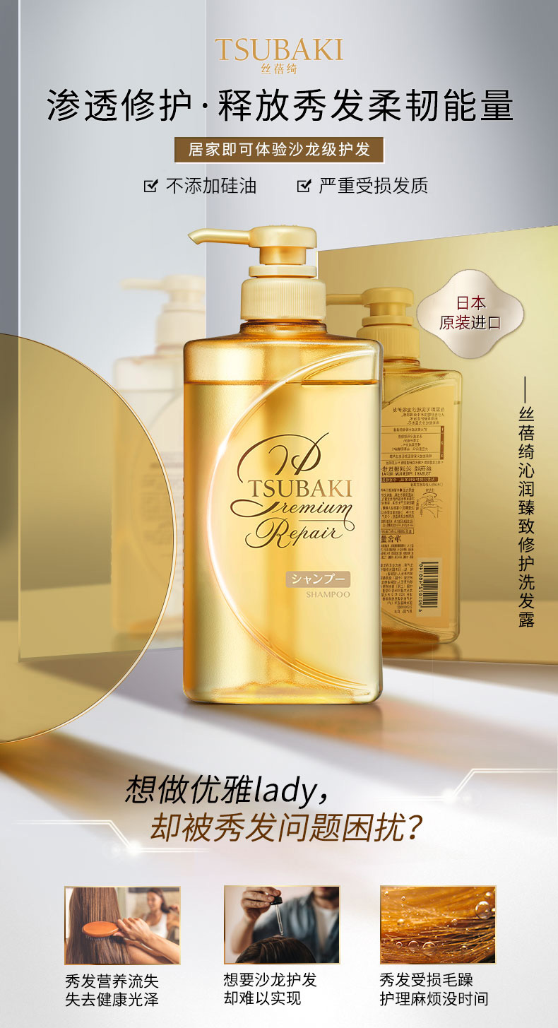 日本丝蓓绮沁润臻致修护洗发露/护发素490ml 不添加硅油 渗透修护 112688/112687
