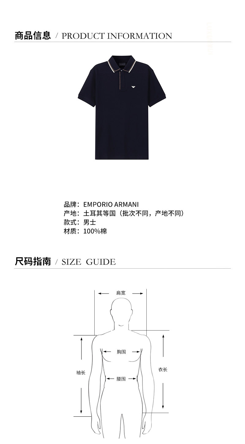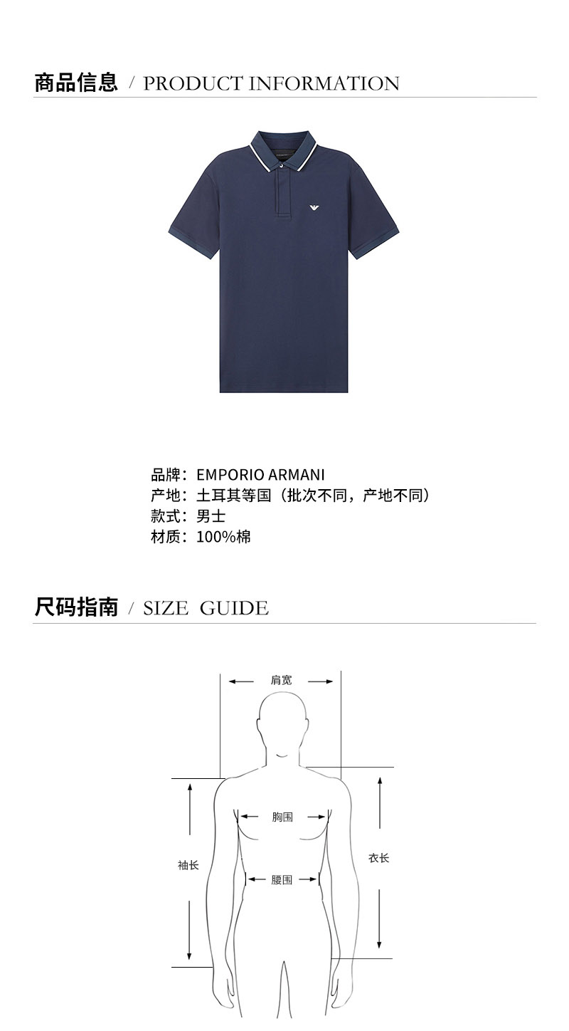 Emporio Armani/安普里奥阿玛尼【22春夏新款】男士棉质短袖POLO衫 3L1F90 1JTKZ