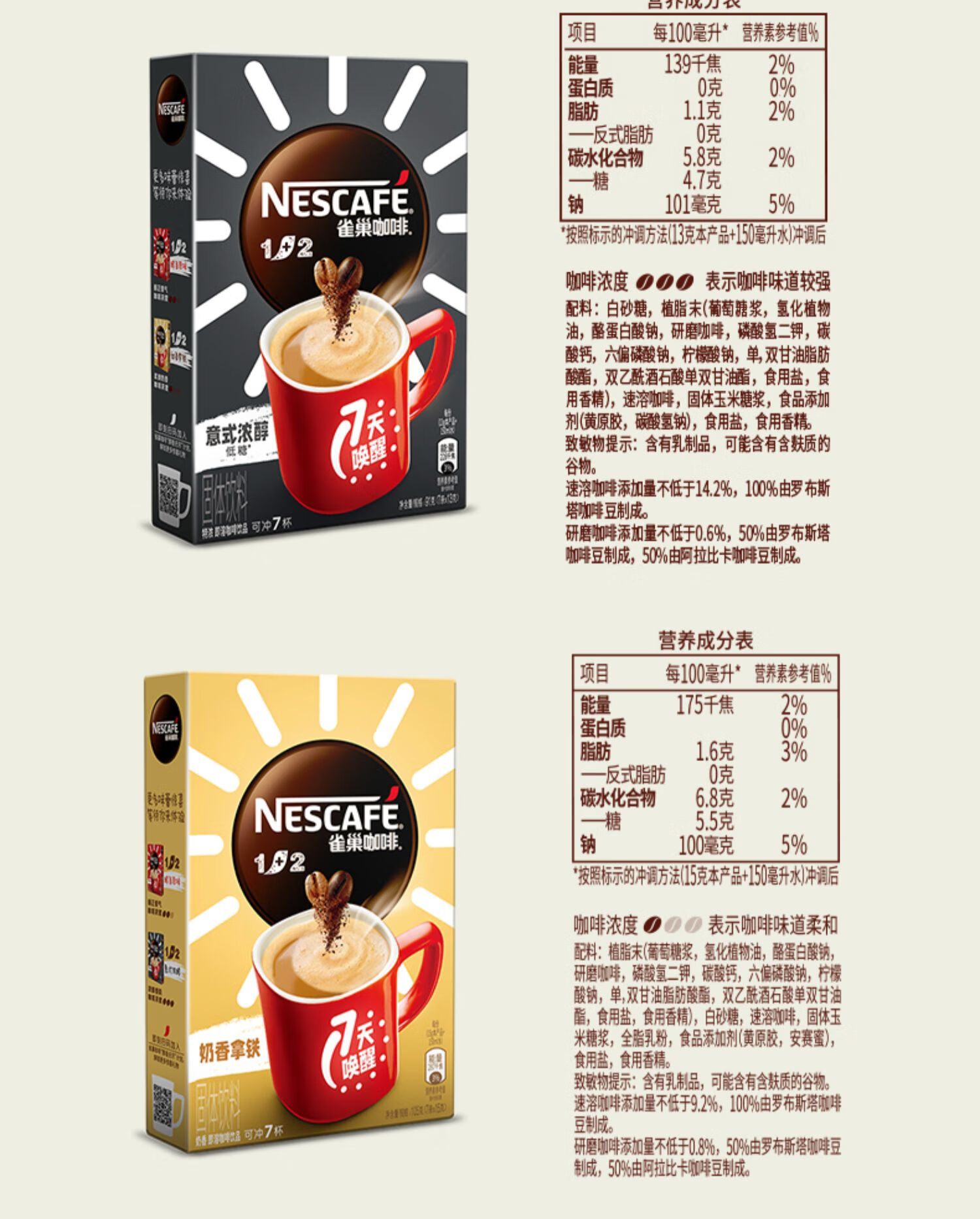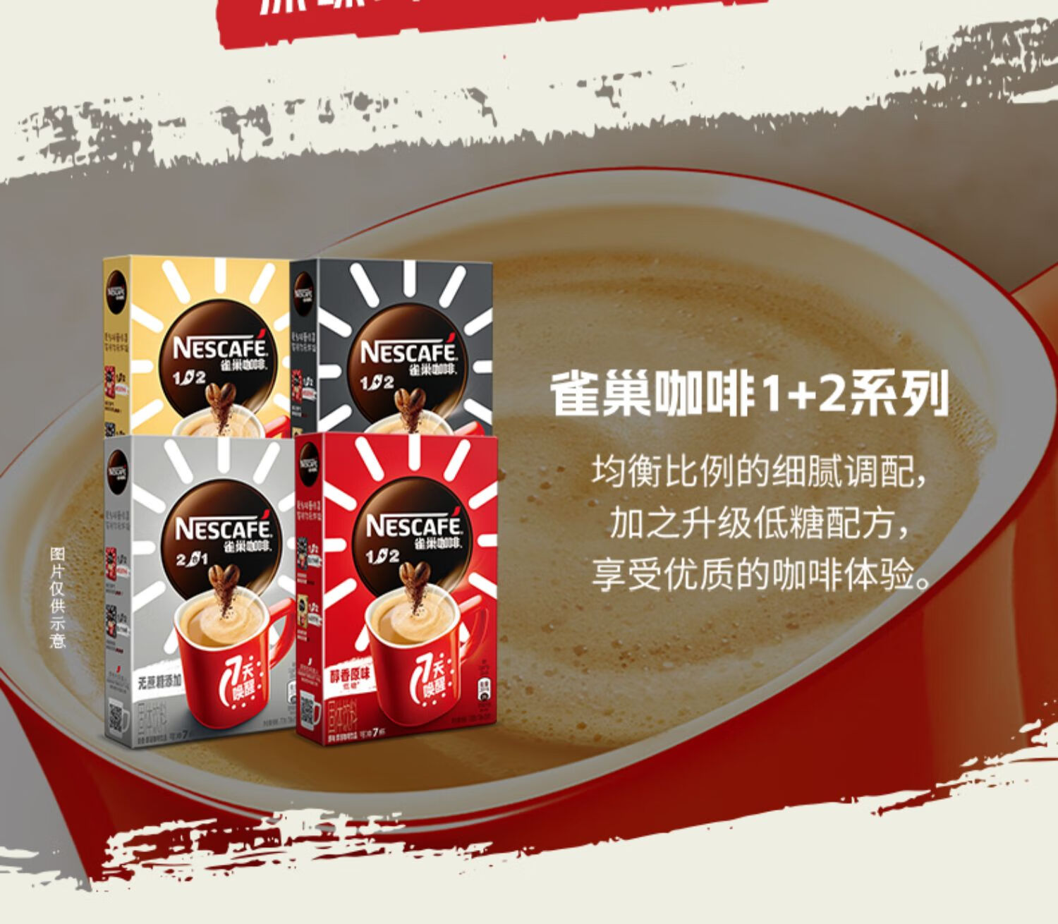 雀巢咖啡 速溶 1+2 原味 冲调饮料 双豆拼配 7条105g