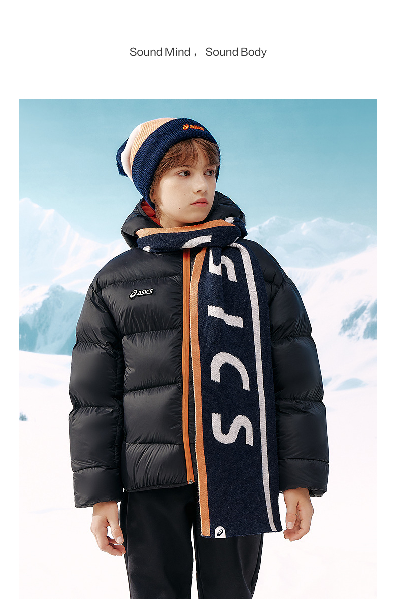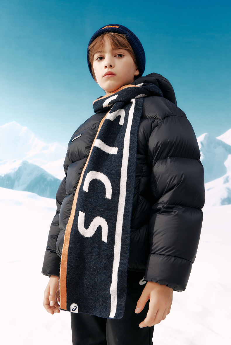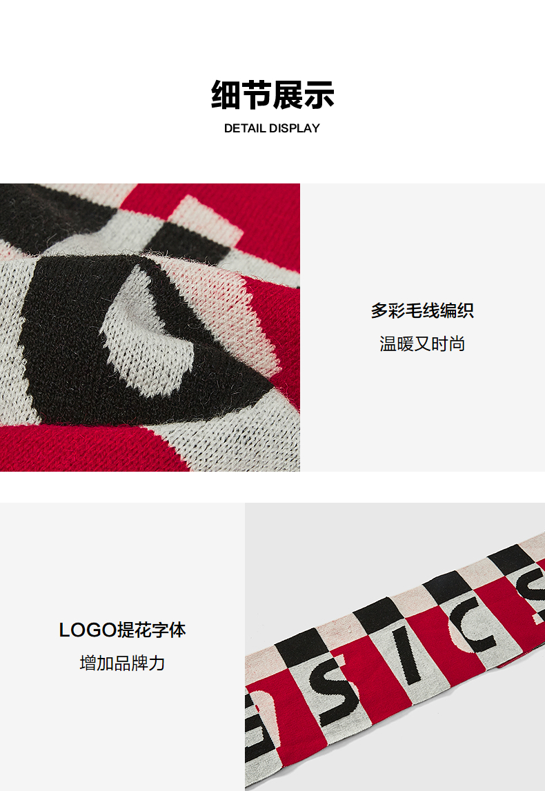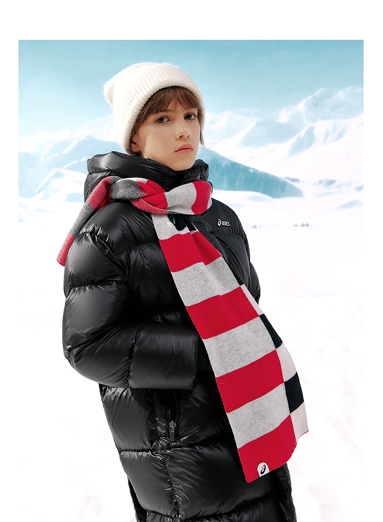ASICS/亚瑟士儿童25年冬季中性条纹毛织围巾舒适保暖时尚百搭