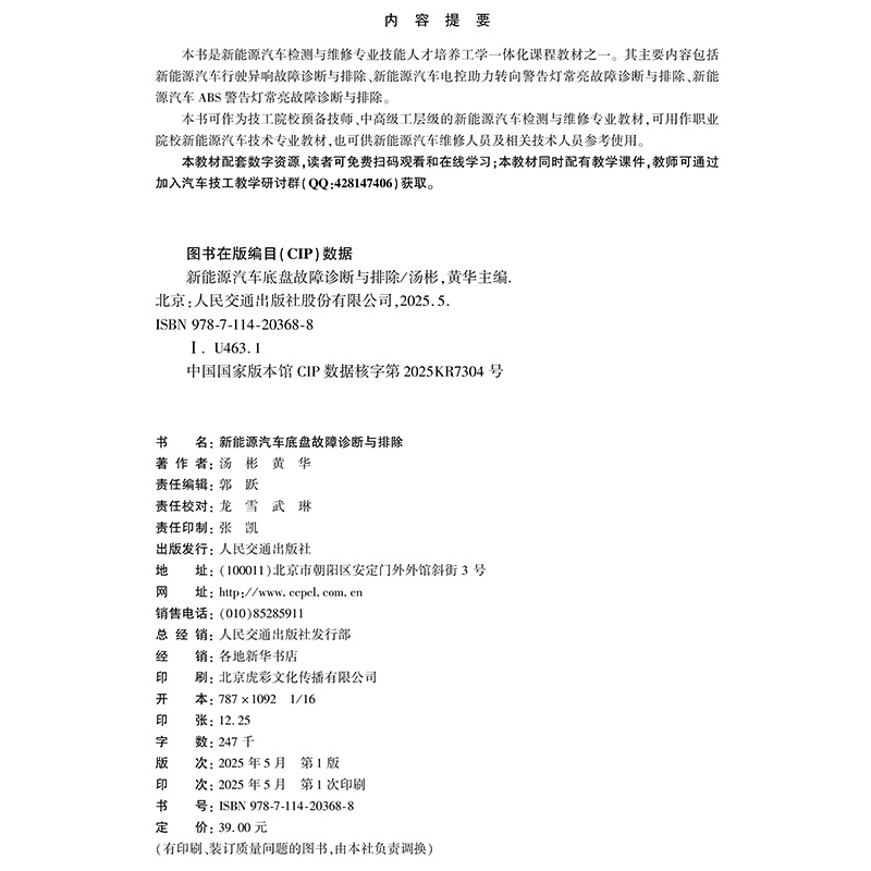 书名:新能源汽车底盘故障诊断与排除