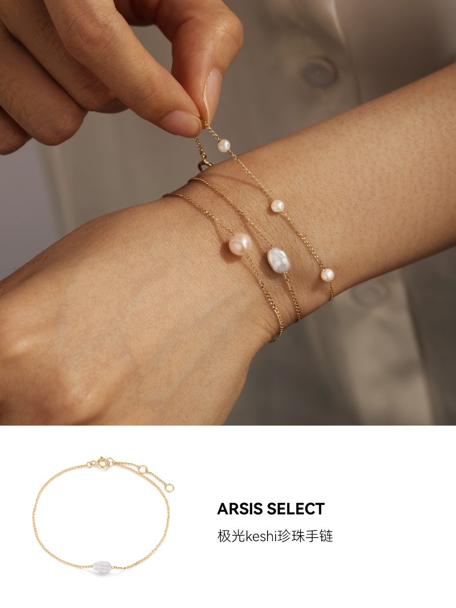 ARSIS|K金系列 极光keshi珍珠手链 14k金天然珍珠