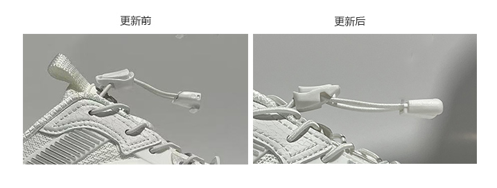 鞋子工艺有做升级调整,鞋带拉绳塑料件的挂钩更新为固定绳塑料件,两个版本随机发货: