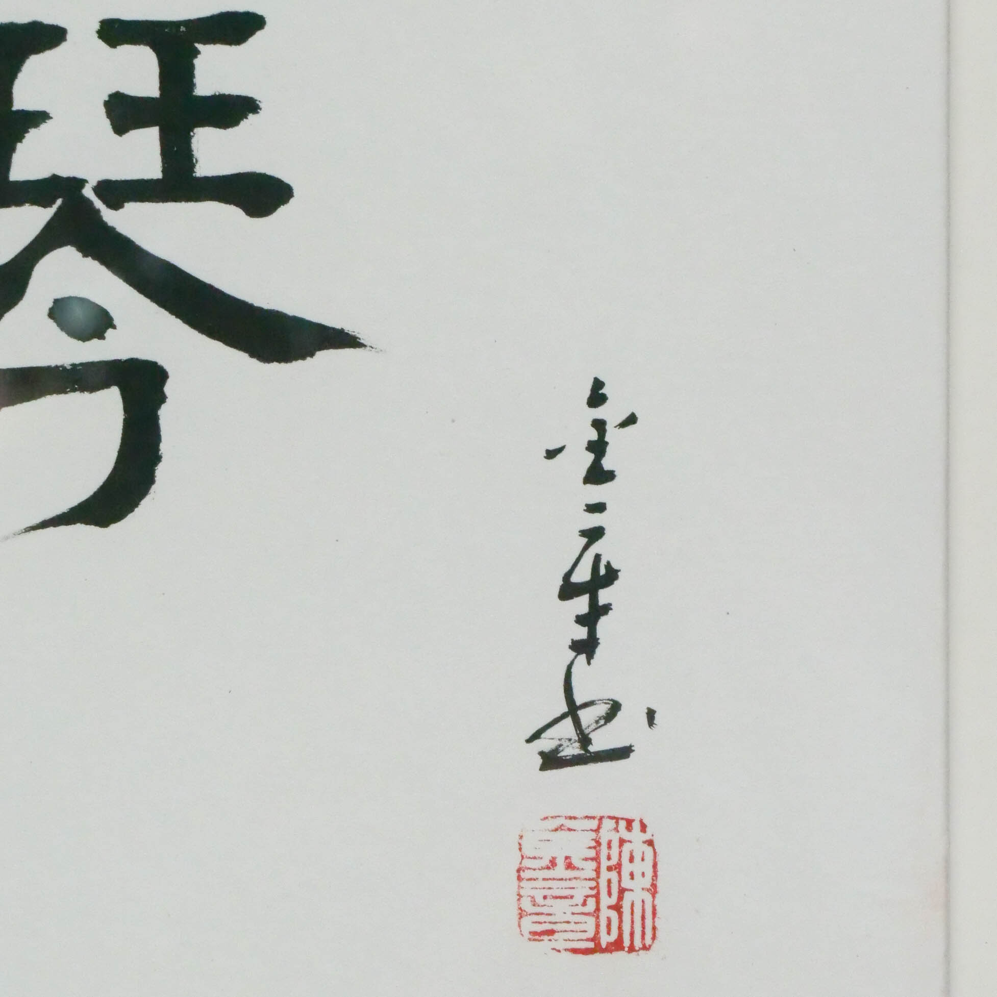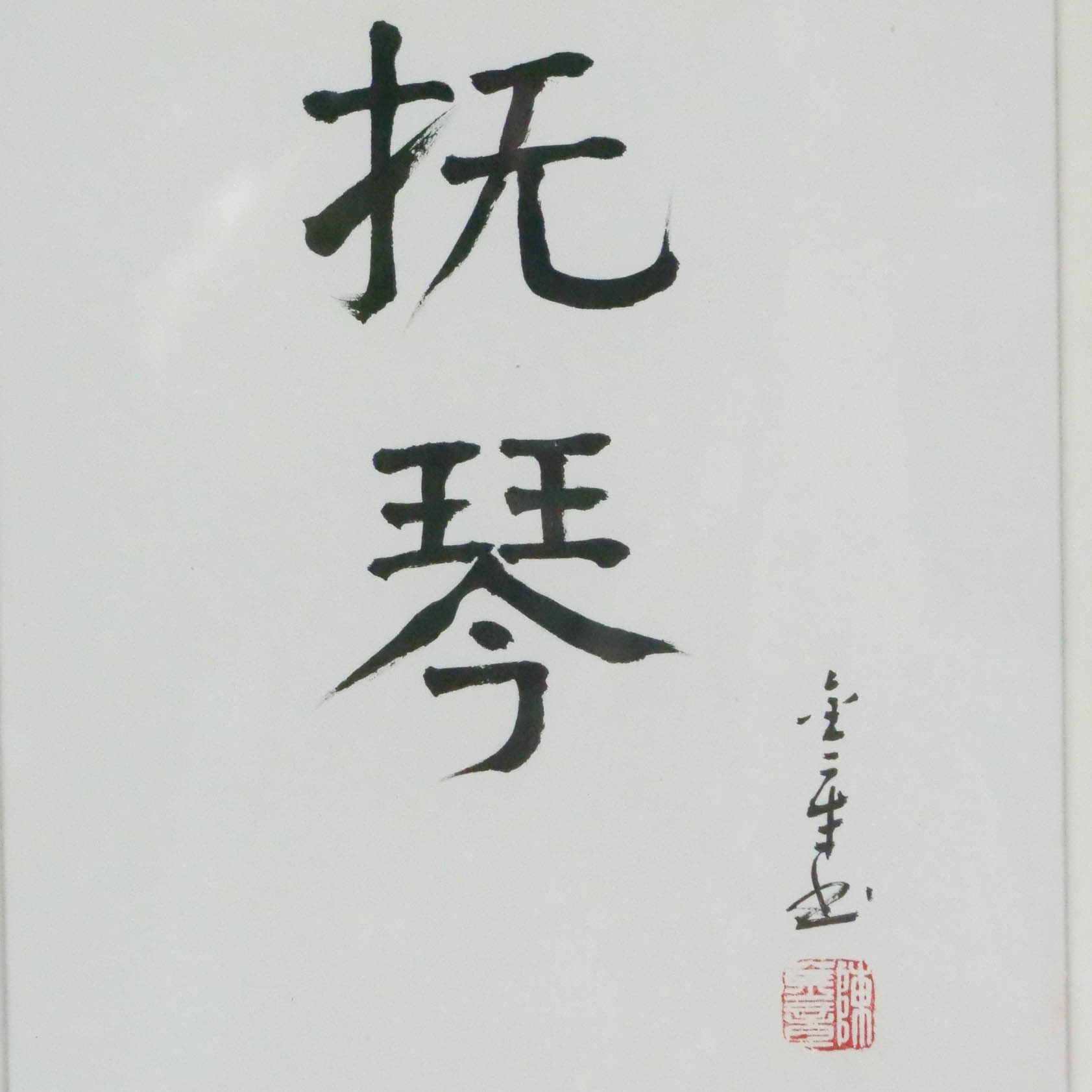 陈金章《抚琴》书法原作33CM*22CM 手写宣纸作品[含框]