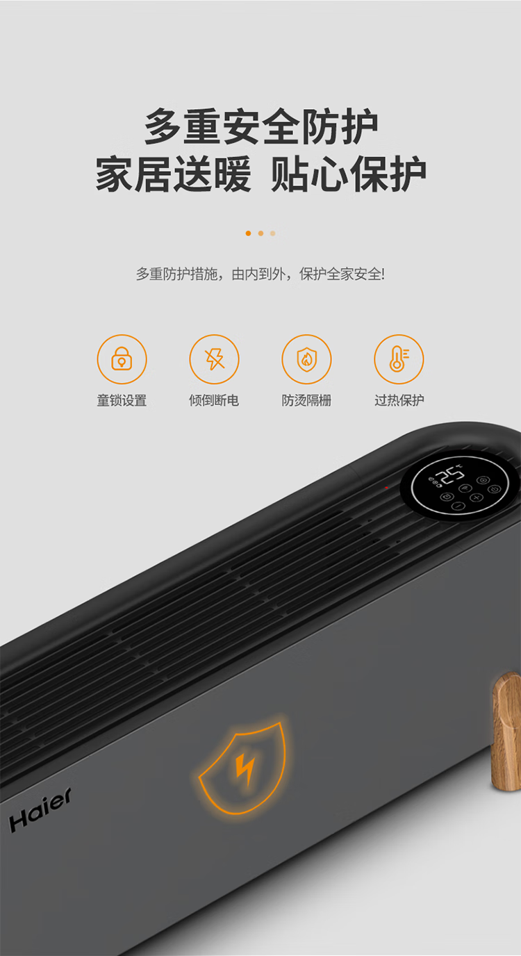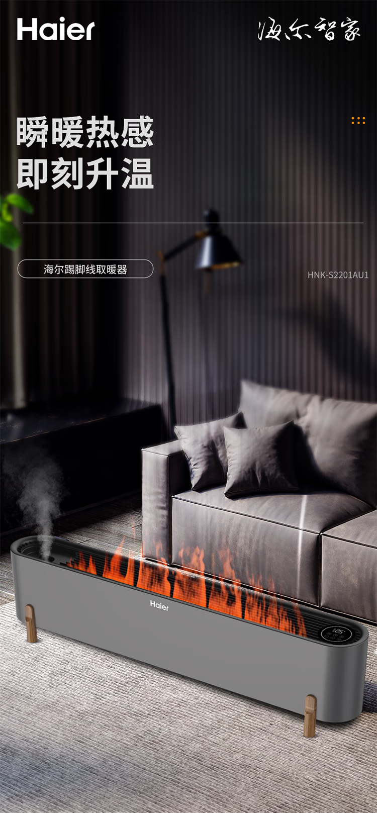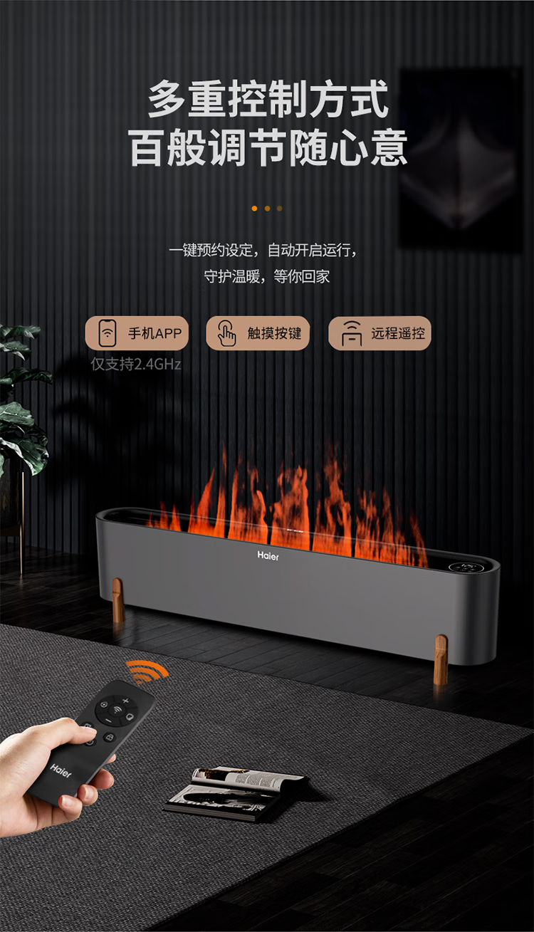 海尔石墨烯踢脚线取暖器家用卧室客厅电暖器电暖气片节能取暖神器遥控加湿移动地暖烤火炉 【3D仿真火焰】 APP操控 2201