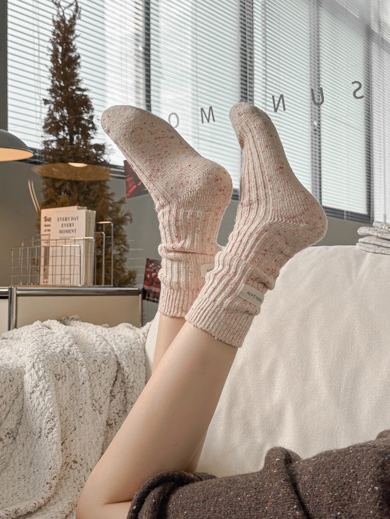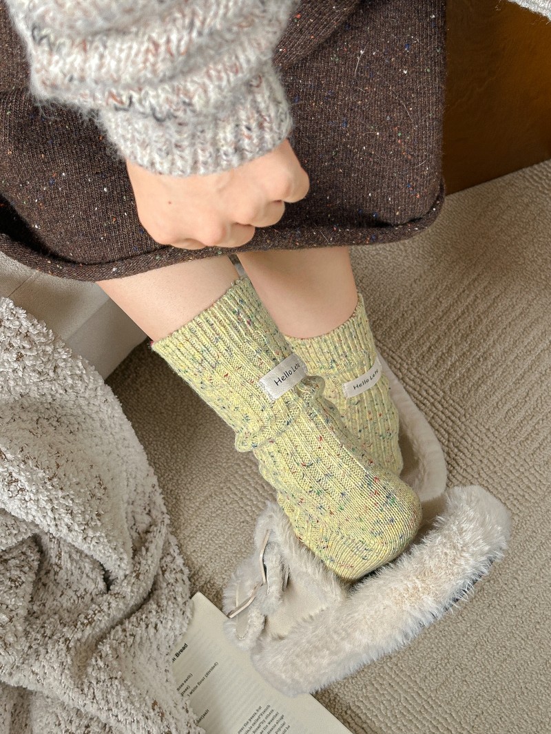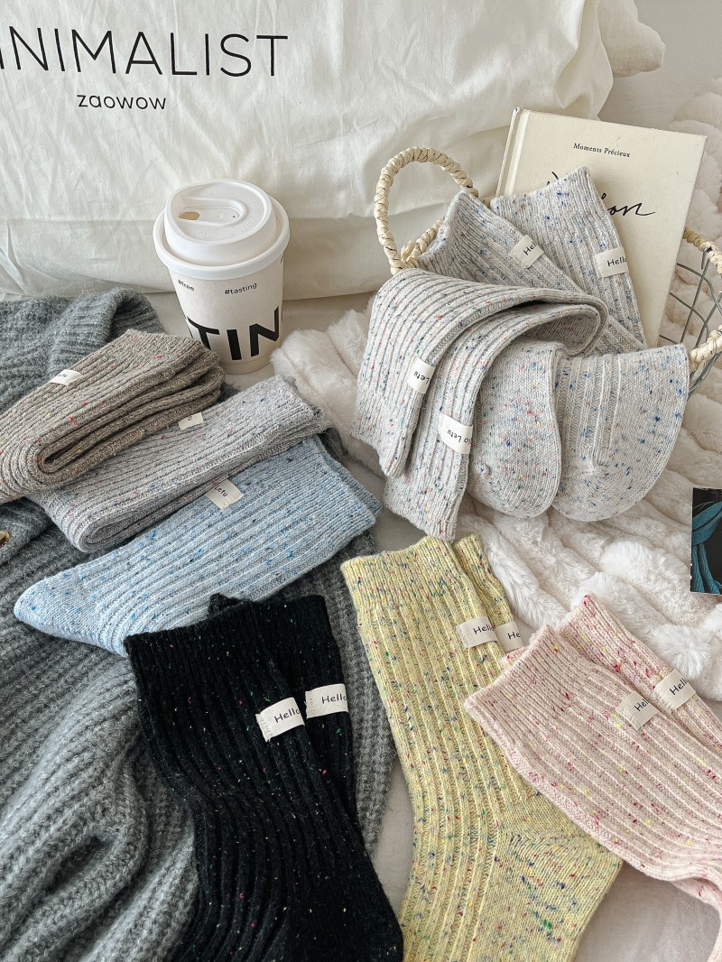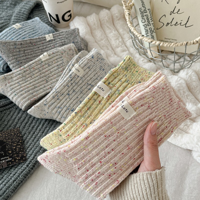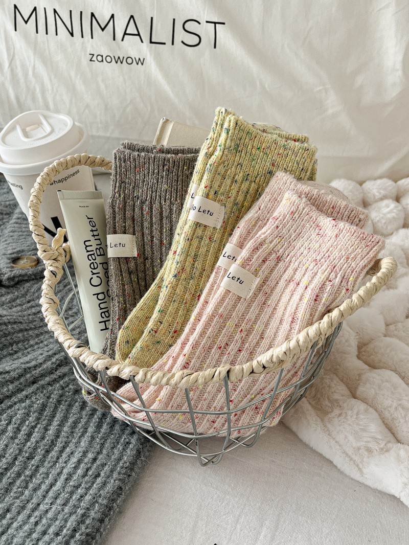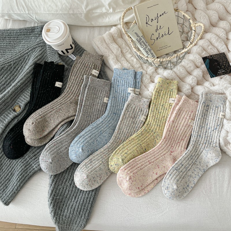 【日系中筒百搭袜】秋冬点子纱堆堆袜日系中筒袜百搭彩点布标袜加厚羊毛保暖复古袜子。ry