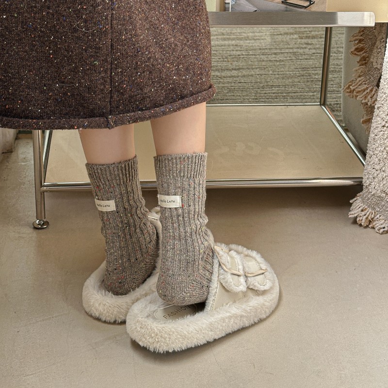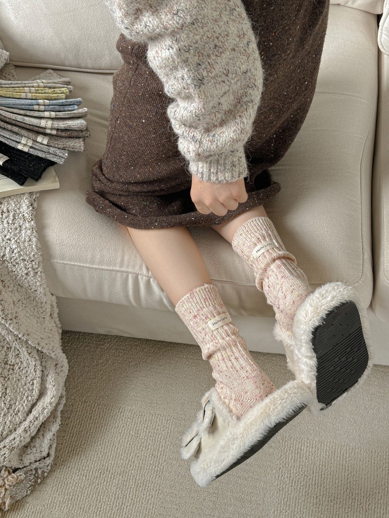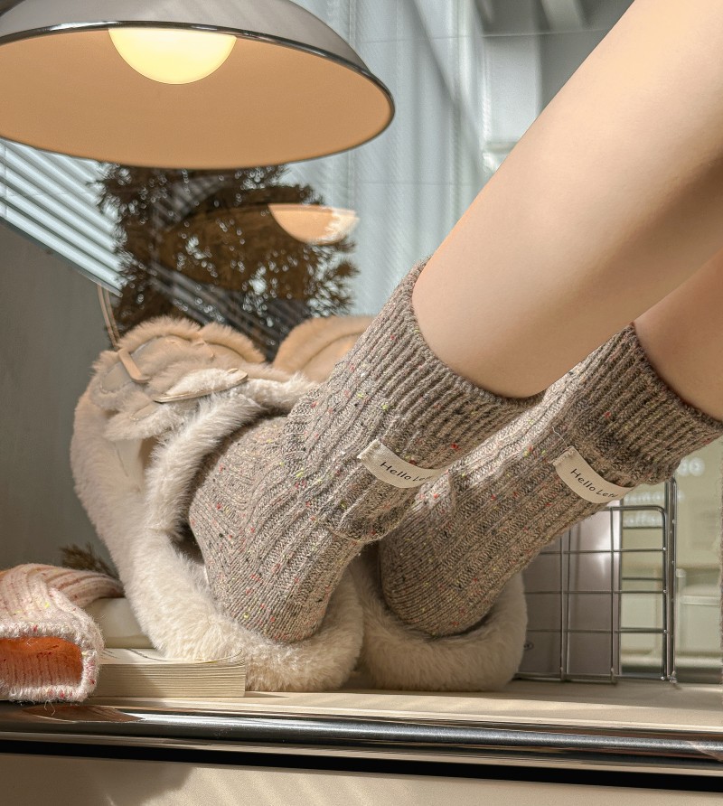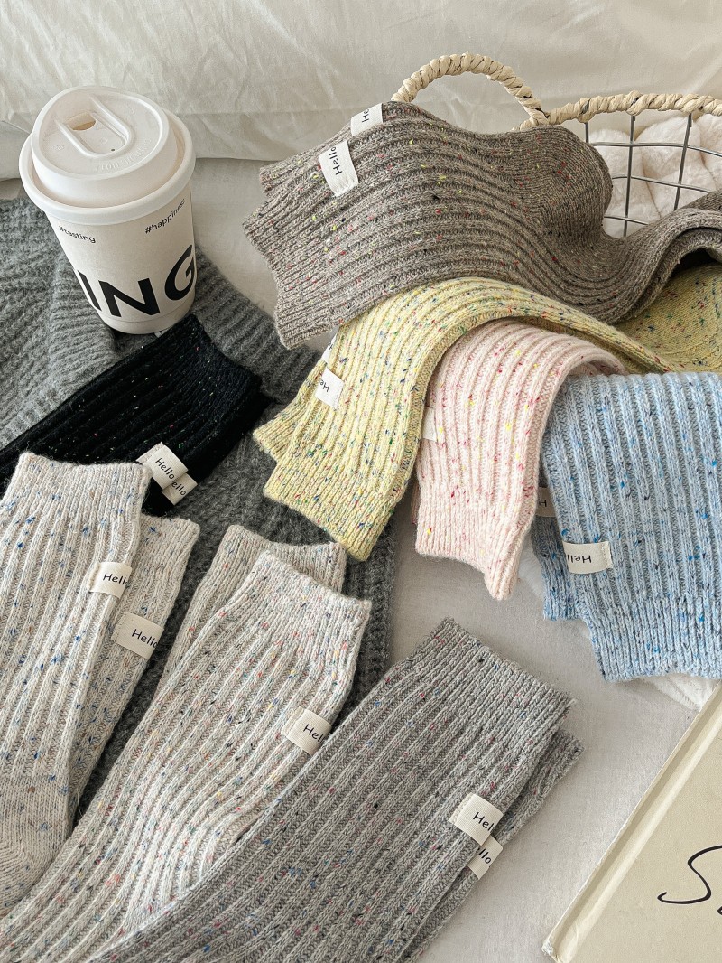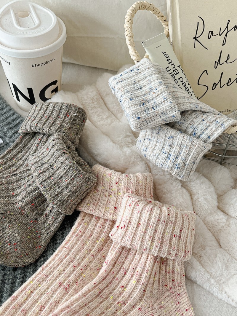【日系中筒百搭袜】秋冬点子纱堆堆袜日系中筒袜百搭彩点布标袜加厚羊毛保暖复古袜子。ry