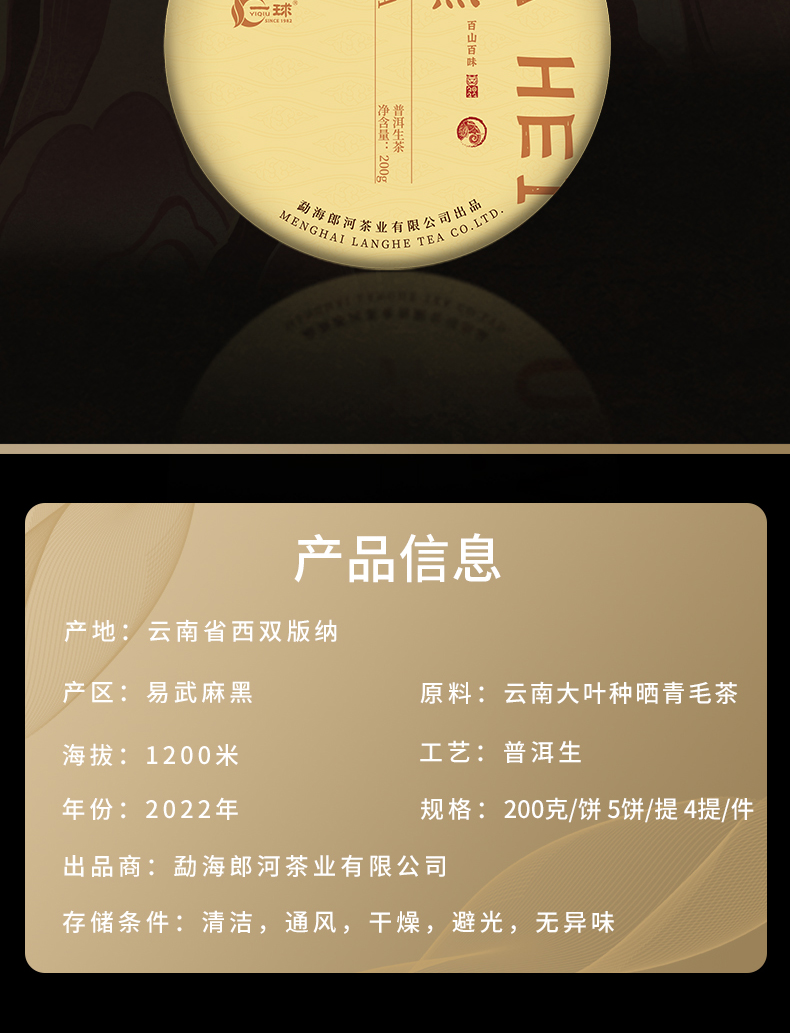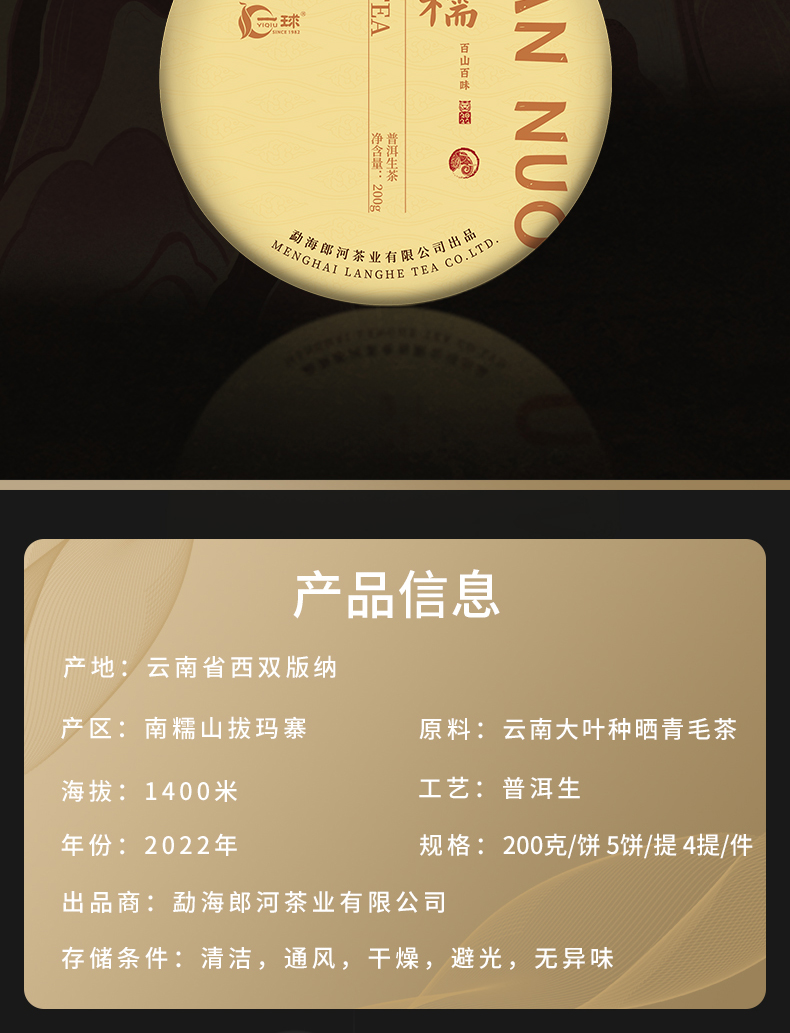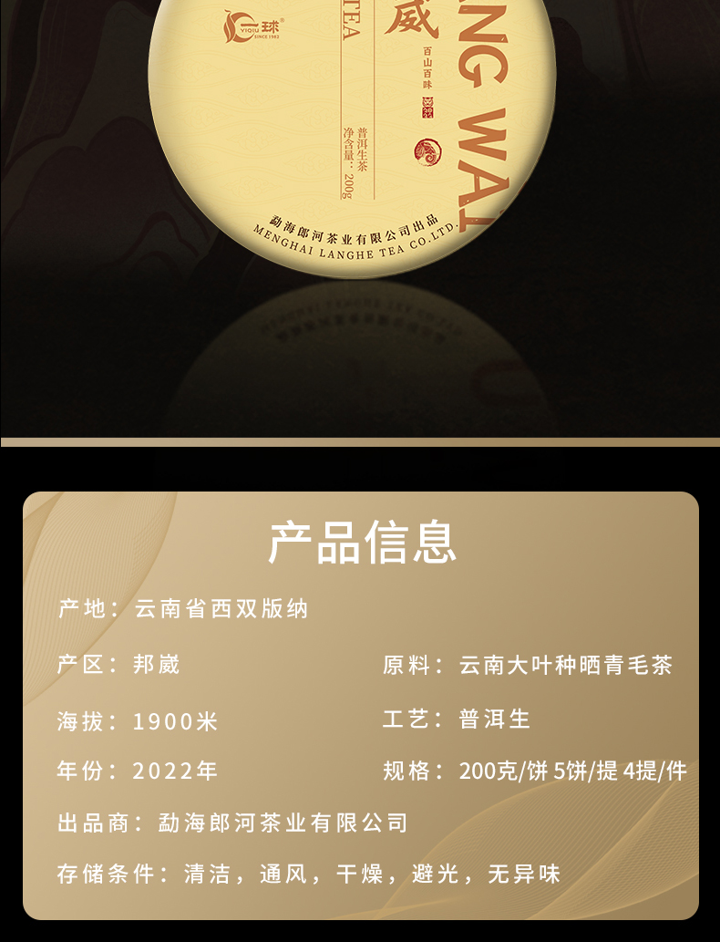 一球2022年百山百味系列生茶礼盒1kg
