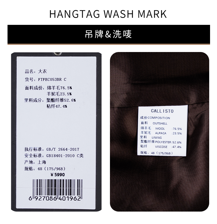 callisto高智系列咖啡色羊毛羊驼毛大衣