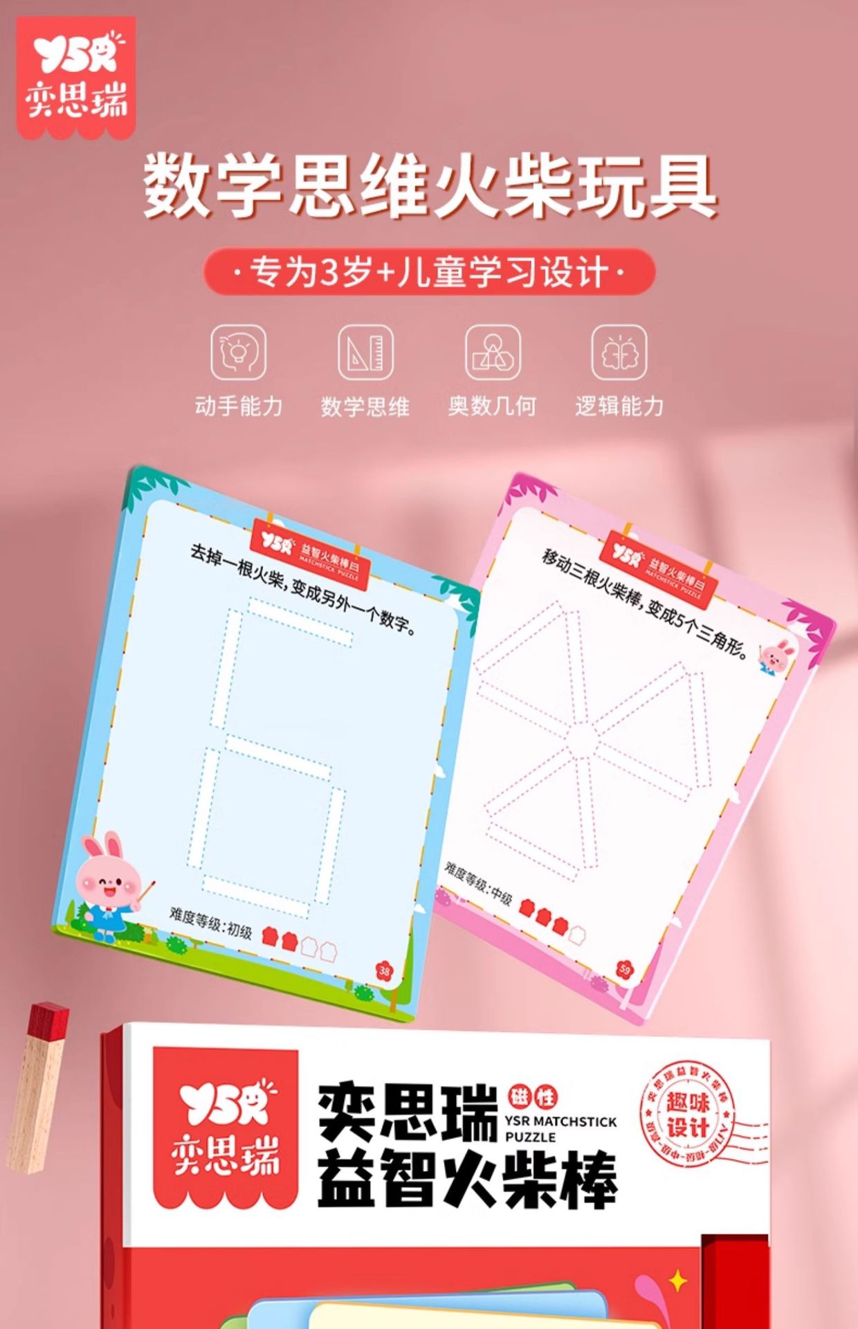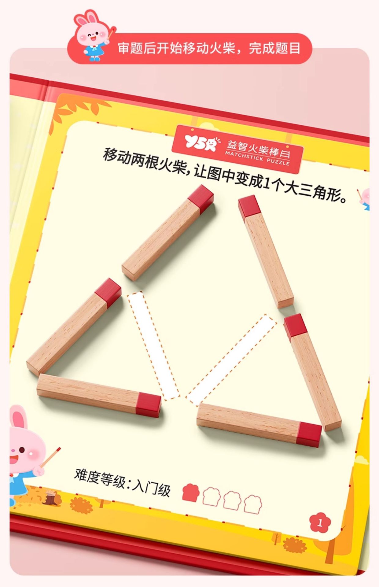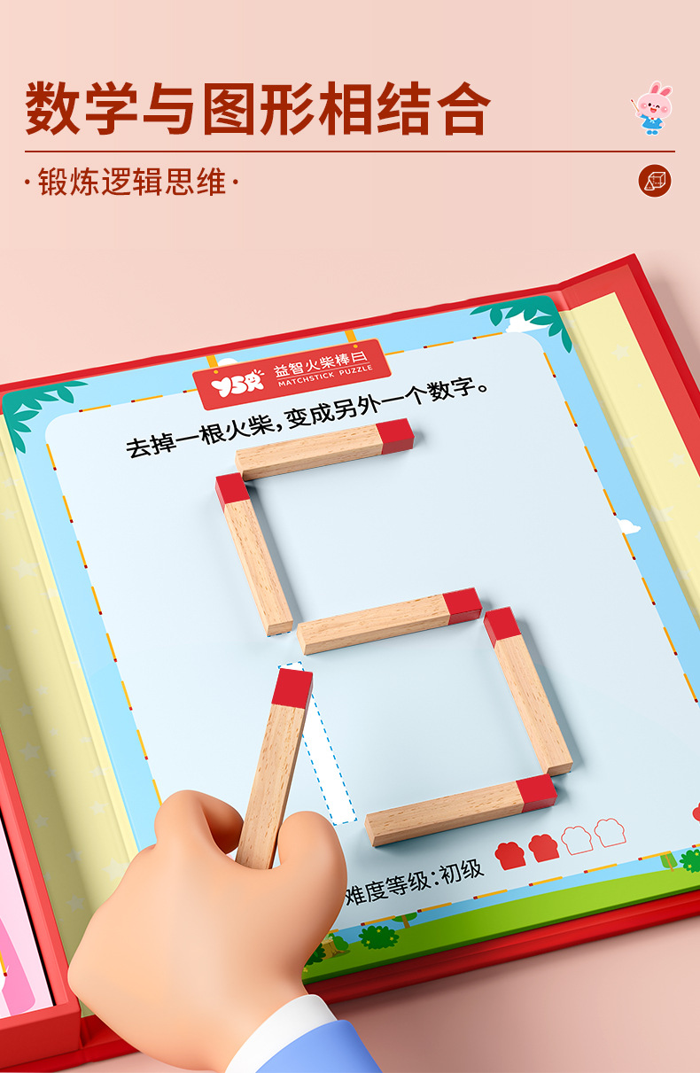 【数学和图形结合 趣味运算】奕思瑞大脑思维训练益智玩具注意力教具6岁以上儿童数学思维火柴棒游戏