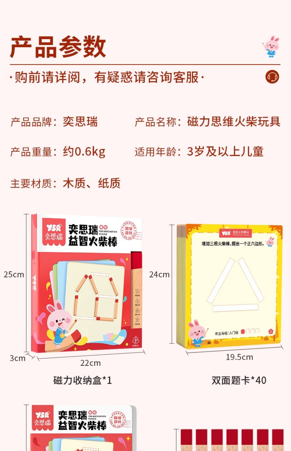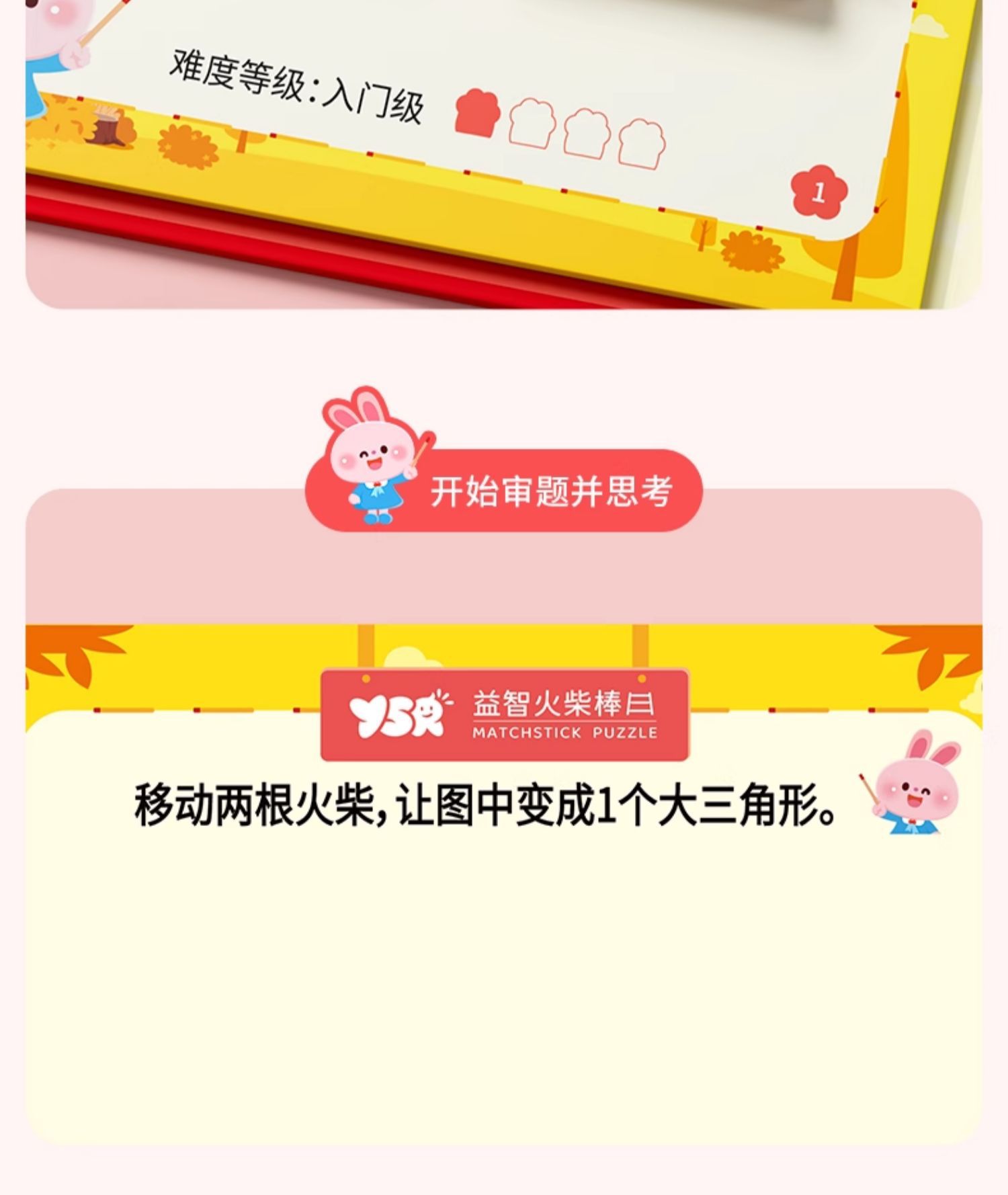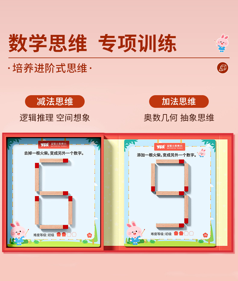 【数学和图形结合 趣味运算】奕思瑞大脑思维训练益智玩具注意力教具6岁以上儿童数学思维火柴棒游戏