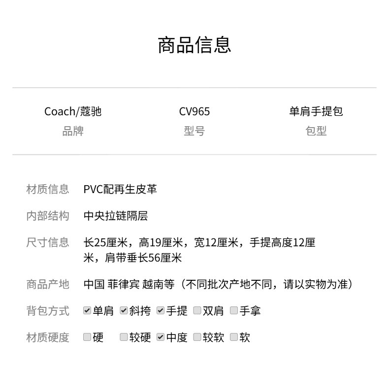 COACH 奥莱款女士PVC配皮单肩斜挎手提包CV965IMXU5