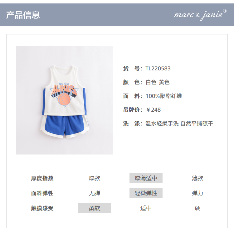 马克珍妮 男童运动风背心套装 儿童篮球服220583