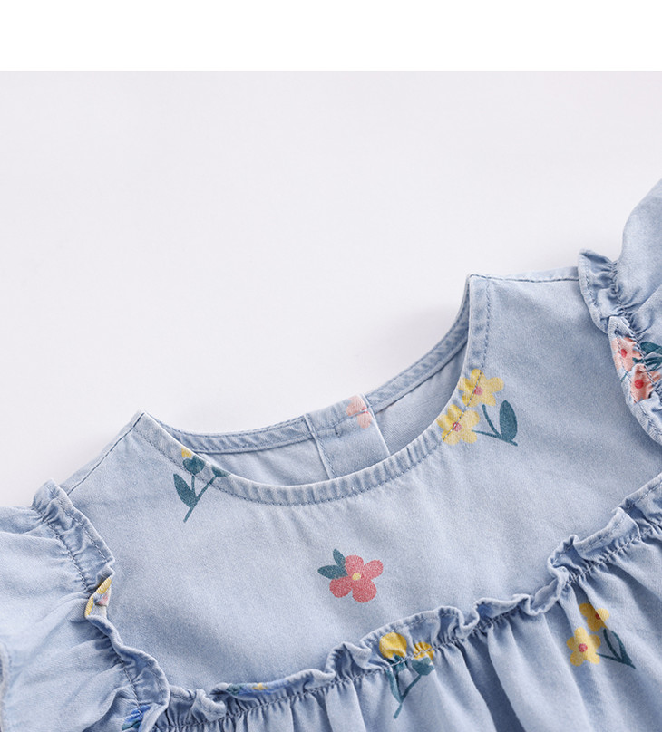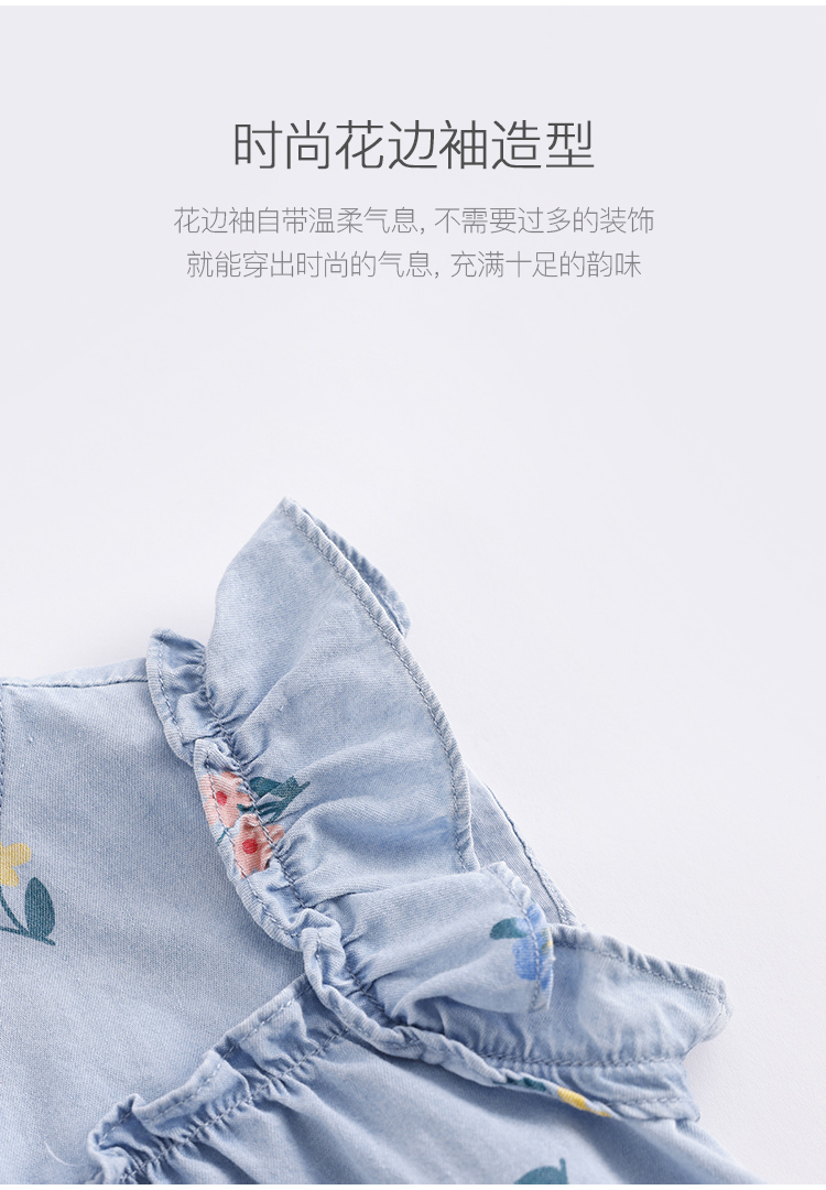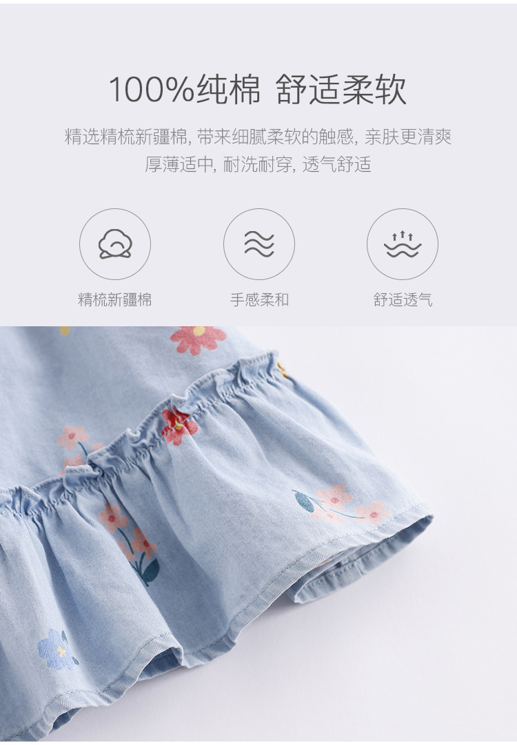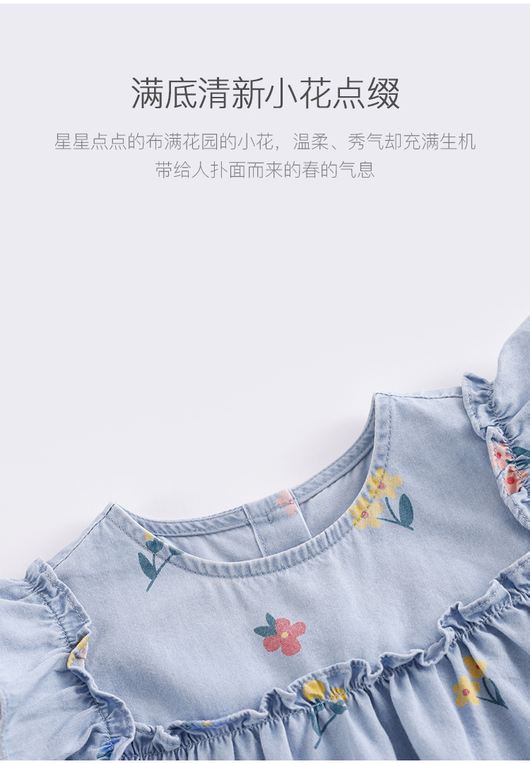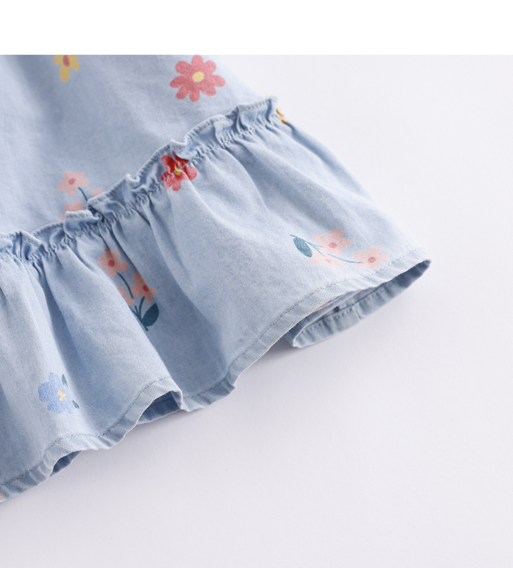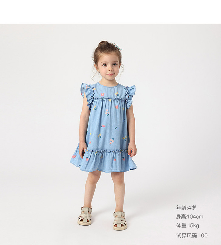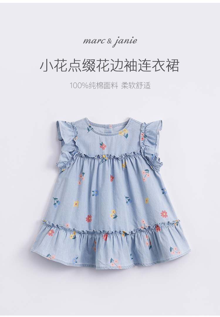 马克珍妮夏装新款 女童花边袖纯棉牛仔裙连衣裙230792