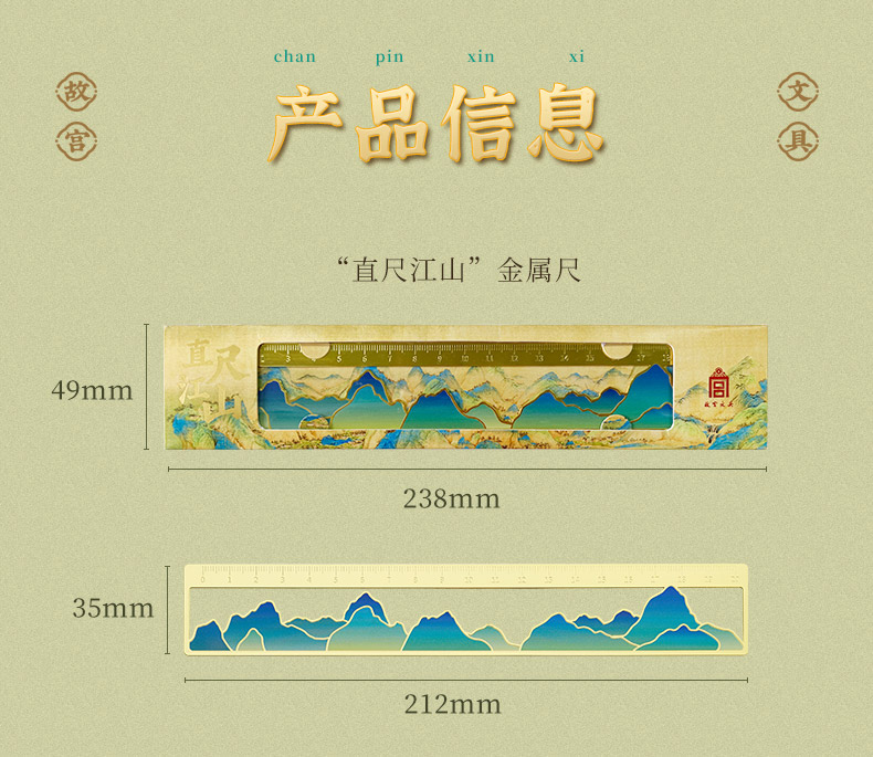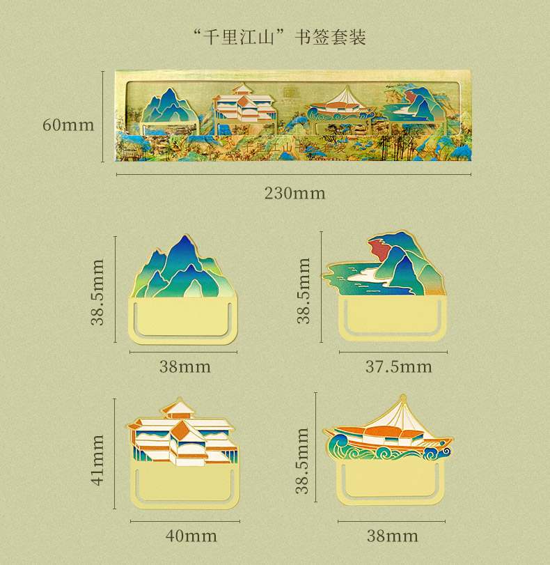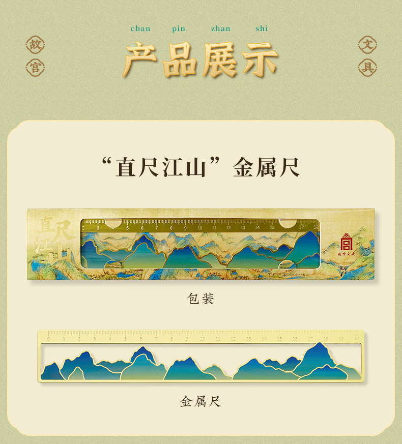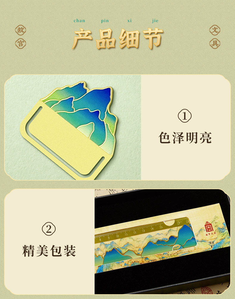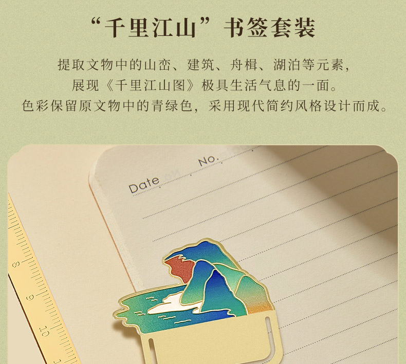 故宫文具 千里江山图文创礼品商务教师学生办公礼盒开学礼物奖品金属书签尺子云上青绿套装