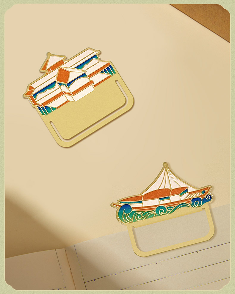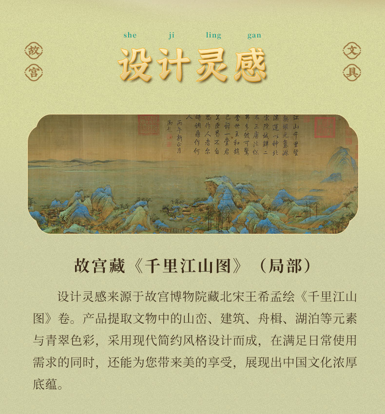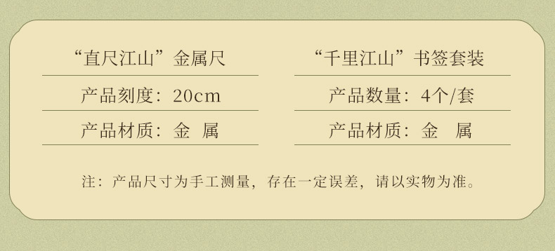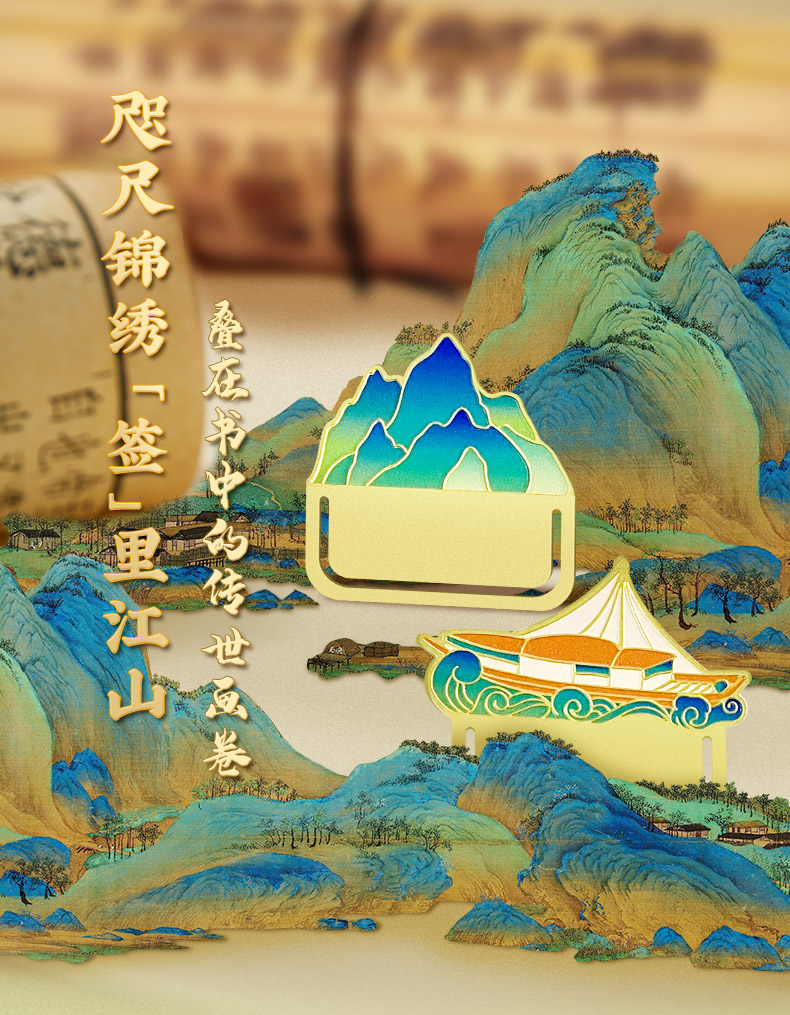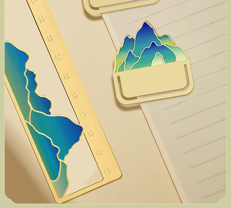 故宫文具 千里江山图文创礼品商务教师学生办公礼盒开学礼物奖品金属书签尺子云上青绿套装
