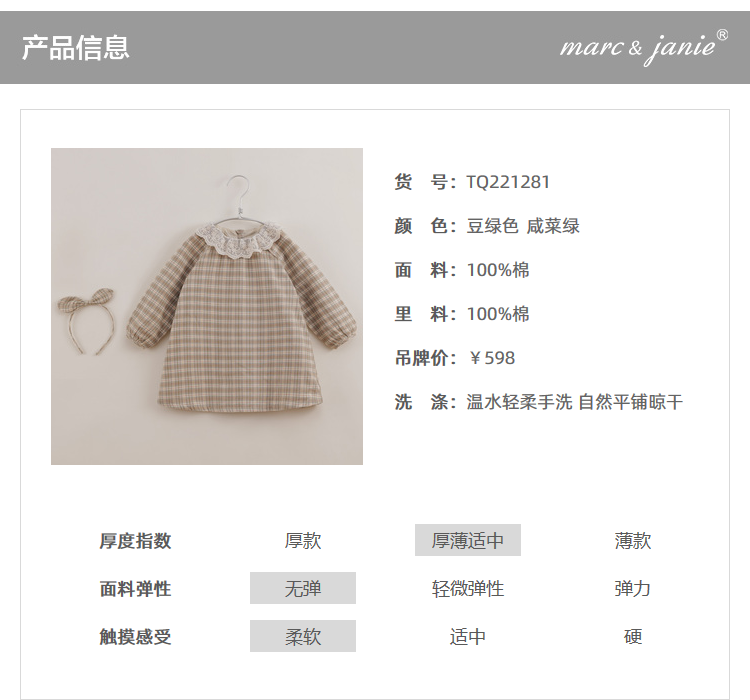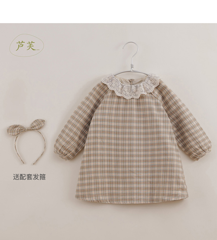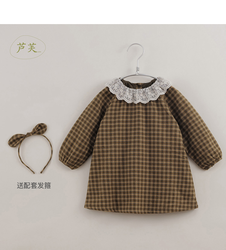 【马克珍妮 芦芙】秋装新款 女童格纹法兰绒连衣裙 221281