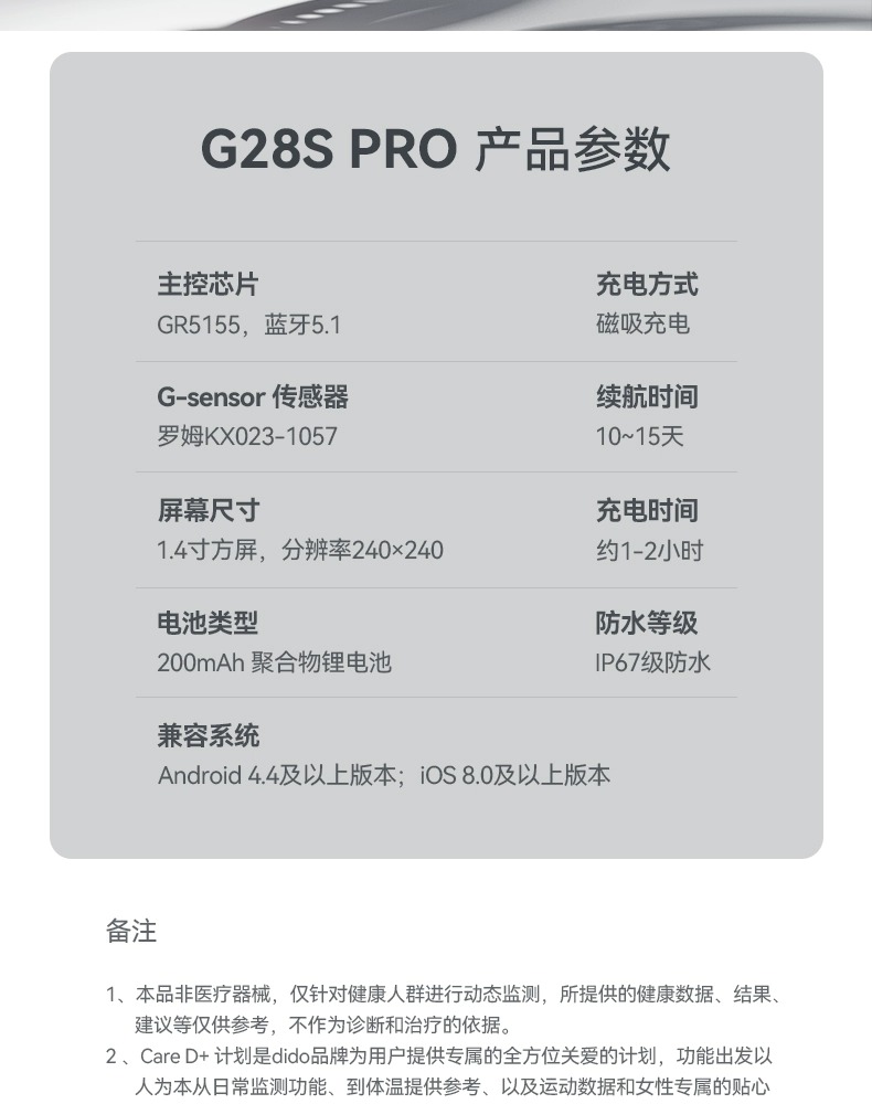 DIDO G28SPRO 血糖血压智能手表 心率电跳量监测试仪健康老年人男女跑步运动手环