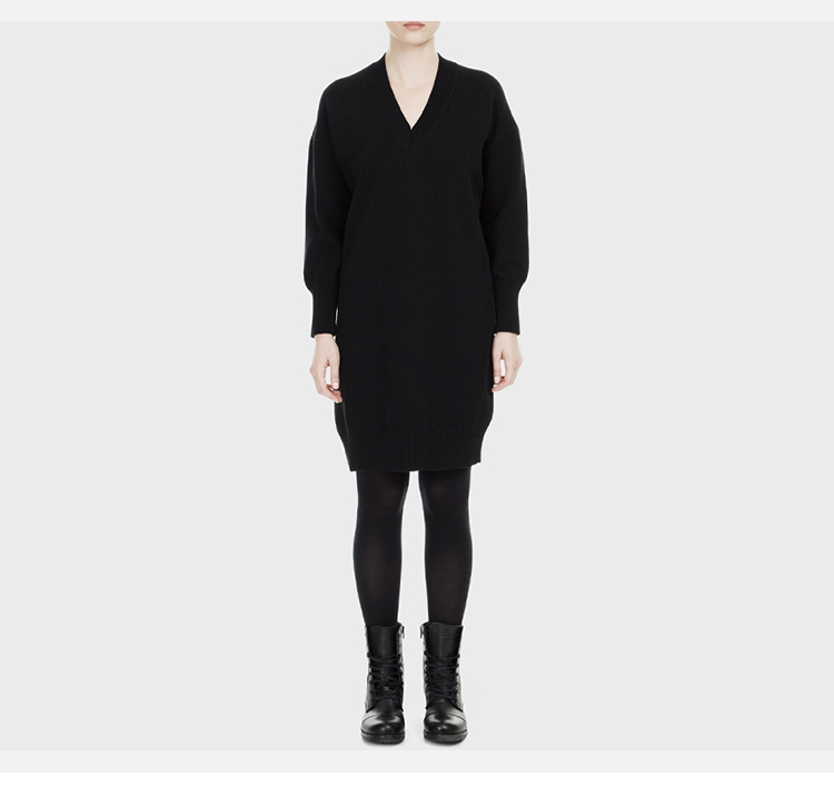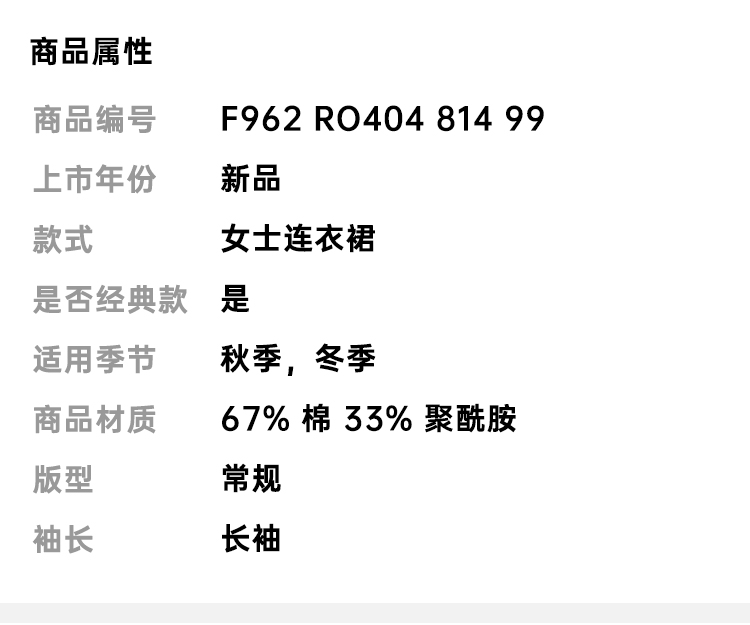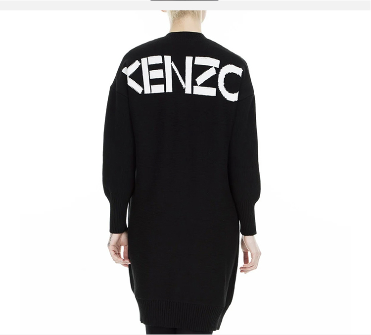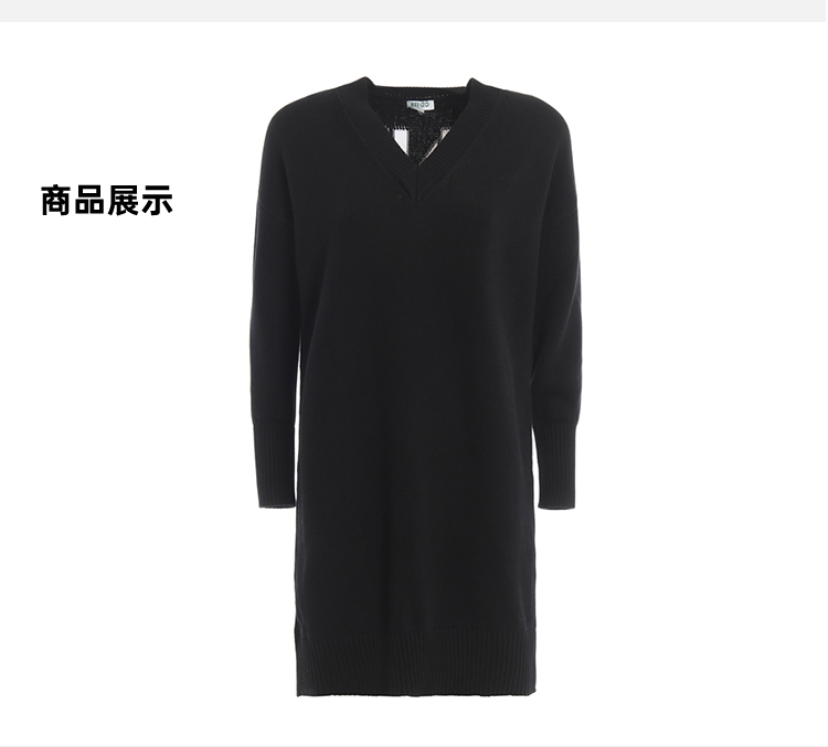 KENZO 高田贤三 女士棉质字母徽标刺绣V领长袖连衣裙 黑色 F962 RO404 814 99