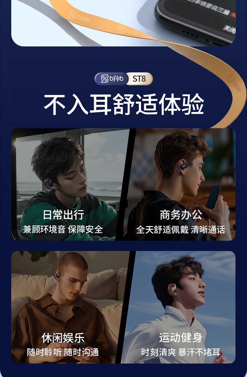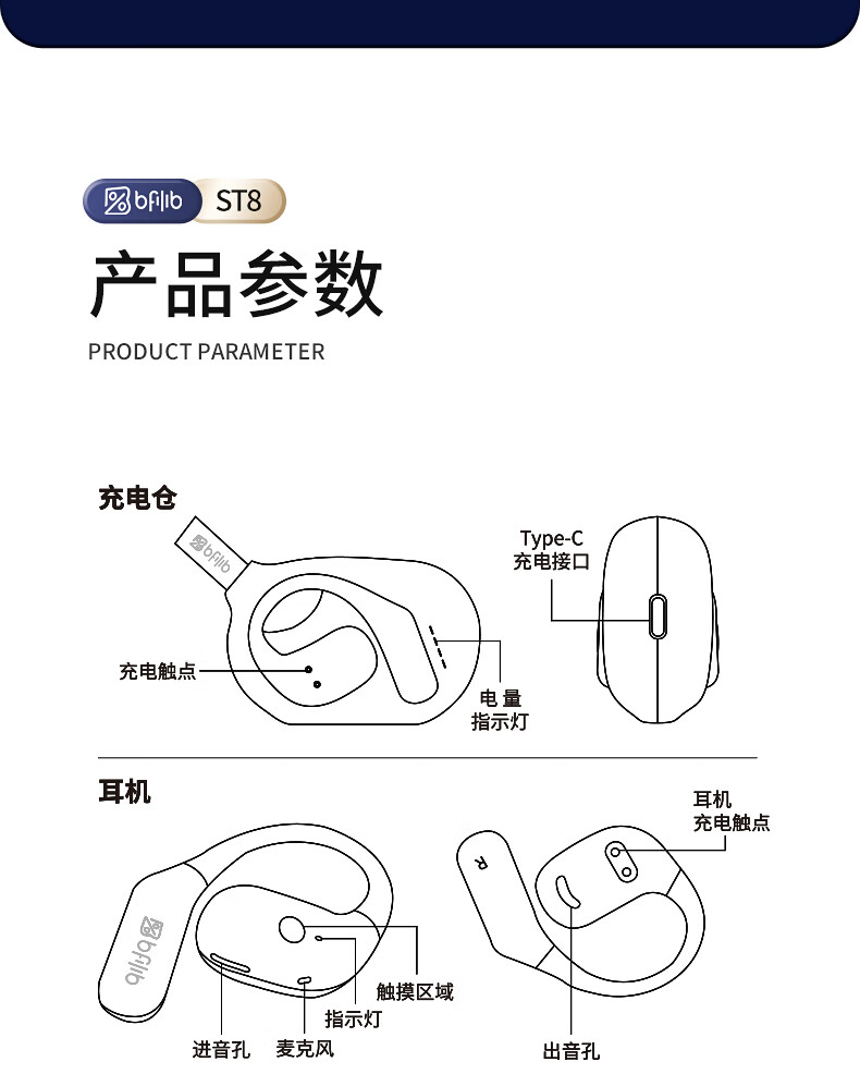索爱 气传导蓝牙耳机 ST8 白色