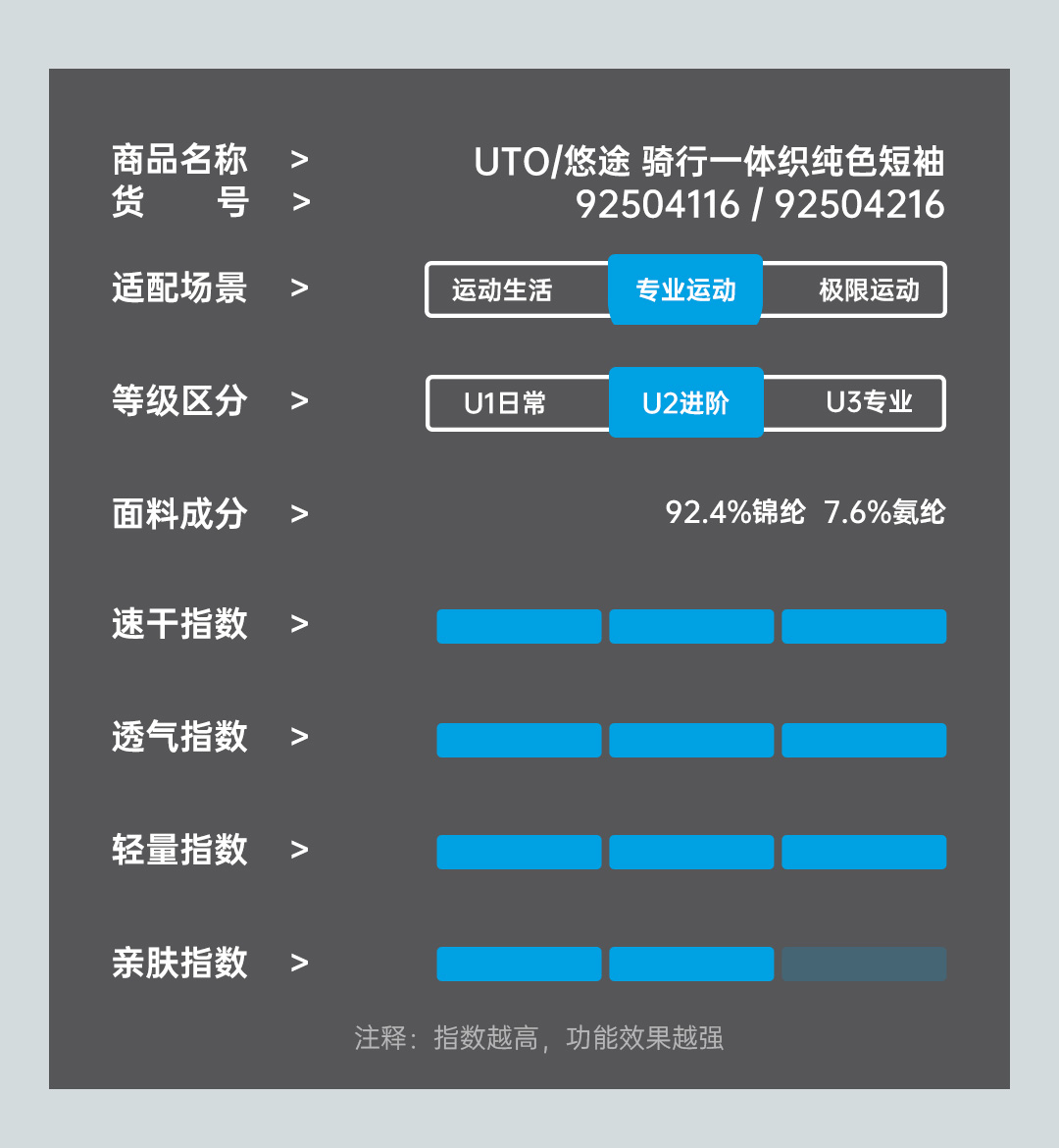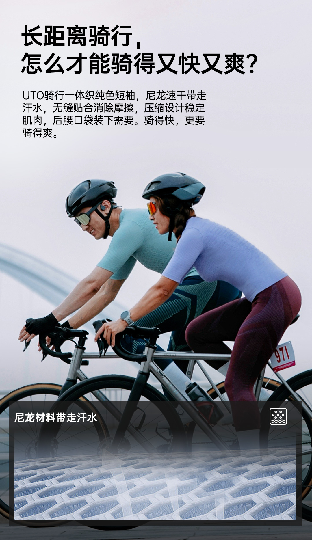 UTO悠途潜心于贴身运动装备的研发、设计和生产。从纤维到组织,从设计到工艺,在无缝贴身运动装备领域,树立国内标杆。 UTO着力于品牌互联网化,不断采集大量运动数据,为跑步、健身、滑雪等不同类型的运动爱