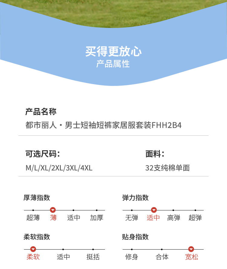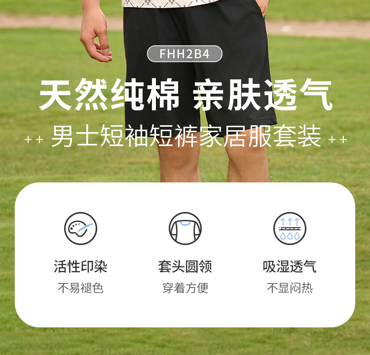 都市锋尚男士棉质短袖套装薄32支纯棉单面舒适外出无短袖类FHH2B4