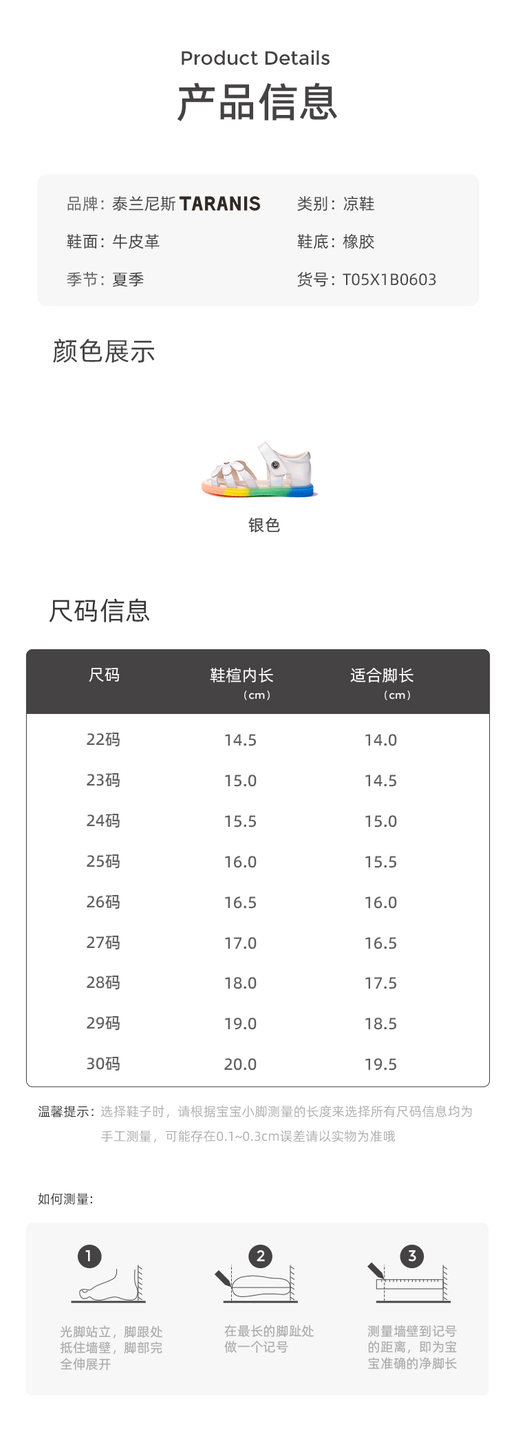 泰兰尼斯夏季新款镂空透气儿童鞋子凉鞋T05X1B0603
