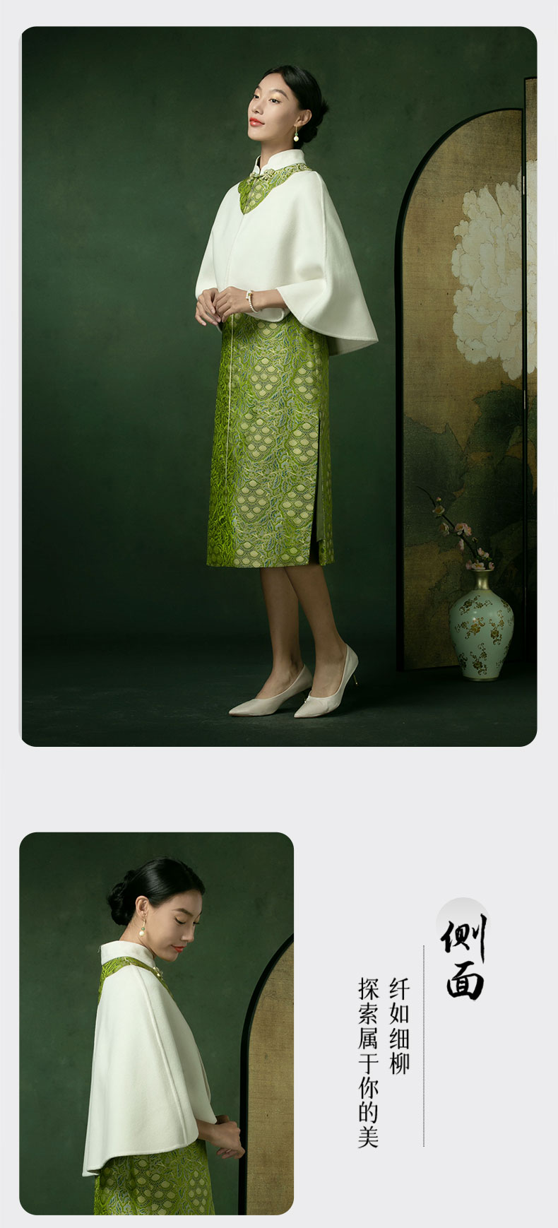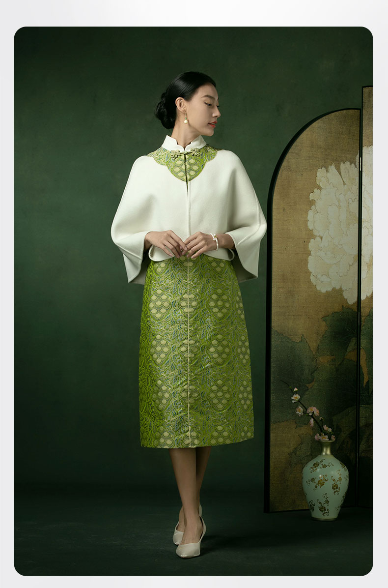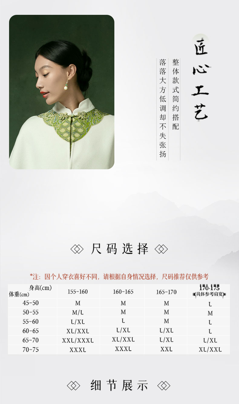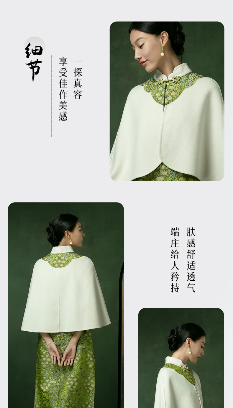 吉祥衣家新中式国风秋冬保暖气质复古白色女装花落菩提斗篷披肩