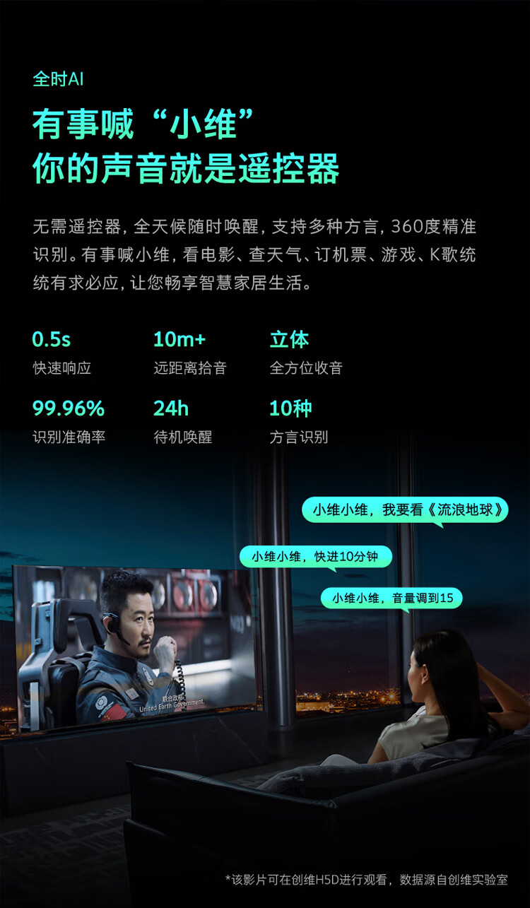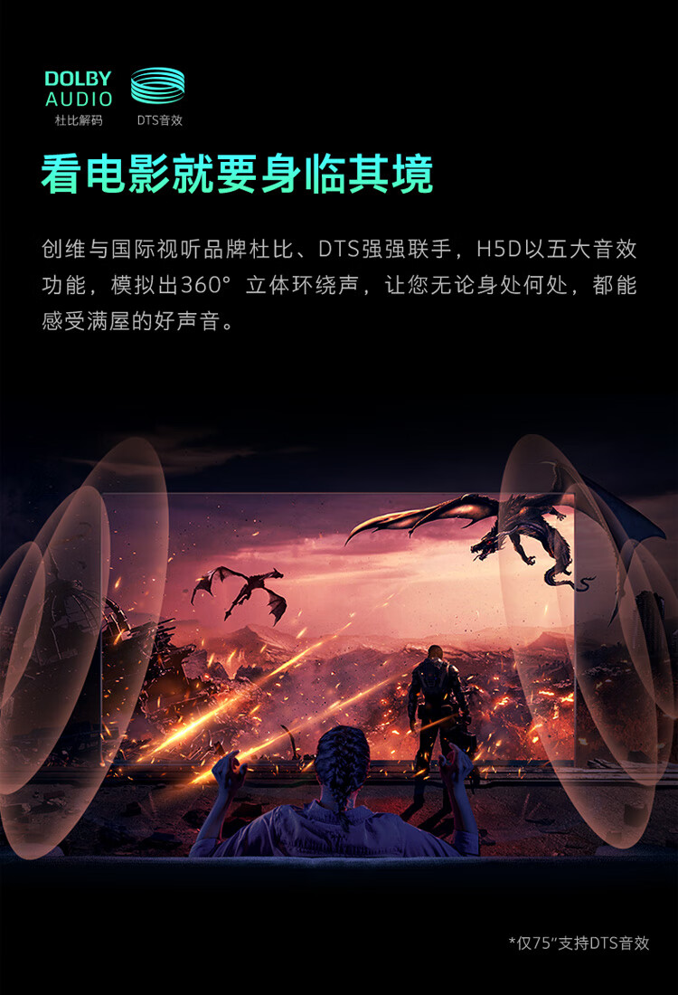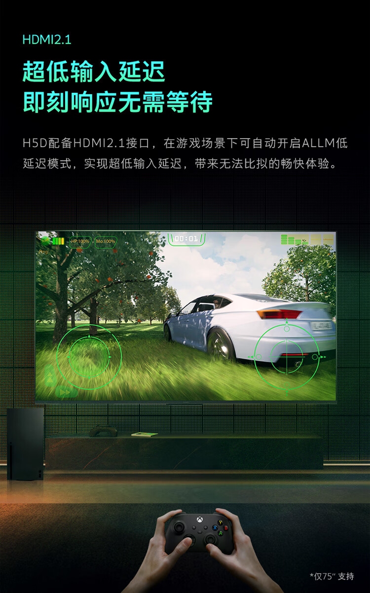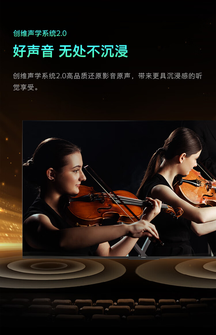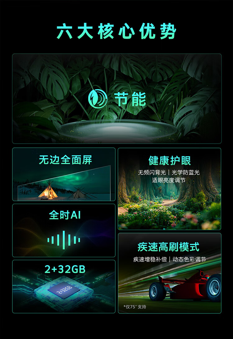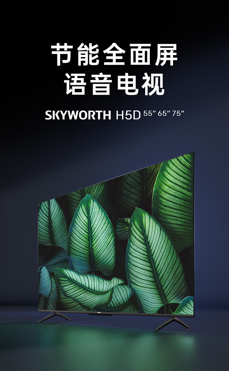 创维电视75H5D 75英寸 节能全面屏远场语音 疾速高刷 4K超高清 2+32G电视机