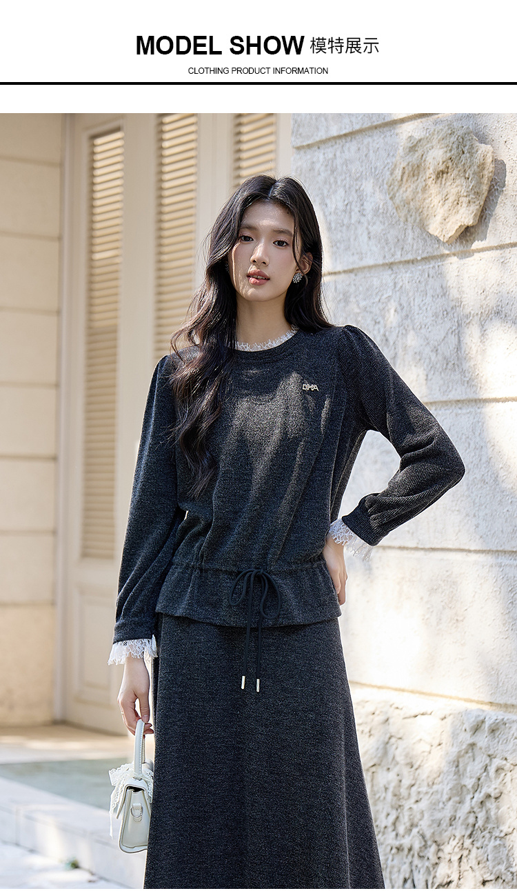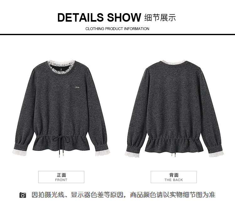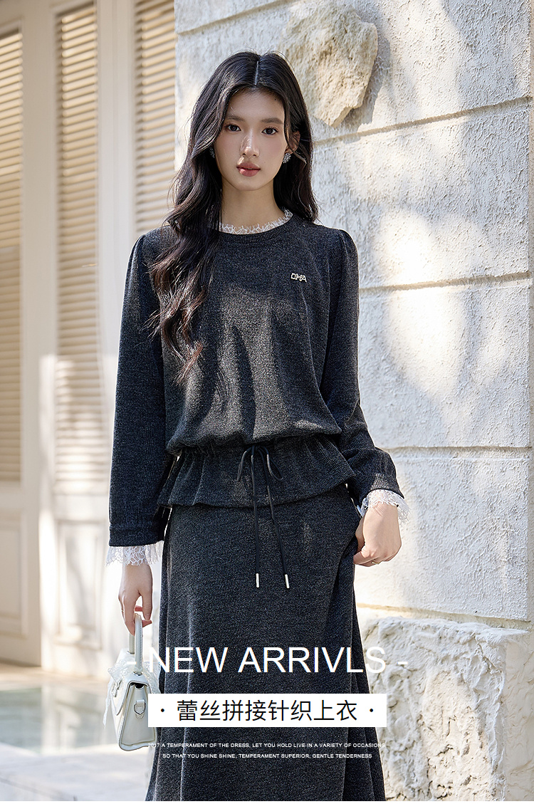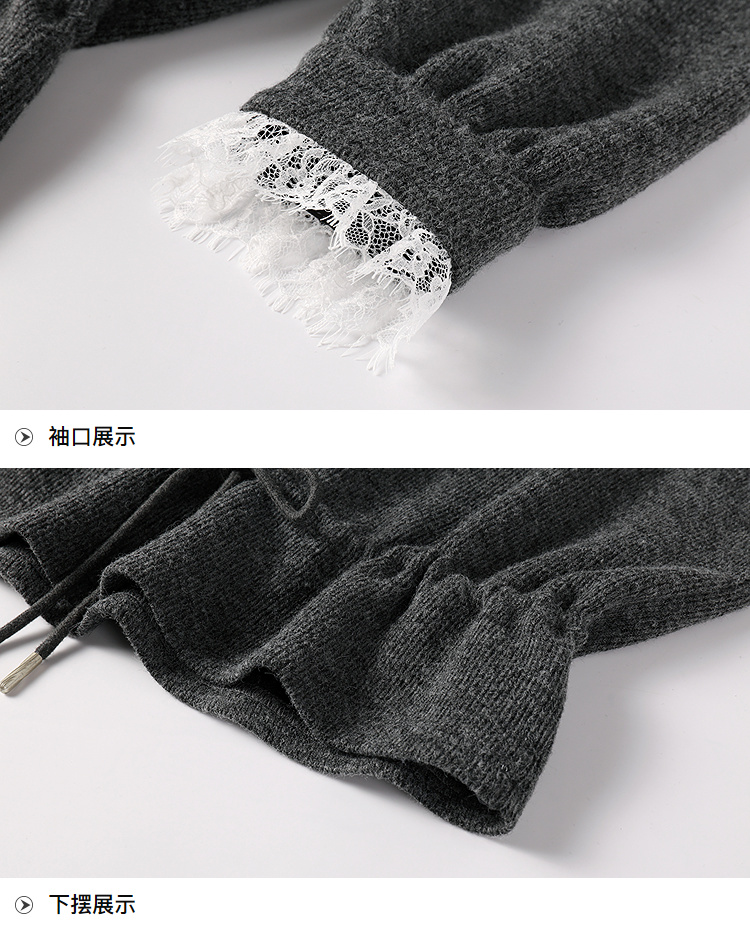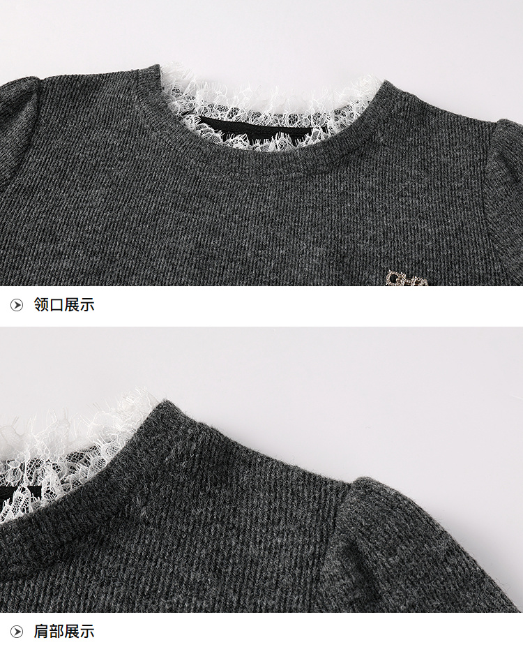 奢姿胖妹妹大码2025冬季蕾丝圆领针织衫长袖上衣温柔风打底毛衣9954253818A