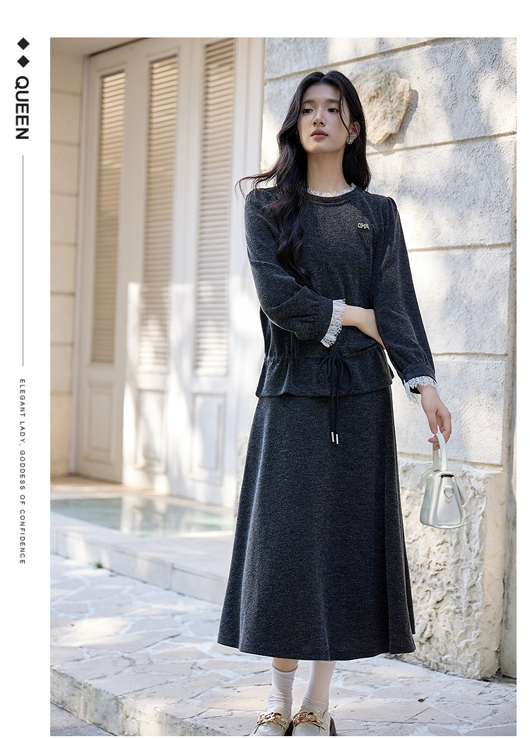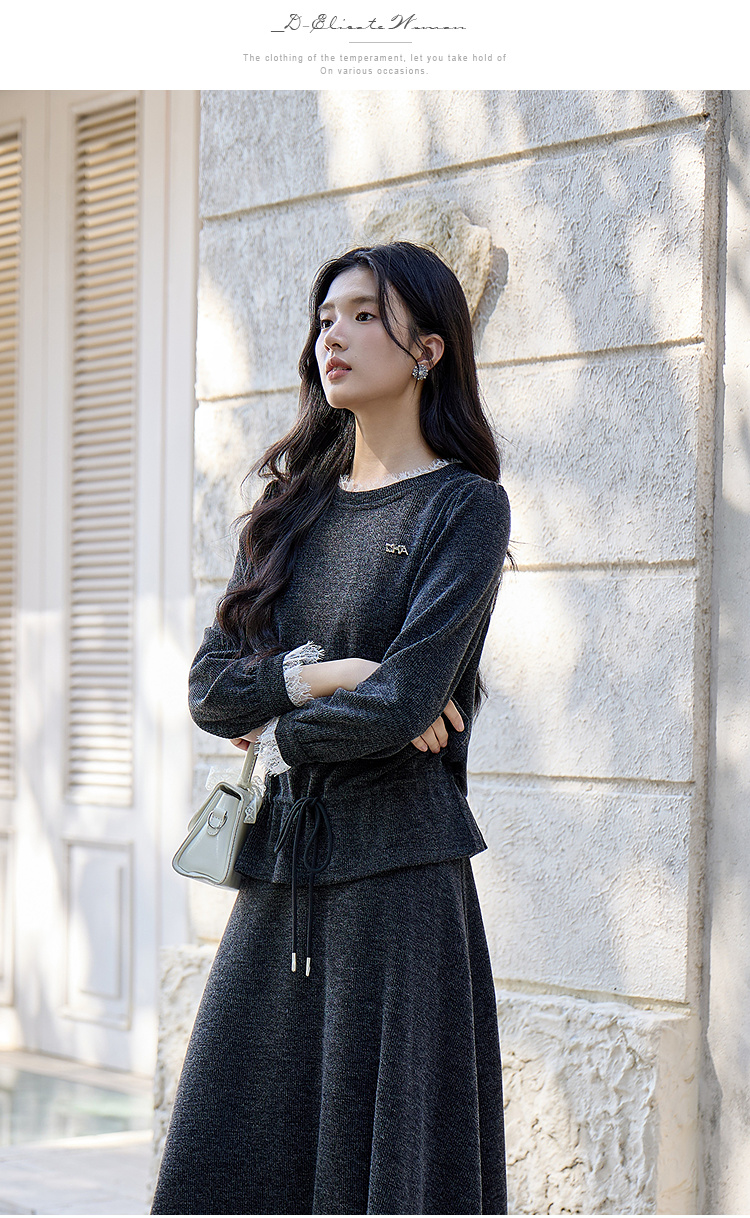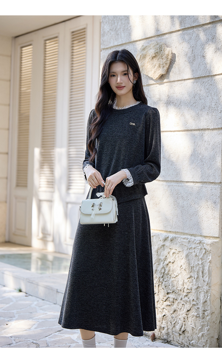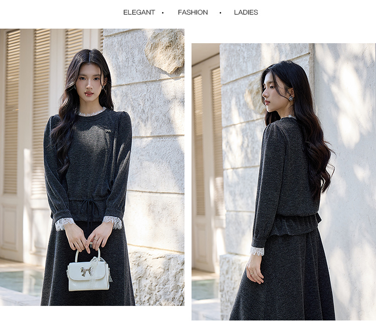 奢姿胖妹妹大码2025冬季蕾丝圆领针织衫长袖上衣温柔风打底毛衣9954253818A
