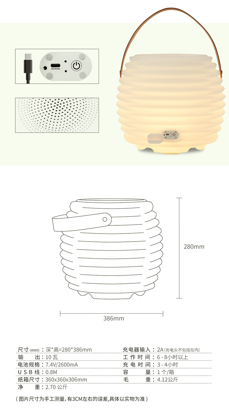 华十乐创意灯具露营聚会礼品北欧花瓶装饰摆件冰桶蓝牙音箱-小胖