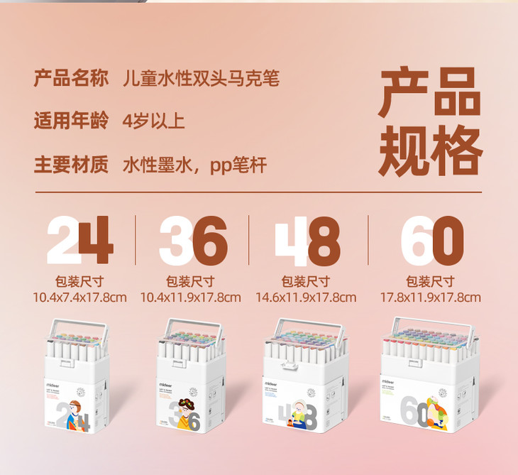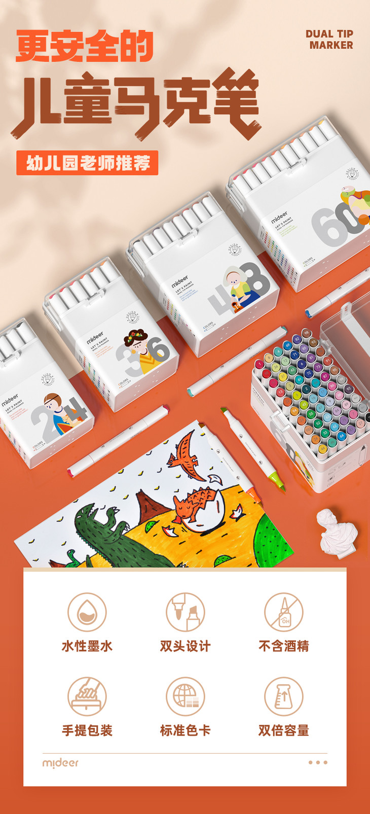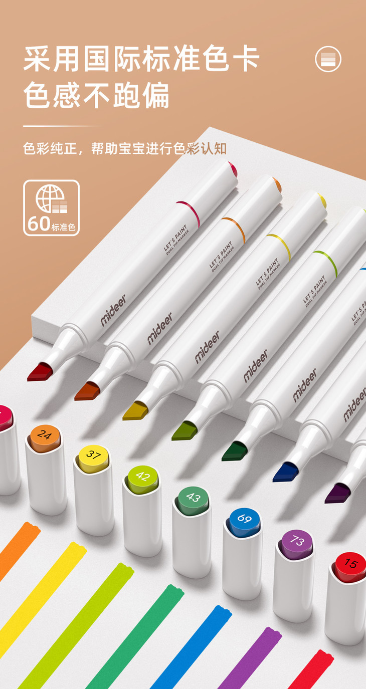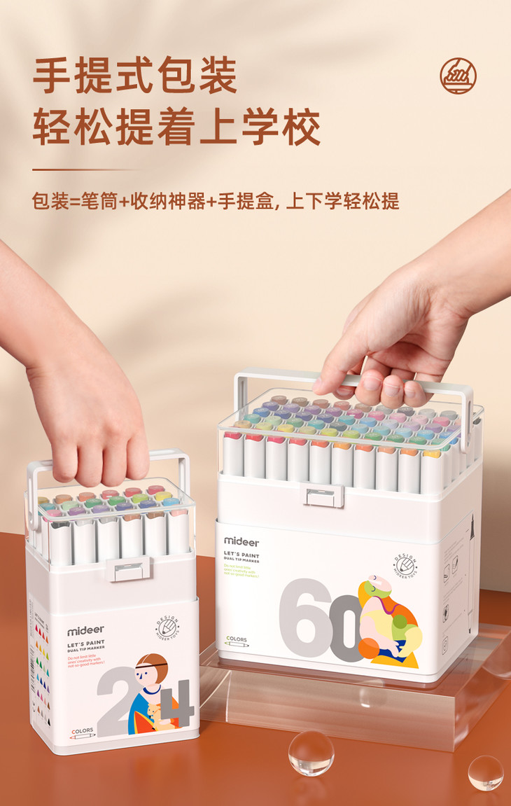 mideer弥鹿马克笔儿童60色水彩笔套装双头水性美术生专用48色小学生36色无毒可水洗速干24色软头彩色动漫收纳