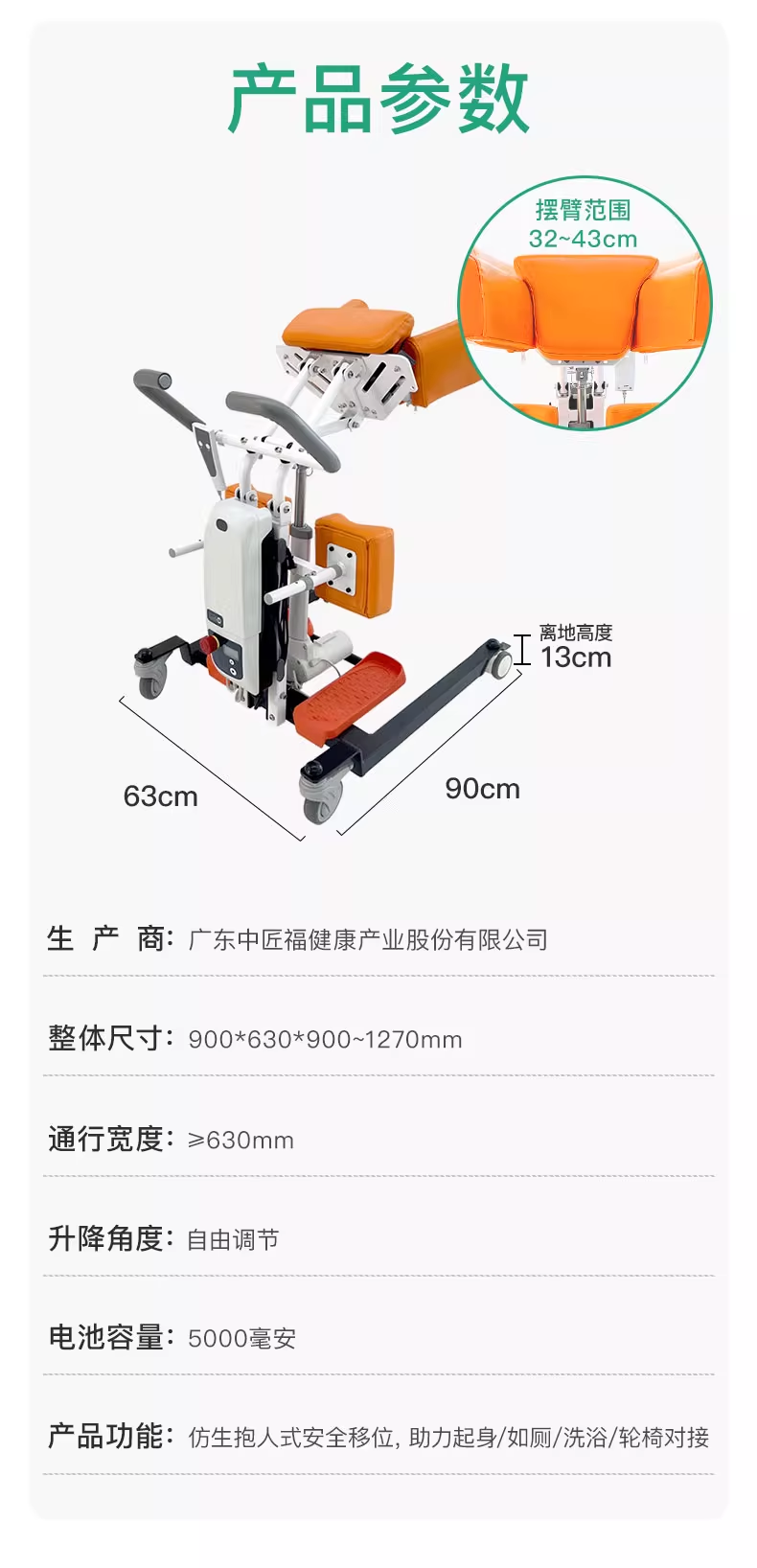 中匠福电动多功能移位机 腋托式移位机