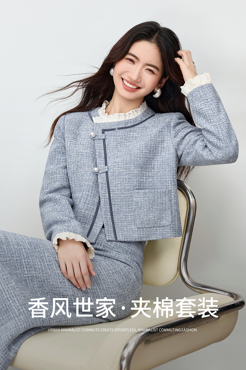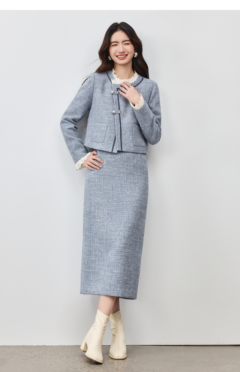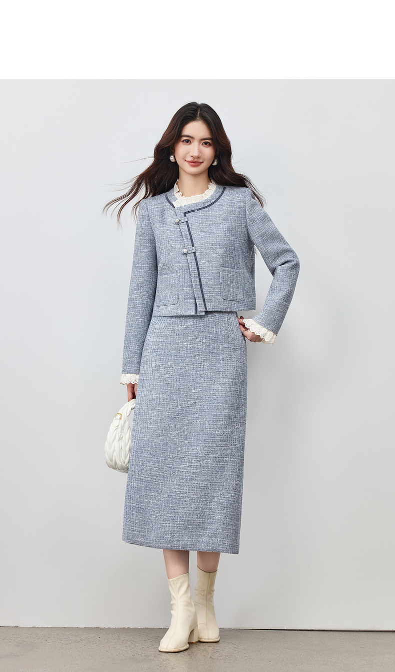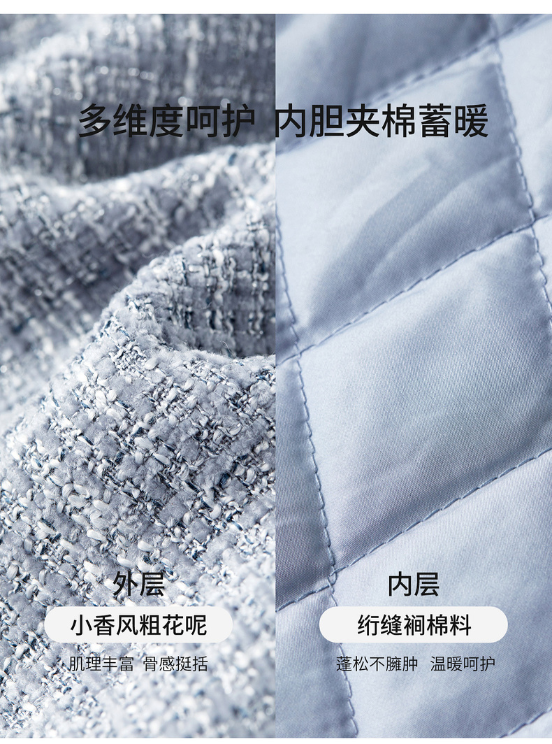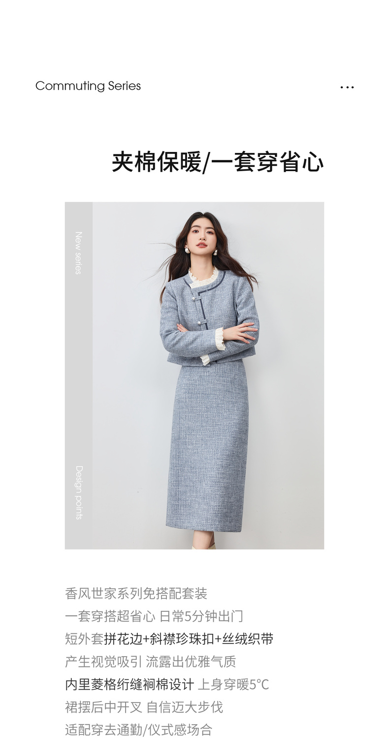 【内购】【免搭配】优雅小香风粗花呢垫肩夹棉保暖短外套&开叉直筒半裙-154ZJ3833