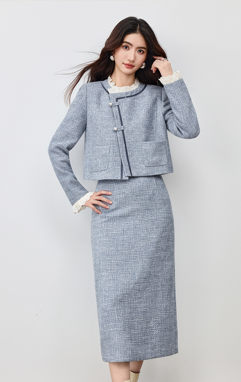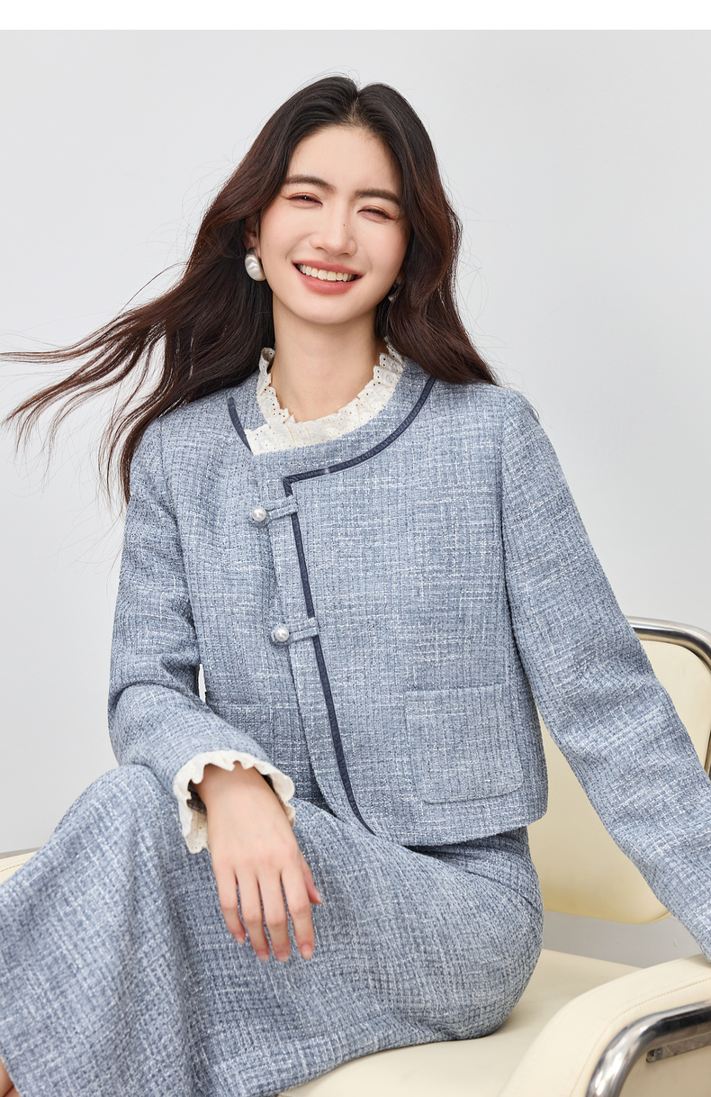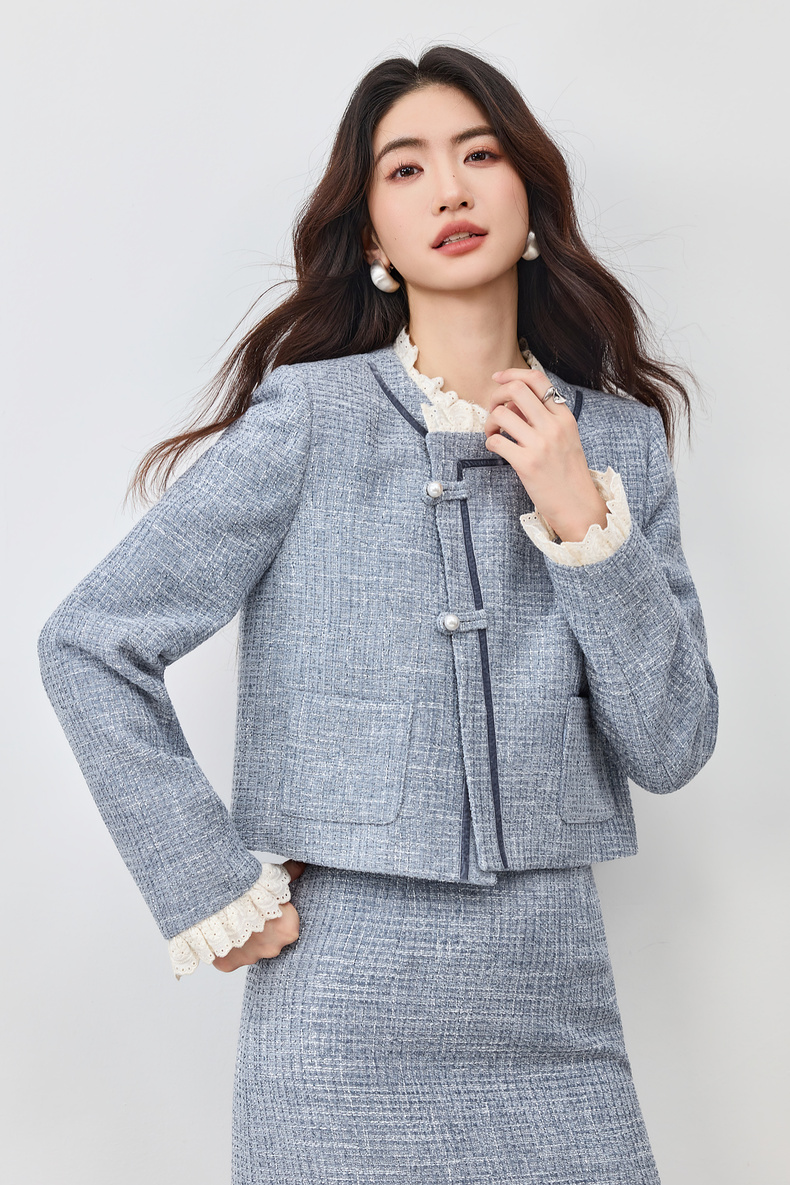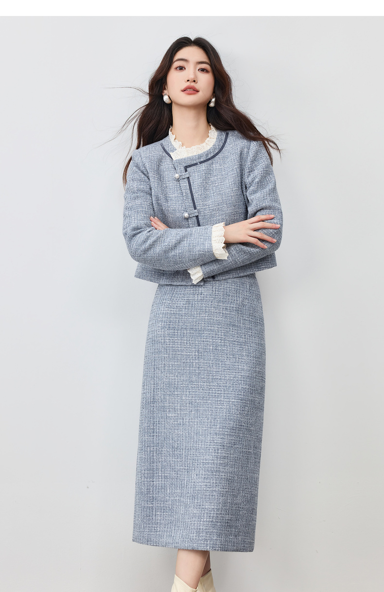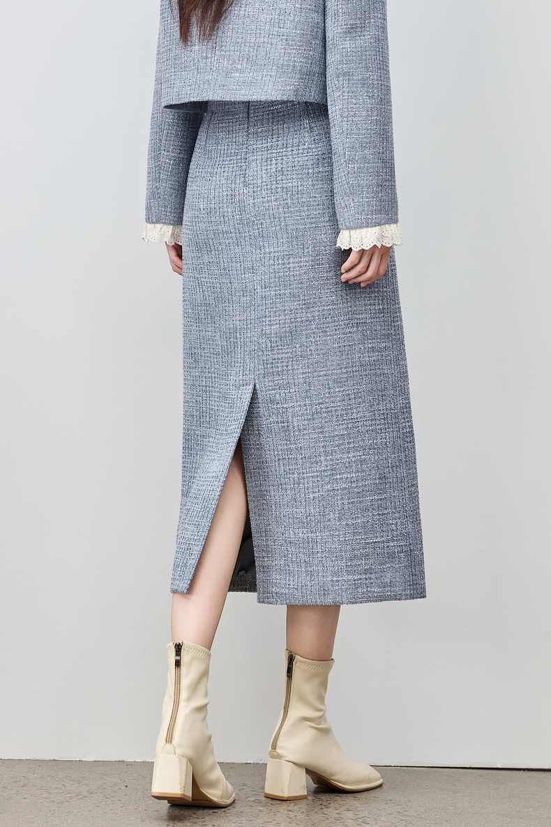 【内购】【免搭配】优雅小香风粗花呢垫肩夹棉保暖短外套&开叉直筒半裙-154ZJ3833