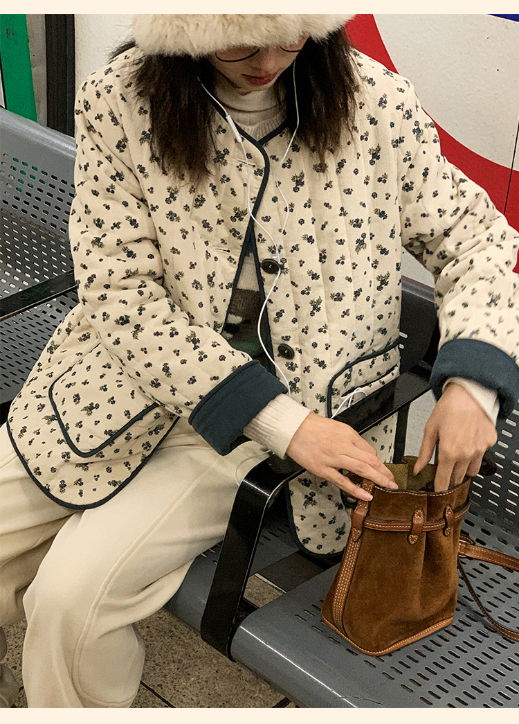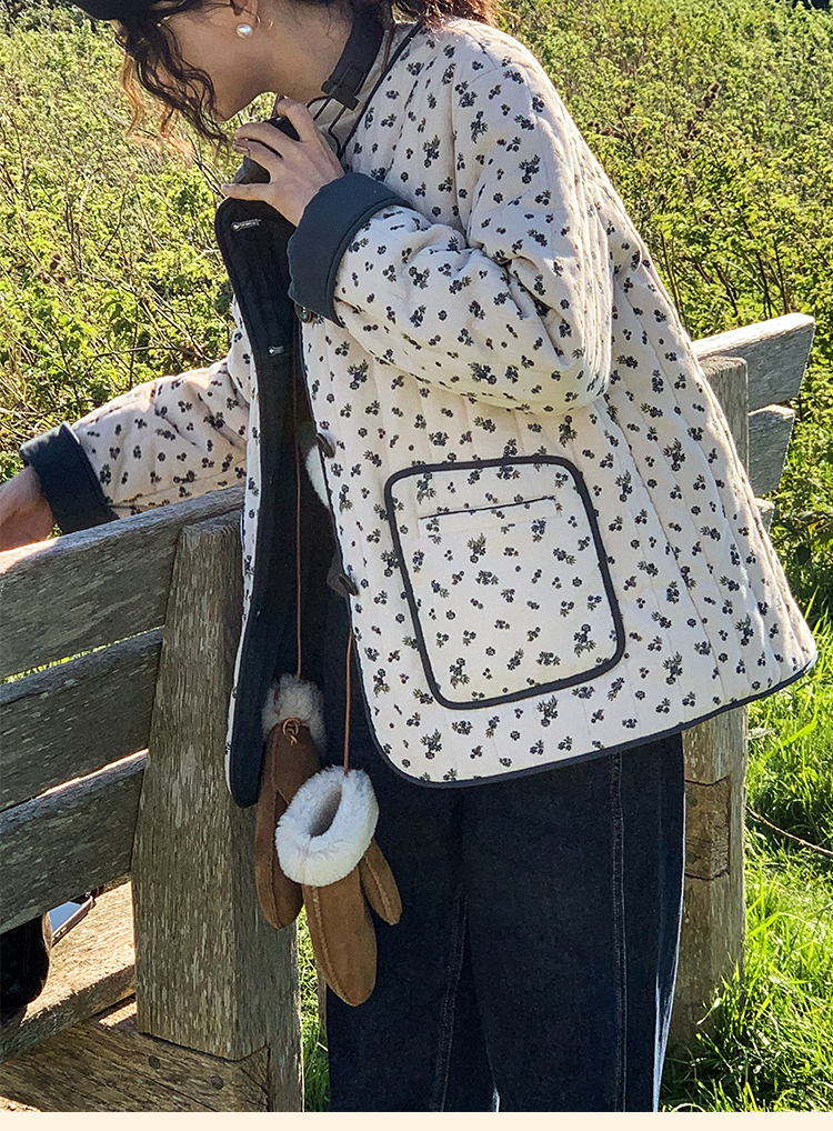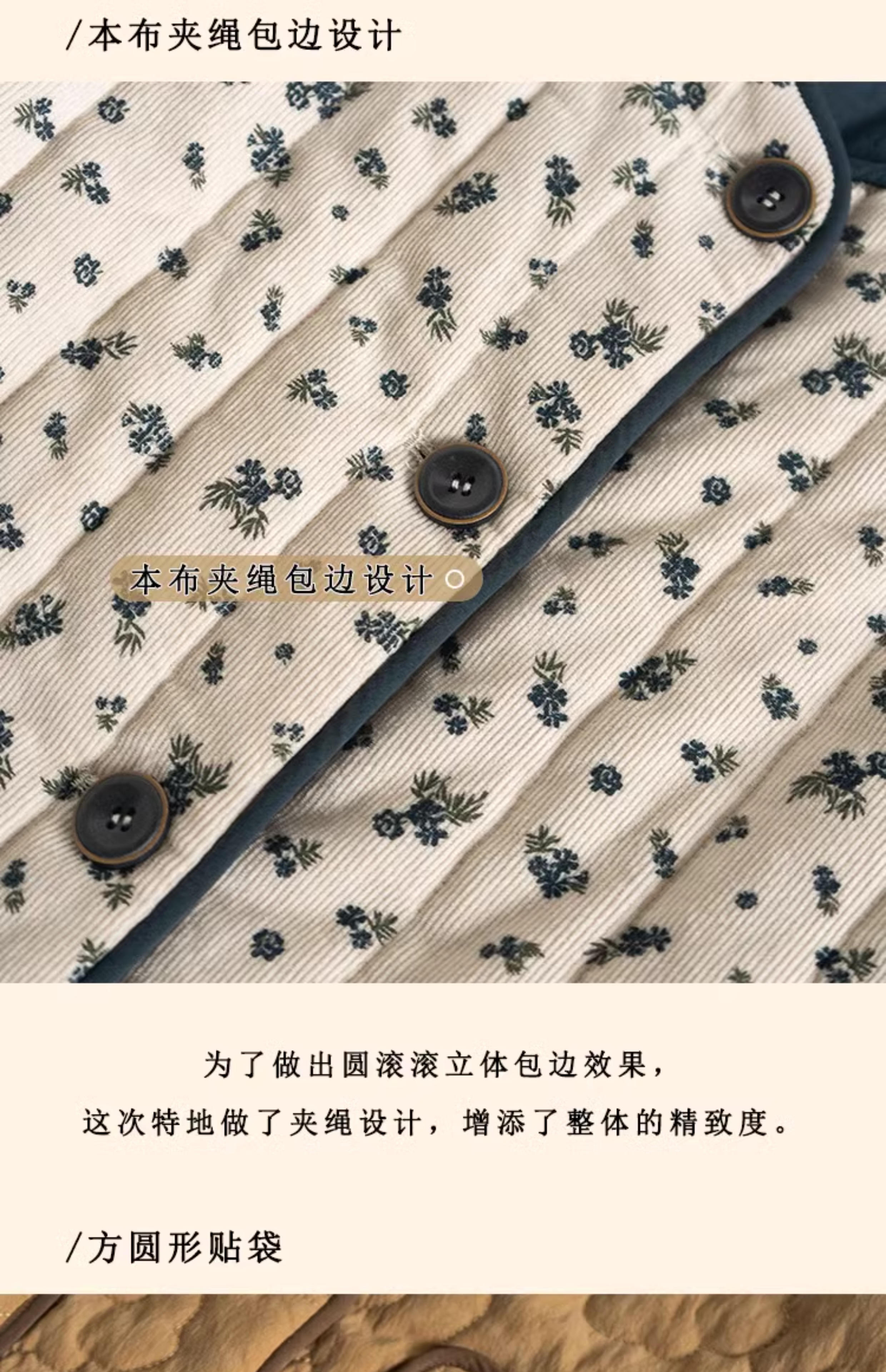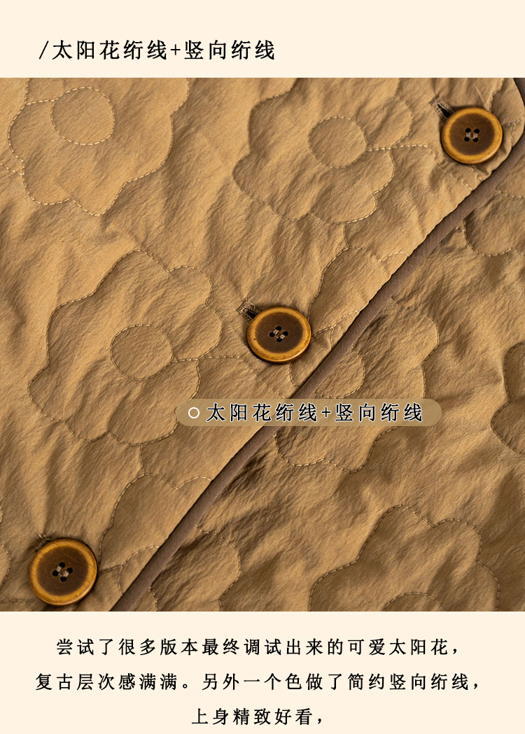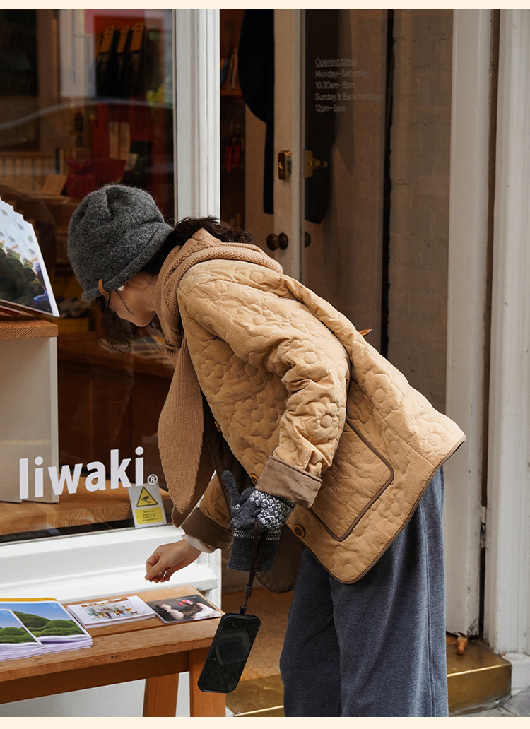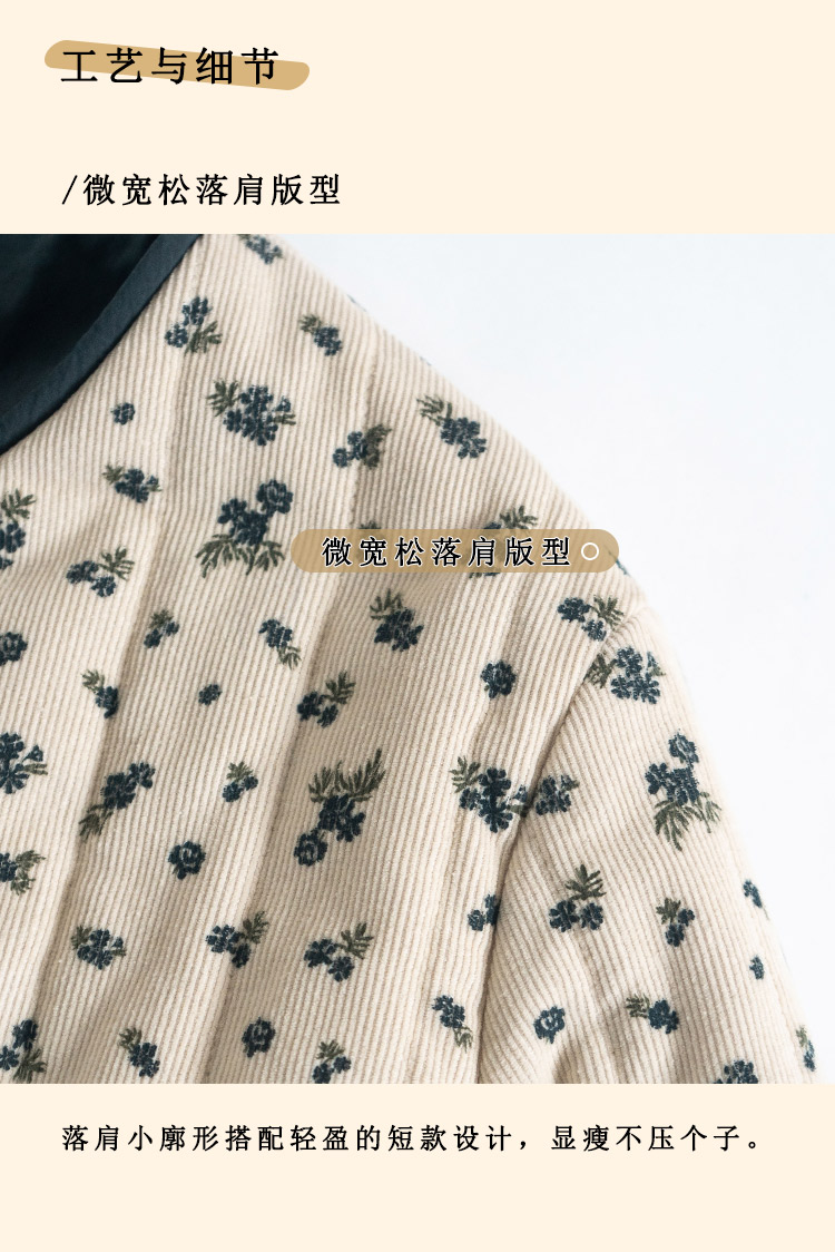 浮生八记/24D166/可拆耳朵针织帽绗缝花朵棉衣