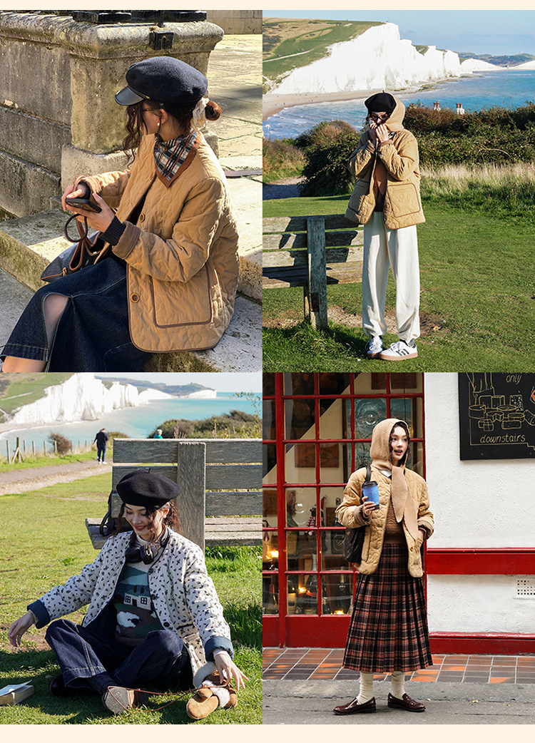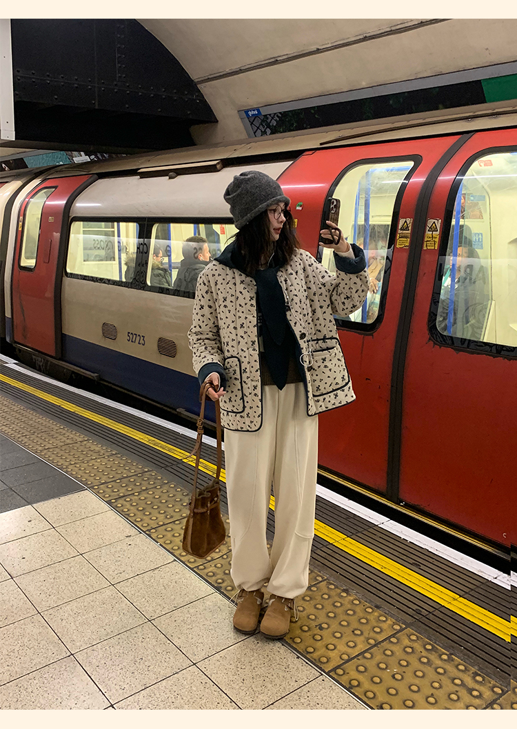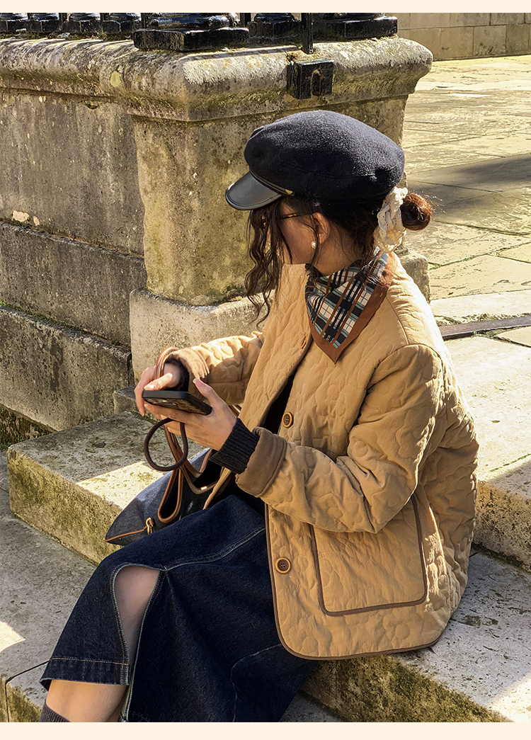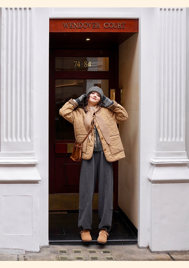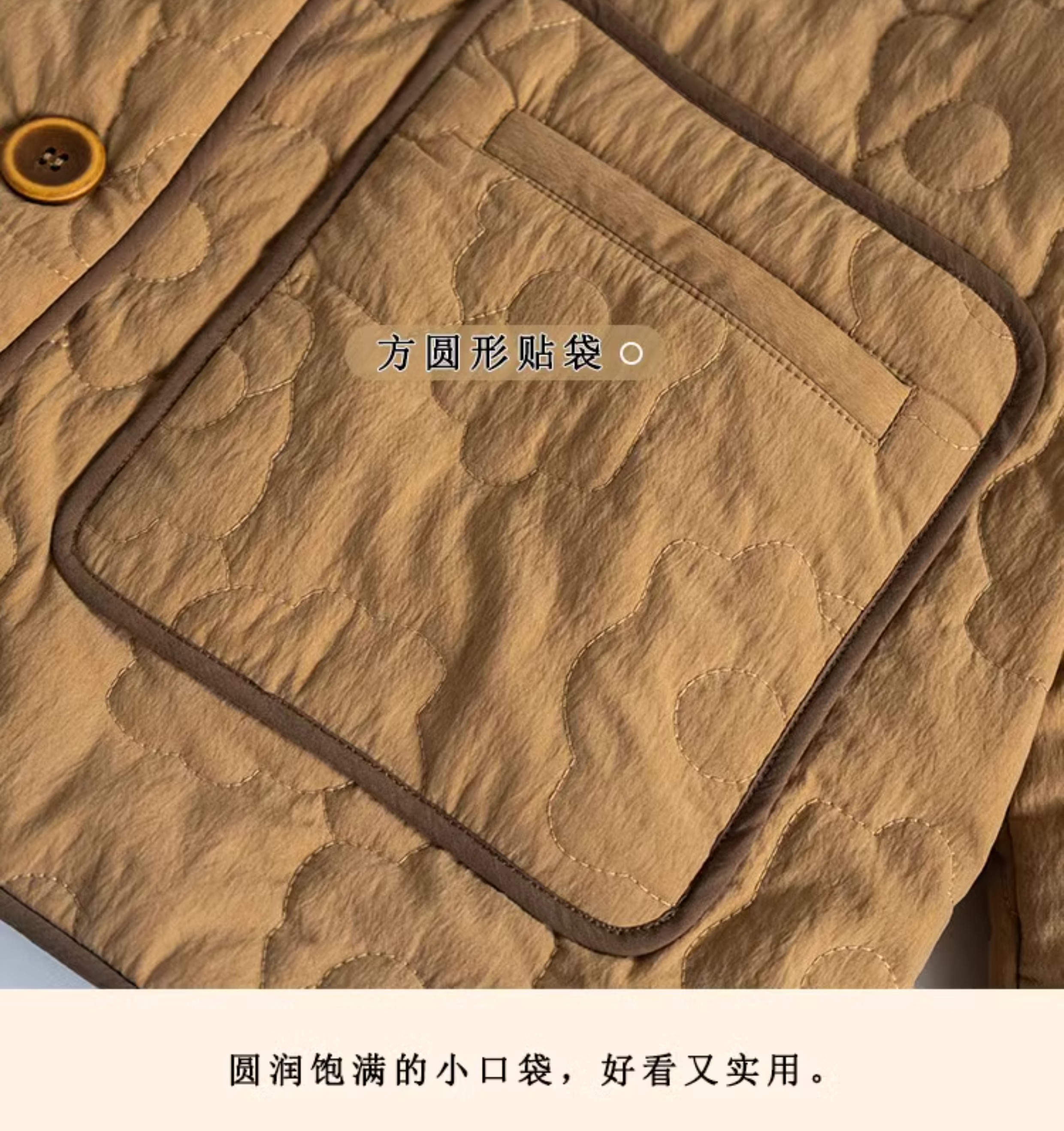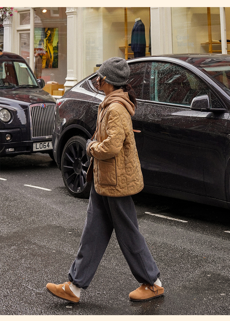 浮生八记/24D166/可拆耳朵针织帽绗缝花朵棉衣