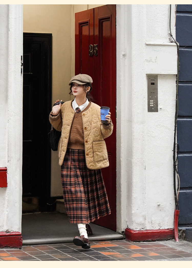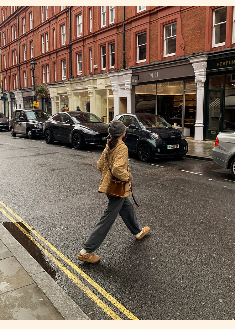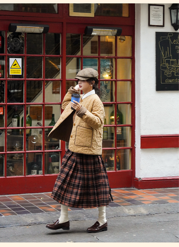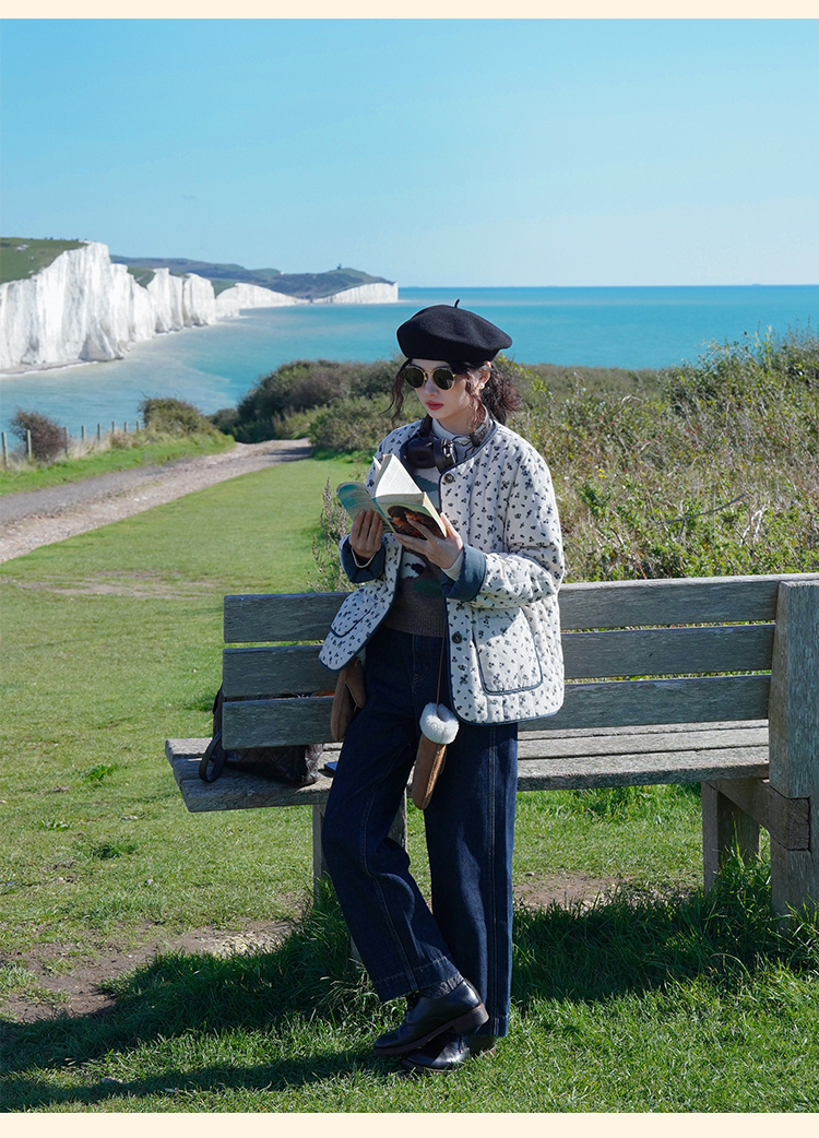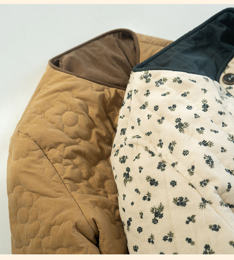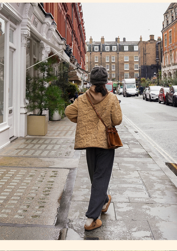 浮生八记/24D166/可拆耳朵针织帽绗缝花朵棉衣